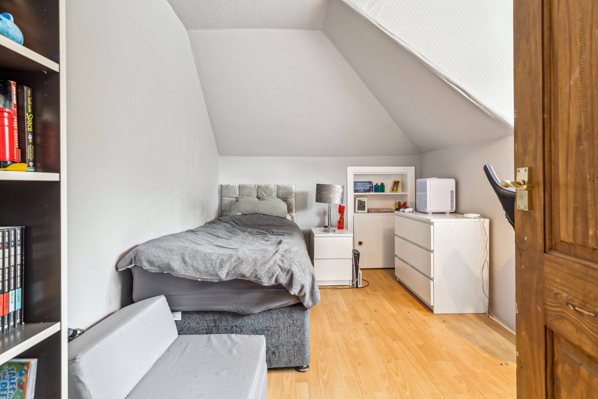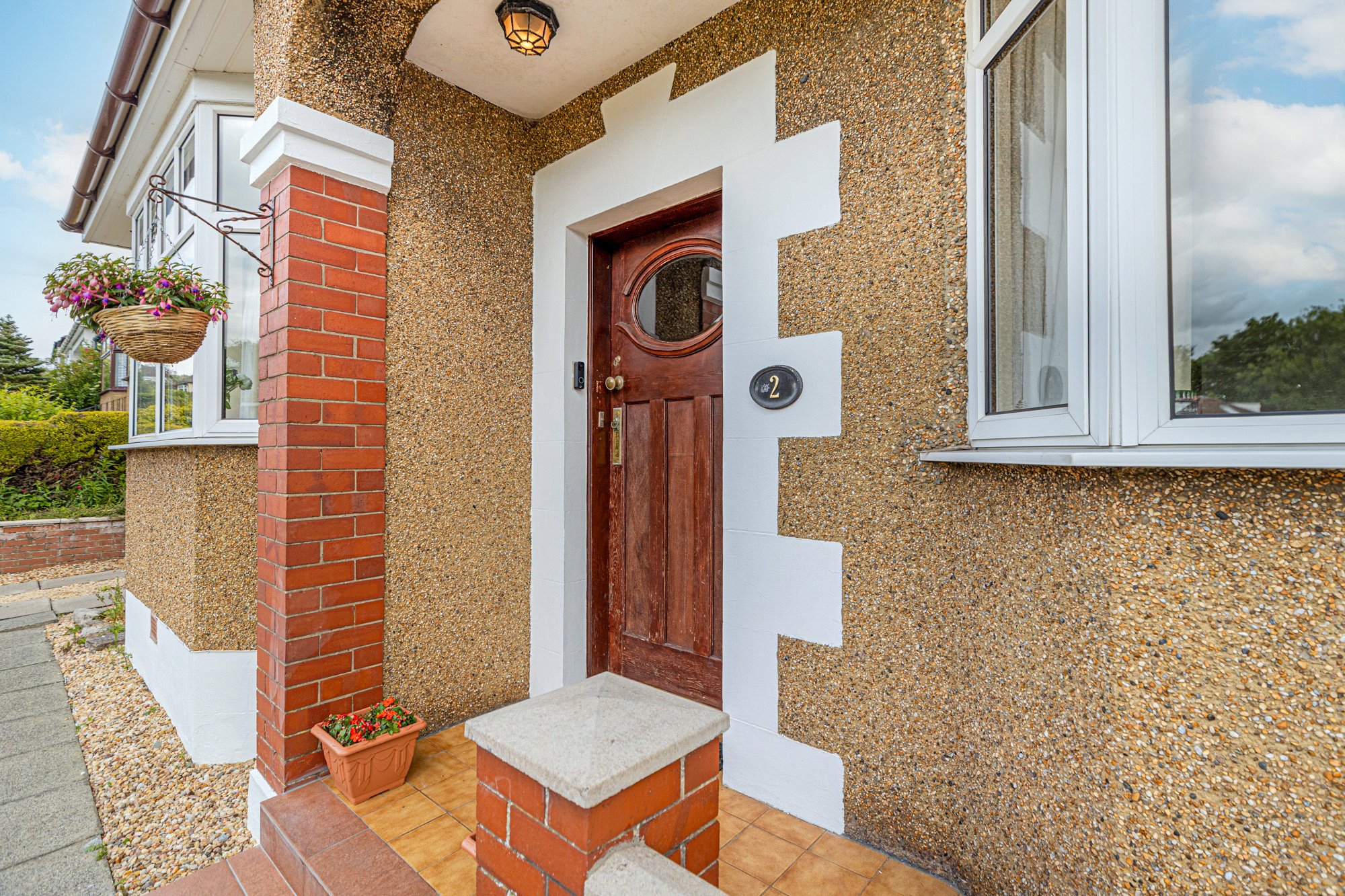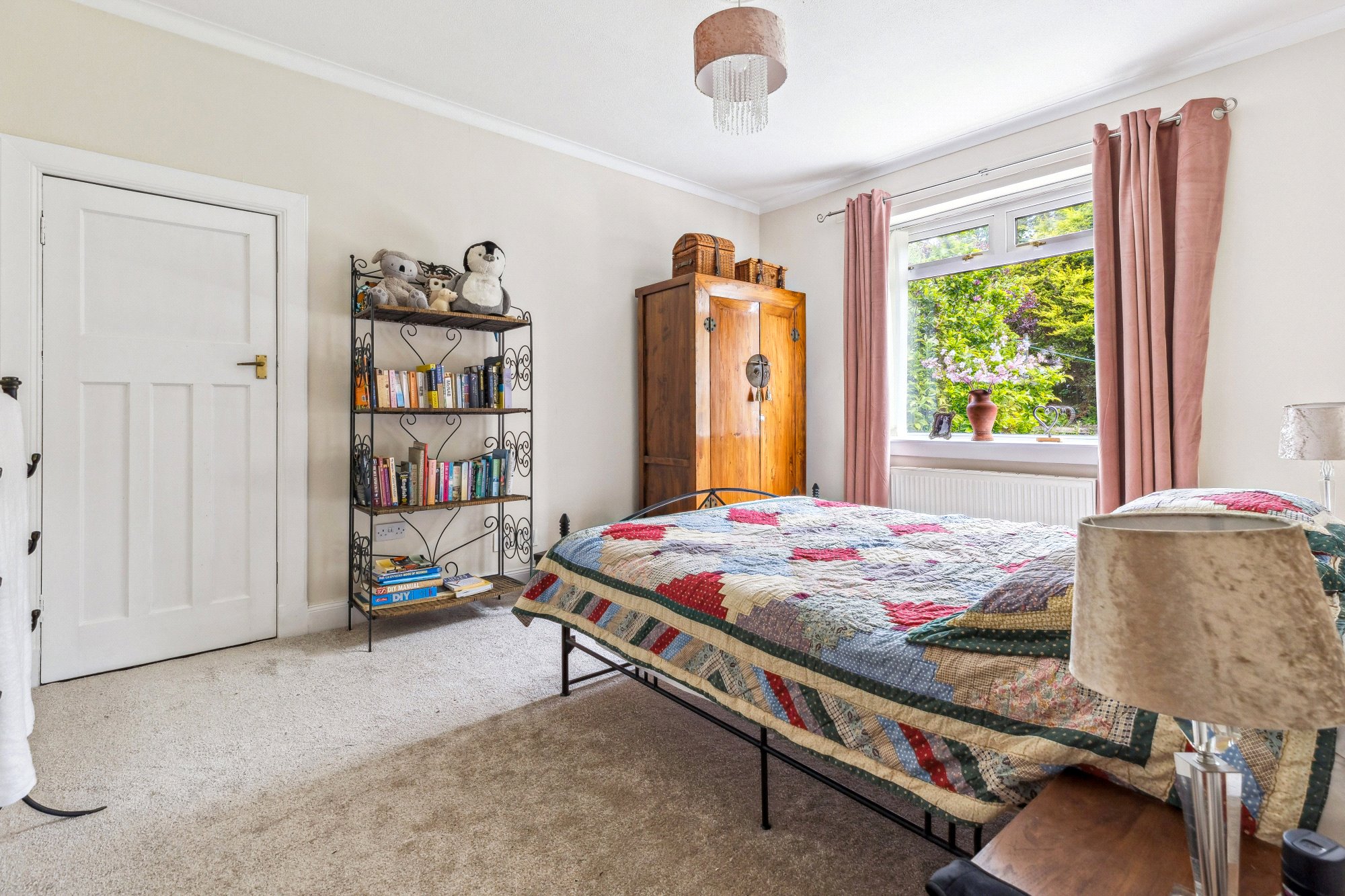 Outside, the gardens offer a mix of grass, hard landscaping, and screening. The rear garden has a sun patio and, in the corner, an old timber sundeck. At two-car long driveway leads to the property’s single garage attached to the side of the house and with a pass door to the rear garden. There is space to park a third car to the right of the driveway.