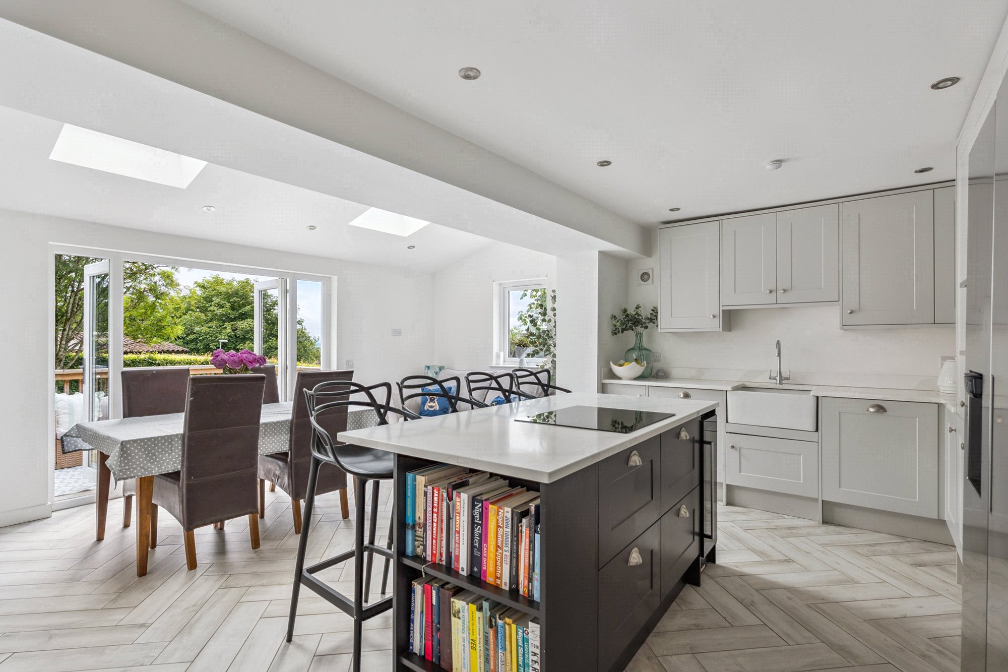 - Superb garden space to rear, side and front – deck directly accessible from living/dining/kitchen