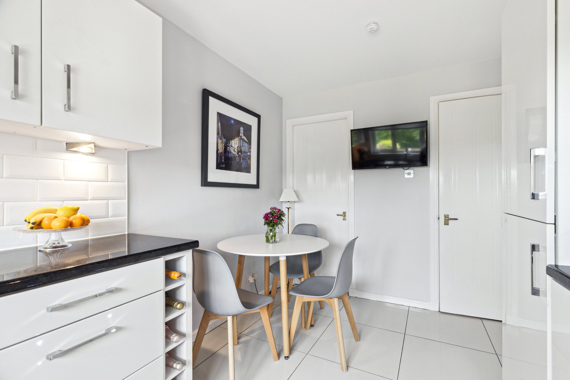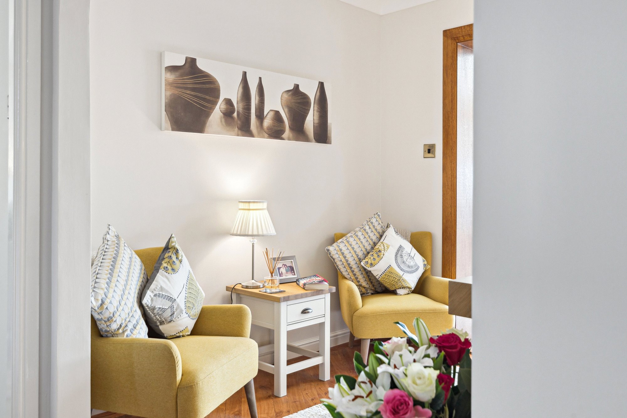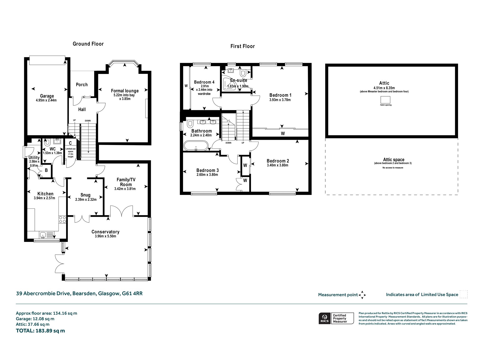 Abercrombie Drive is part of North Baljaffray on the very north westerly fringe of Bearsden by Windyhill golf course. Adjacent is the Mains Plantation Woodland – a lovely spot for a stroll and to exercise the dog. For those with children, the local primary school is nearby at Baljaffray Primary with secondary provision at the high-performing Bearsden Academy at Courthill. Beside Bearsden Academy is St. Nicholas’ Primary School and also within Bearsden the junior school for The High School of Glasgow. Local shops can be found at Baljaffray precinct, including a soon to open mini-Sainsbury’s. Greater facilities to be found either at Bearsden Cross (approx. 1.8 miles) or, roughly equidistant, Milngavie Village Centre, both of which have railway stations to Glasgow’s West End and City Centre (four trains per hour peak times, including a service terminating at Edinburgh Waverley).
