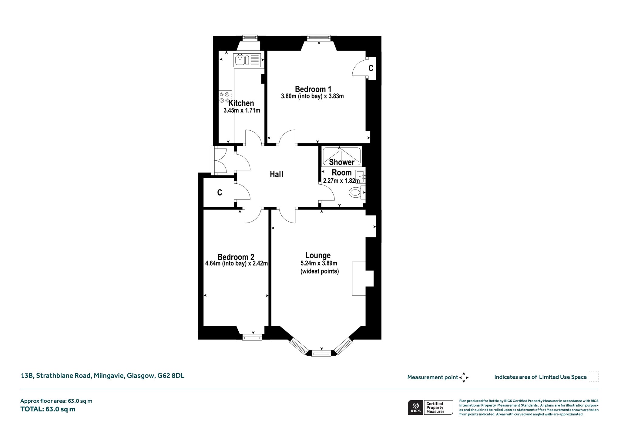 - Two bedrooms – one large double and additional single room (perfect home office/study)