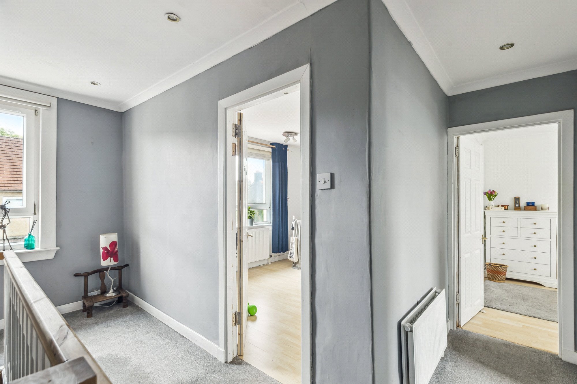 Located in a particularly peaceful, family friendly address in Milngavie’s consistently popular Clober Estate, No.40 Ashburn Gardens is an atypically large (circa 1,258 ft²), unassuming family home that has been redesigned to create a flexible living arrangement of six principal apartments over three levels. Here, versatility is king, with the two additional apartments to the second floor (accessed via a fixed staircase) freeing up the larger first floor apartments for reception space should it be required. For the home worker – plenty of opportunity to create a dedicated study home office. A creative and successful revision/redesign of its type with first hand inspection essential to appreciate the rare quality of accommodation on offer here.