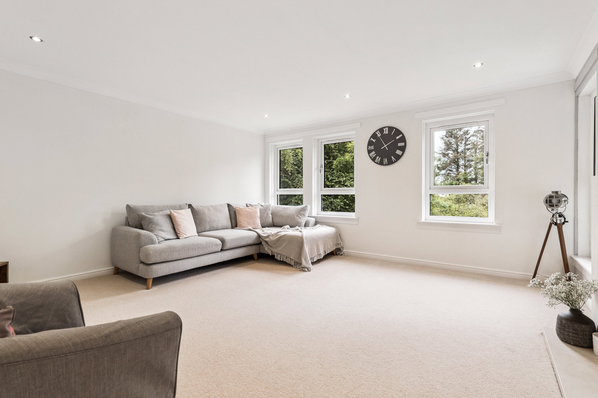 No.90 Nasmyth Avenue is a stunningly presented, three bedroomed top floor apartment that one of the most desirable positions in Bearsden’s ‘Silverknowes’ development with its balcony and living accommodation set to the rear, enjoying the late afternoon and evening sun with a westerly aspect and view over the residents’ grounds towards Windyhill Golf Course. The property is presented to market in immaculate condition, with a calming and neutral decorative theme complimenting the real feeling of light and space to be found throughout.