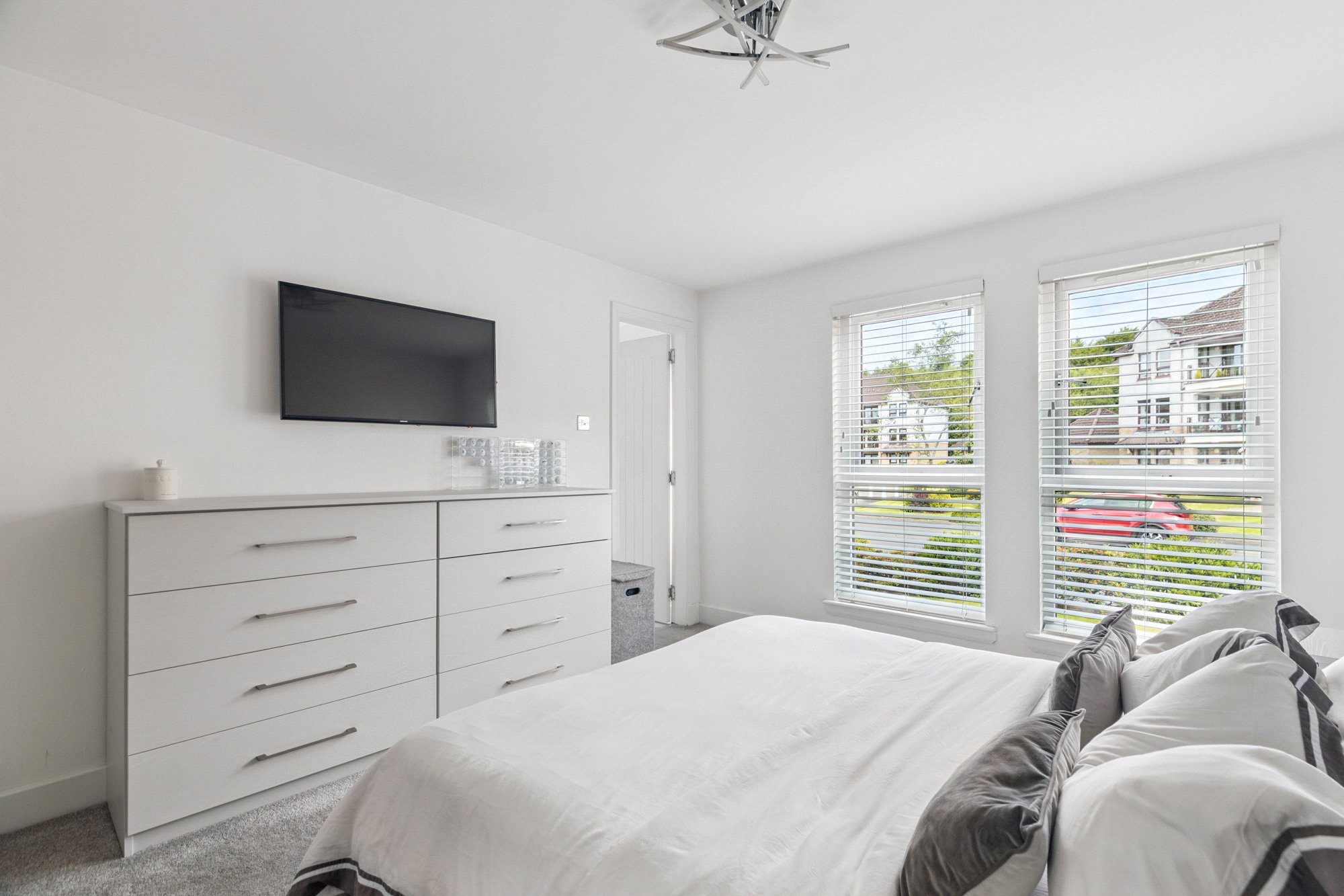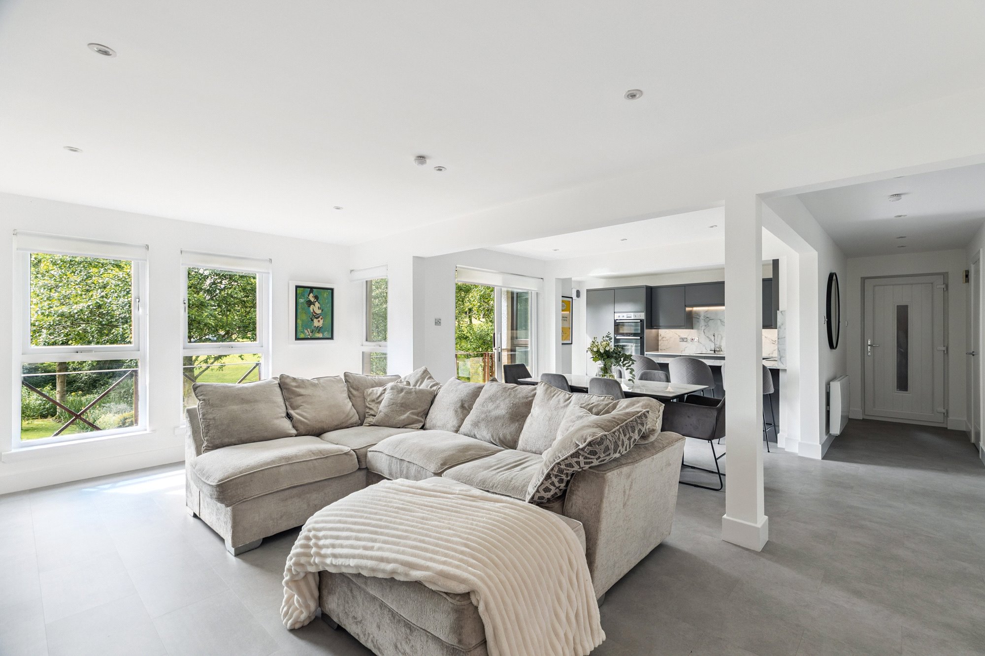 The apartments in the ‘Silverknowes’ development were constructed by Ambion Homes in the 1990’s. Situated in North Baljaffray, by Windyhill Golf Course, there are lovely residents’ gardens overlooking which this flat has, arguably, the best position. This ground floor, main door, two-bedroom flat is only one of four that has its own door and furthermore one, of only two, that has its garage adjacent and driveway – all hugely beneficial assets. A fantastic property for both professional and downsizing couples.