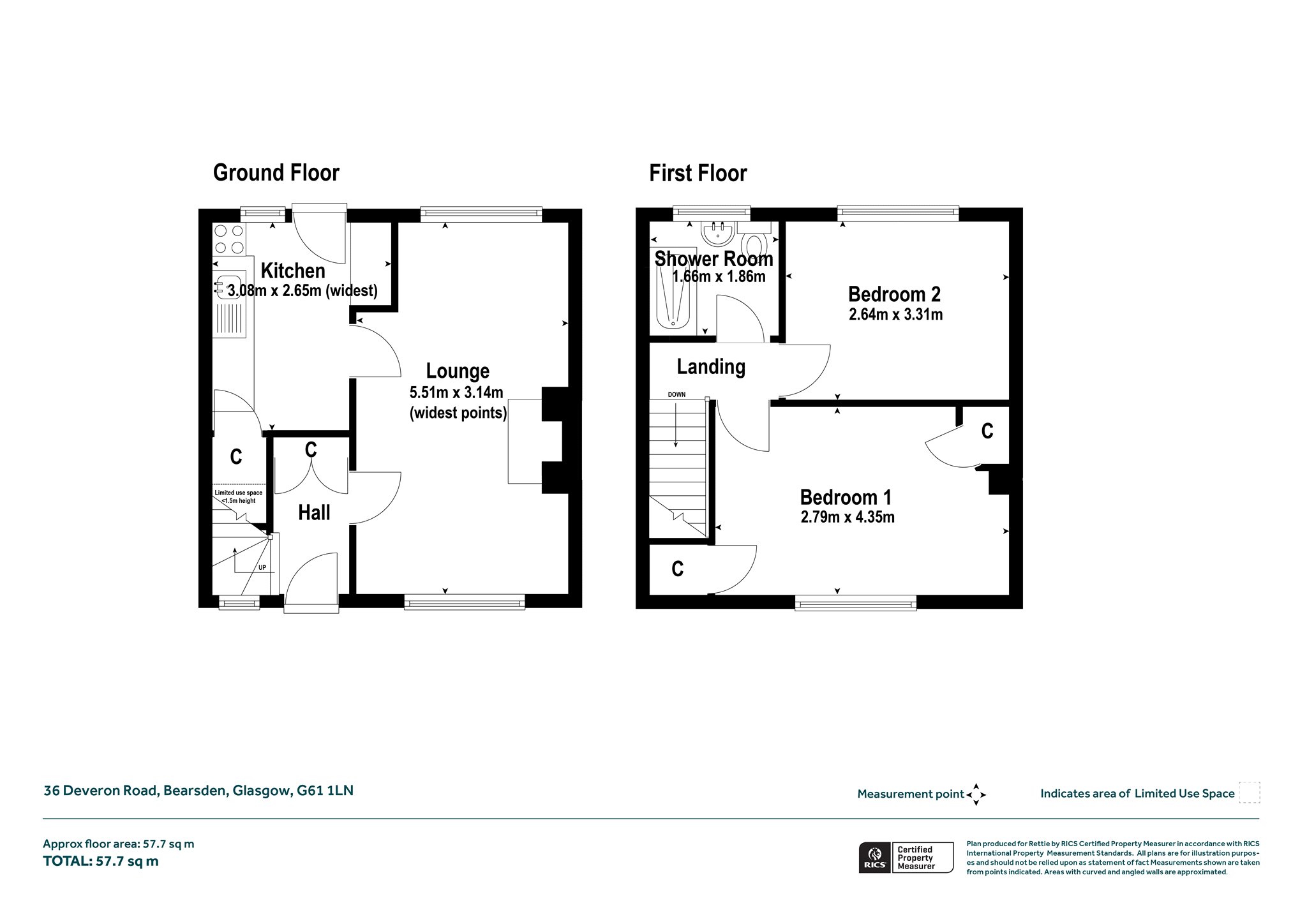 Reception hall, lounge/dining room, kitchen, shower room, two double bedrooms