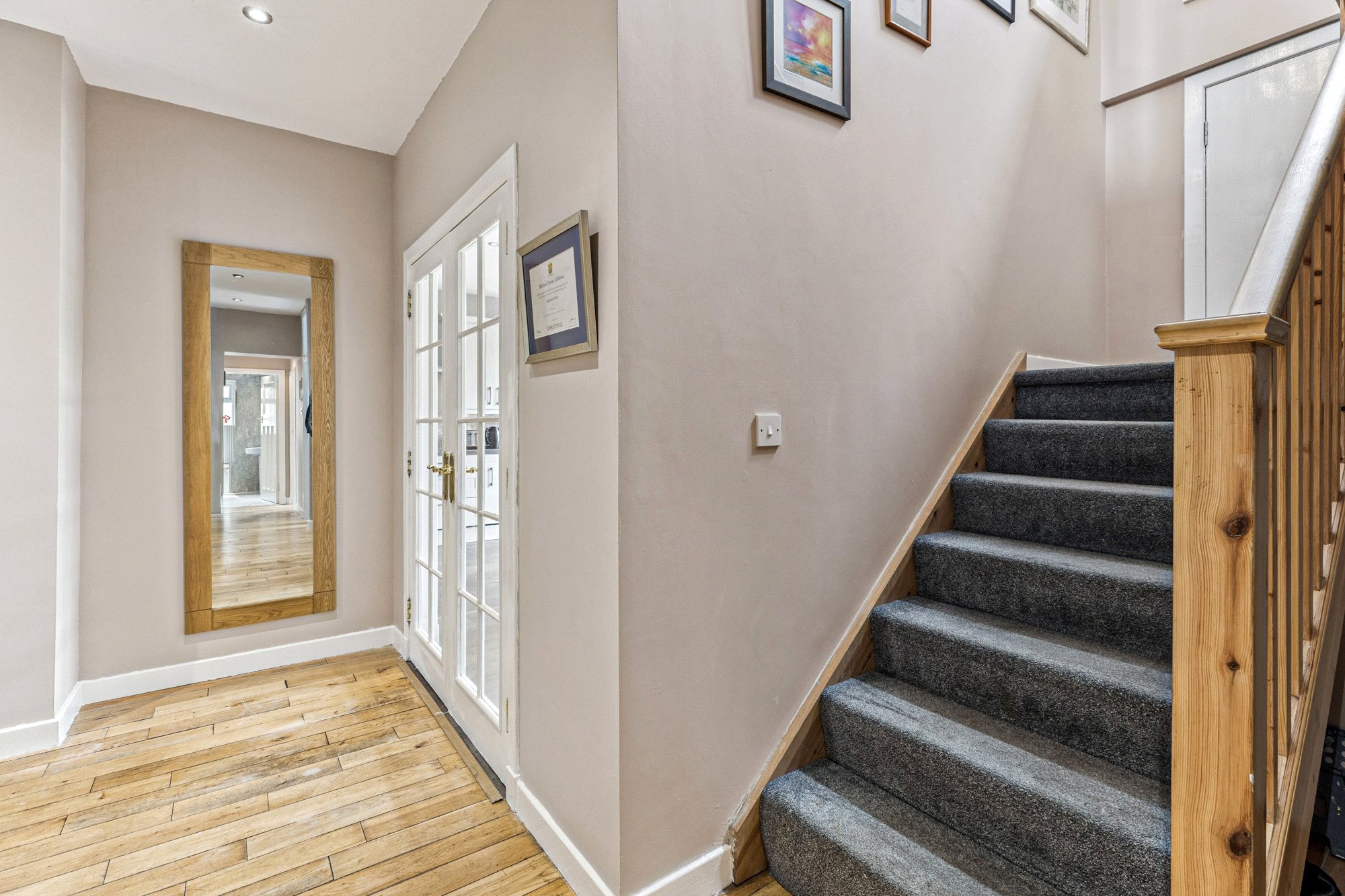 Built in the 1930s, originally as a bungalow this Detached House has been extended, and remodelled, to create a very impressive four-bedroom (could be five) family home. Set on a corner plot with Crossburn Avenue it is only some 1/3 mile from the pedestrianised village centre.
