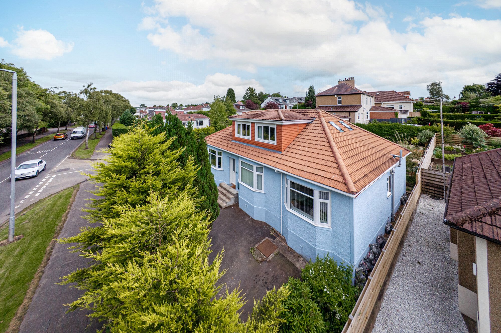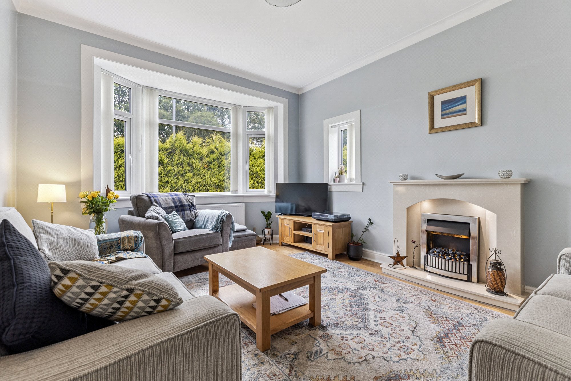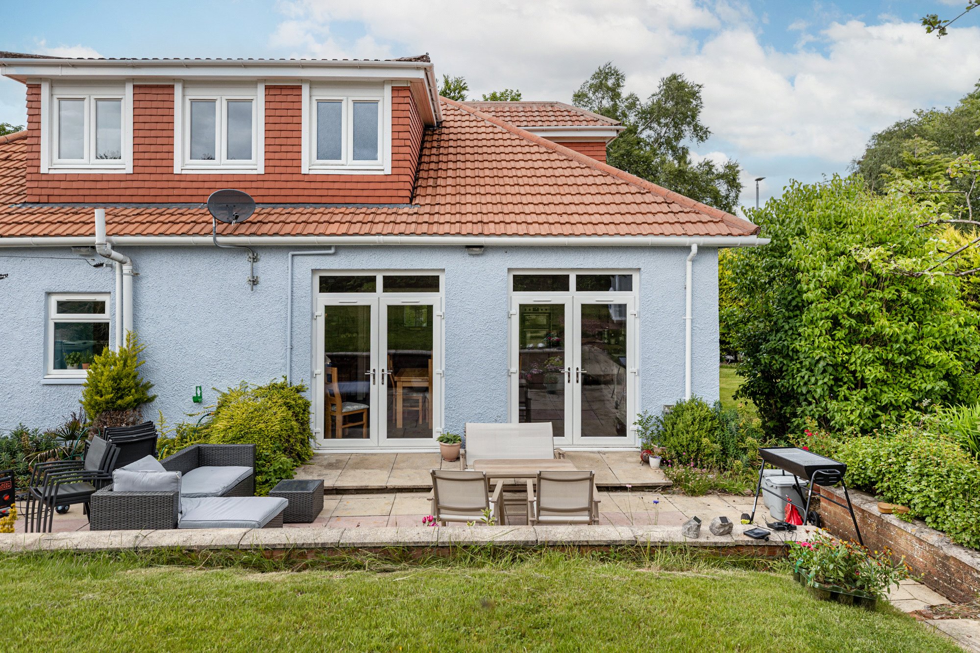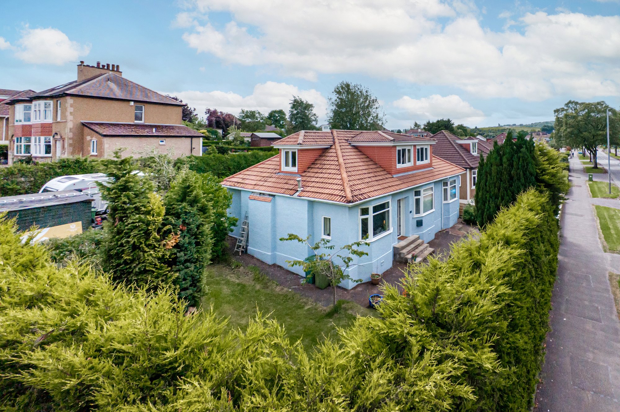 The house sits on a well screened (conifer hedging and laurels) corner garden with Craigdhu Road and Crossburn Avenue. It has two driveways, one from each. It sits across the road from Oakburn Park and is just 1/3 mile west of the beginning of Milngavie Village pedestrianised centre. School catchment is at Craigdhu Primary and the high-performing Douglas Academy. Very nearby, at the park, is the Milngavie Early Years Learning Centre. The village centre has a good range of shops including a Boots and an M&S food hall. There are two banks (RBS and Bank of Scotland) and at the far end of the precinct a Tesco. Here too is where the railway station can be found.