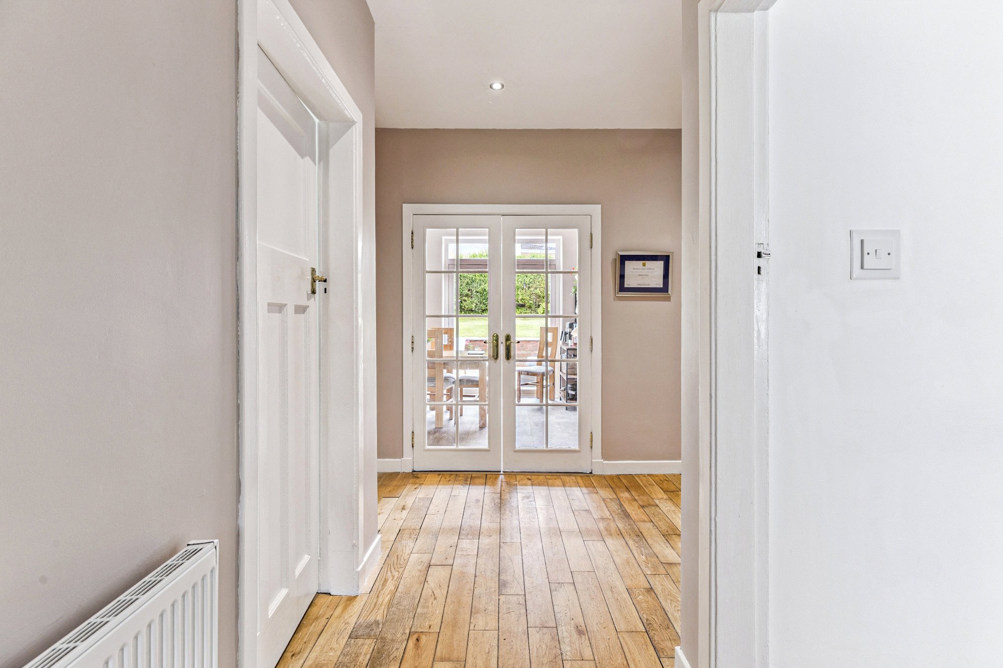 The extensions have been seamlessly executed both to the west side, where a bay window matches the two of the original house, and upstairs where a new roof configuration, including smart pitched-roof dormer projections, houses two impressive bedrooms, both with ensuites, and a handy little home office/study. The internal redesign has provided for a much larger hall, a well-designed staircase, and the creation of a great dining kitchen, featuring two sets of French doors to the south-facing back garden, that was renewed about five years ago with kitchen units, and appliances, by Wren Kitchens. A super room and one that very much is the hub of this family home.
