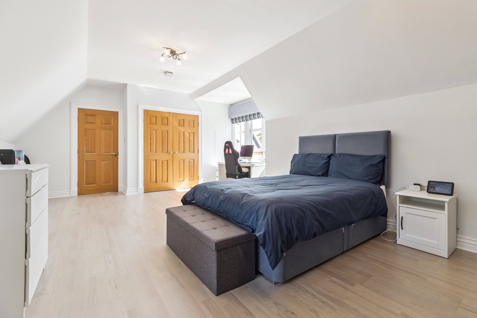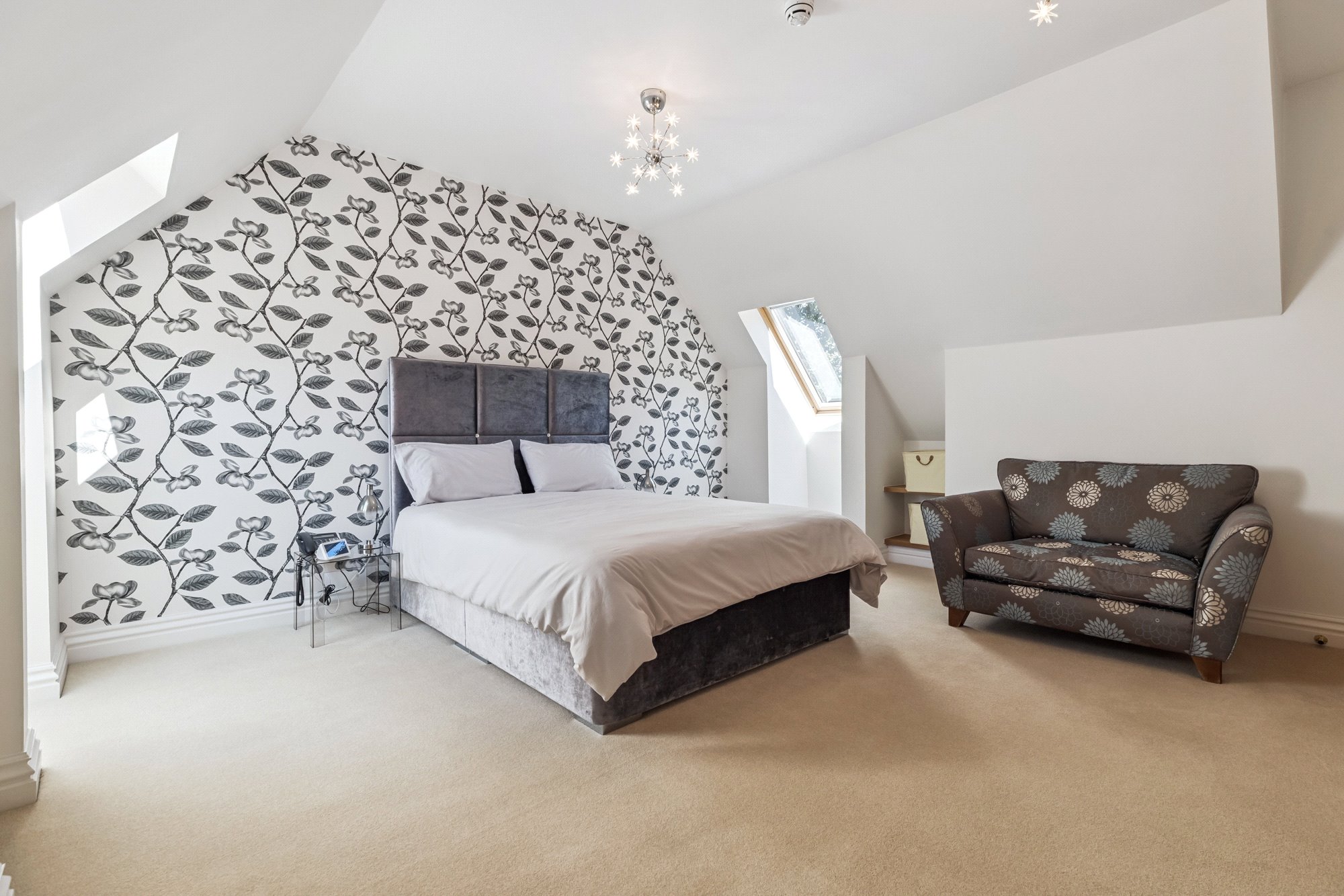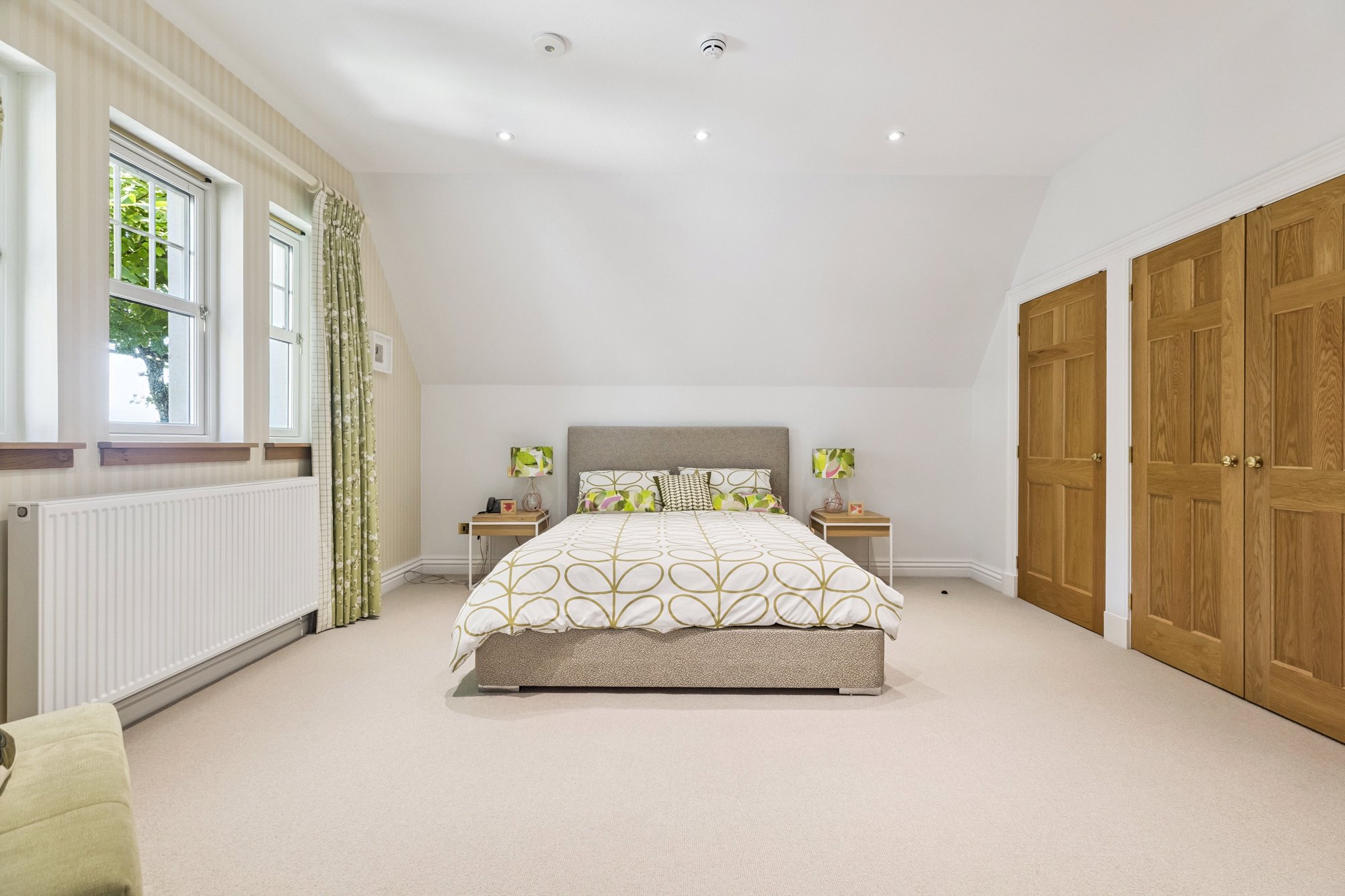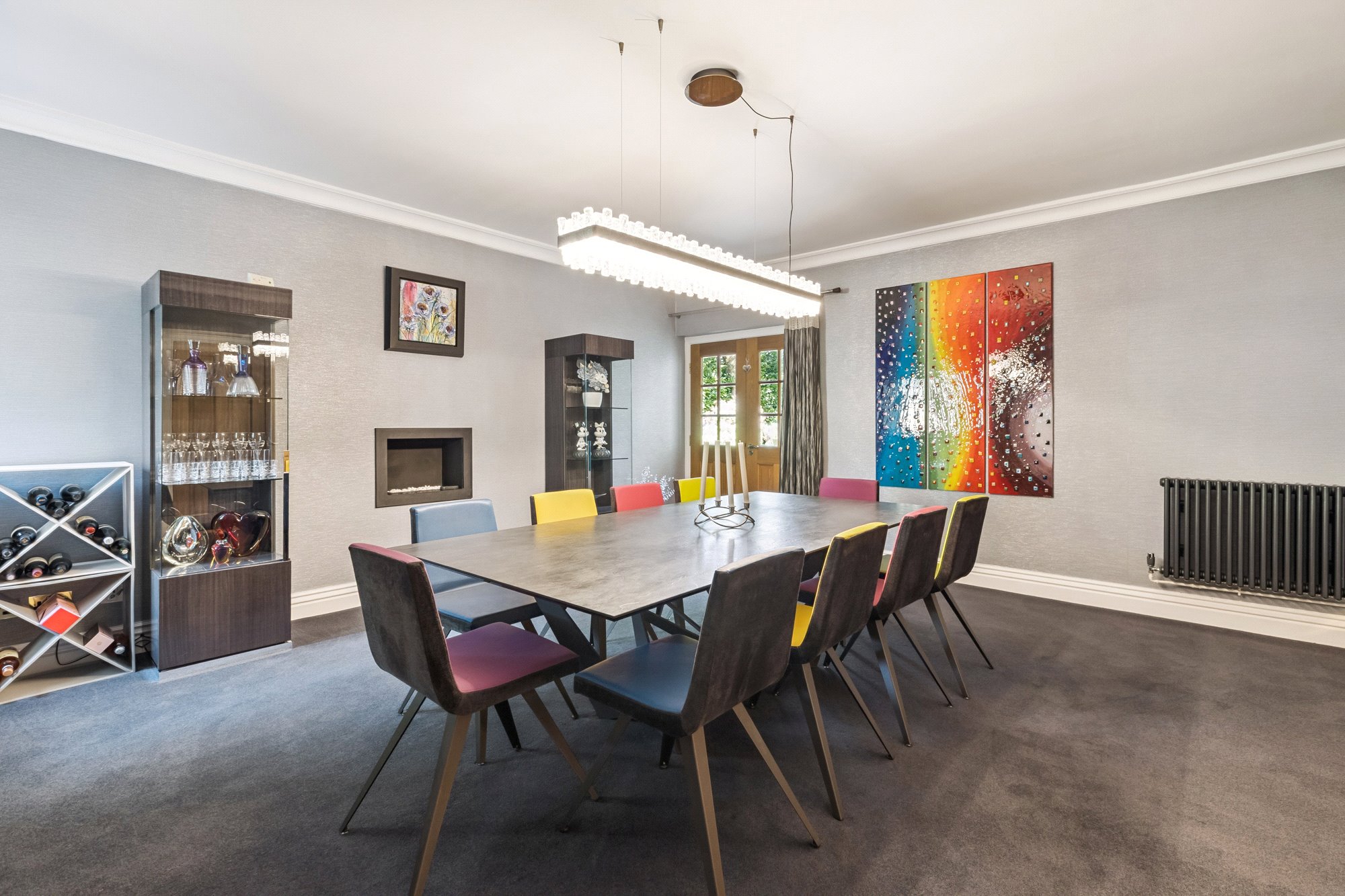 The main, central, house has five bedrooms and five public rooms with the east wing providing a guest/staff flat and gym with the west wing home to the large swimming pool facility, with Orangerie style sitting/dining area, and a further self-contained two-bedroom flat for family/guests/staff.