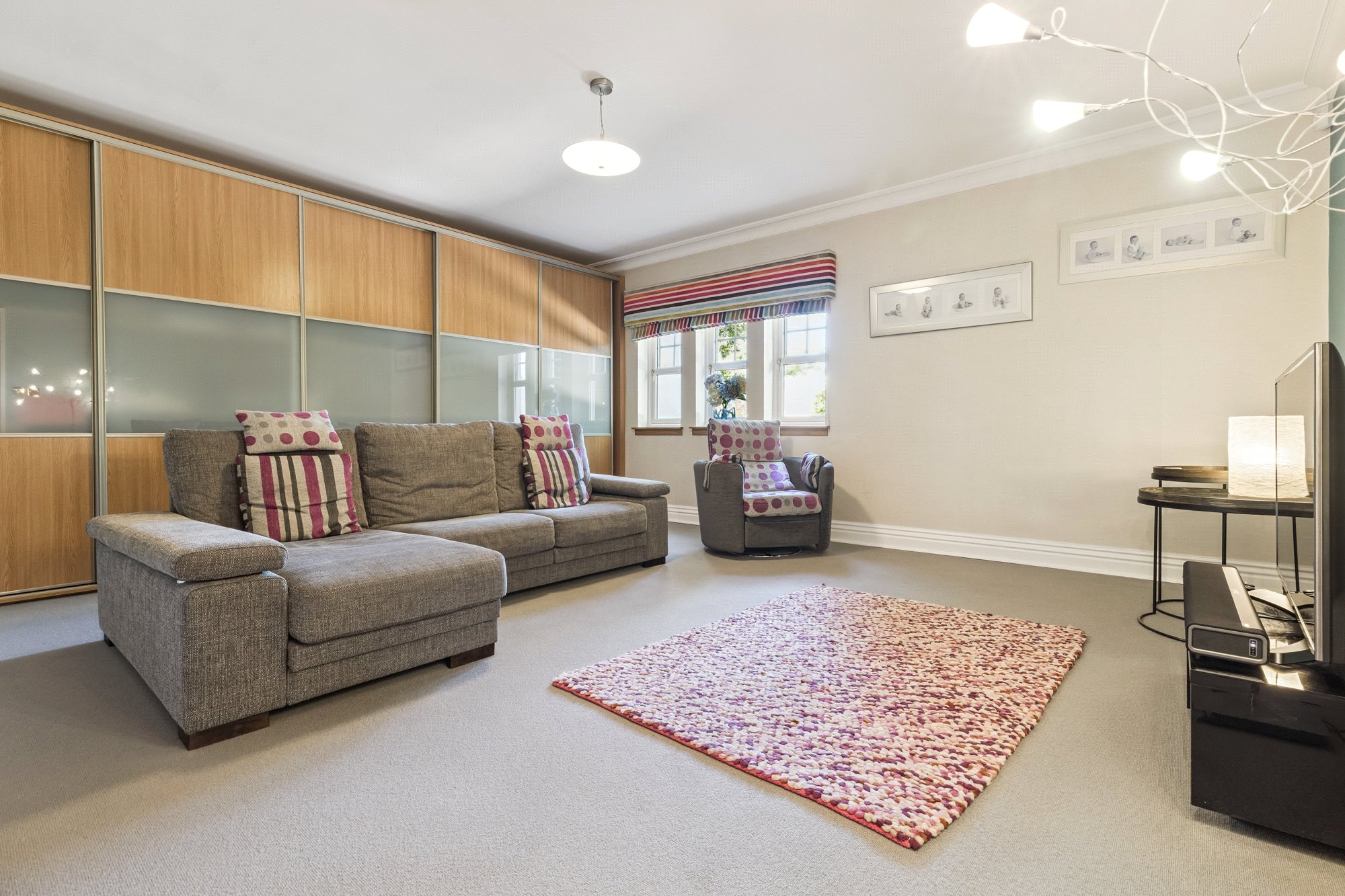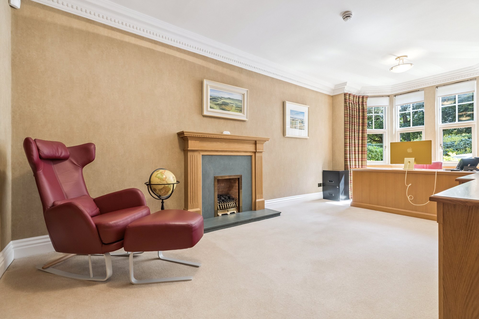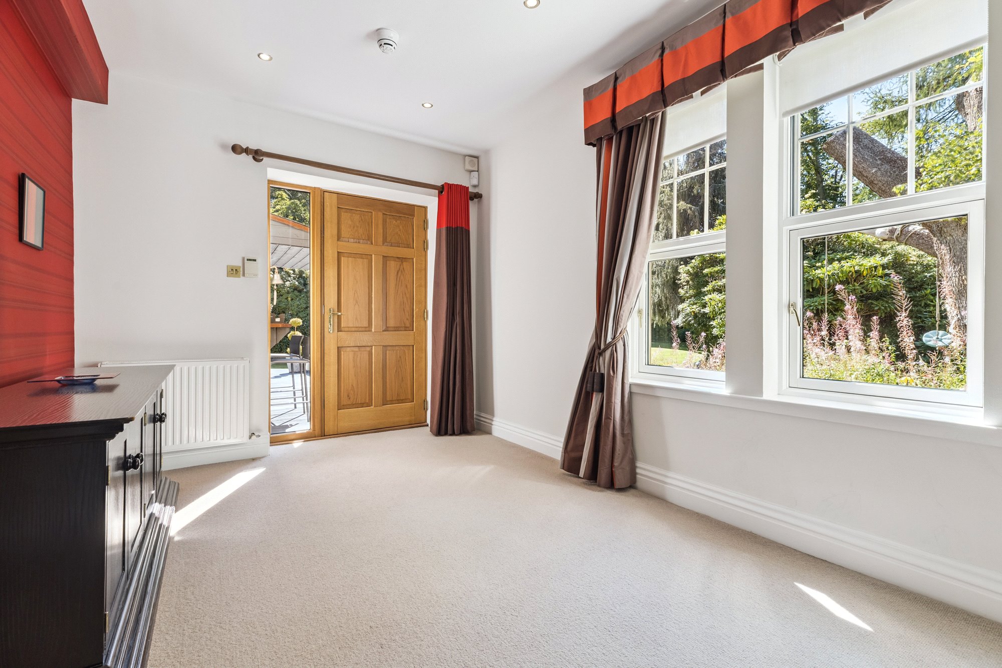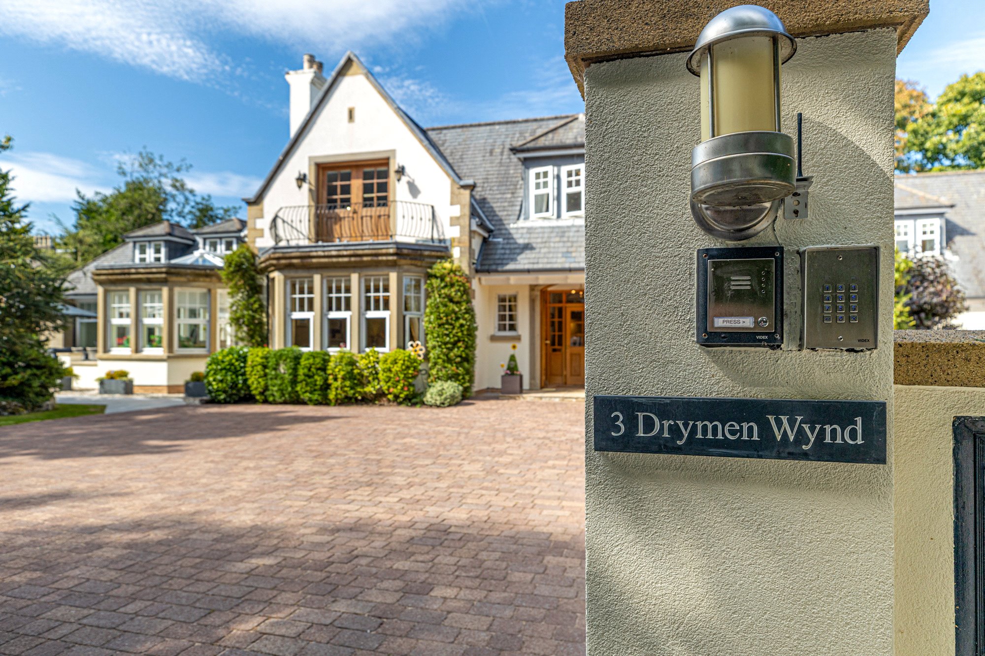 Drymen Wynd is a discreet and little-known private lane off Drymen Road, half mile south of Bearsden Cross. Its use is shared by only six others with only one property being an immediate neighbour. Whilst tucked away and out of sight it is only minutes’ walk to Bearsden railway station (1/3 mile). School catchment is Bearsden Primary (at The Cross) and the consistently high-performing Bearsden Academy. On Ledcameroch Road, and only ¾ mile away, is the junior school for The High School of Glasgow.