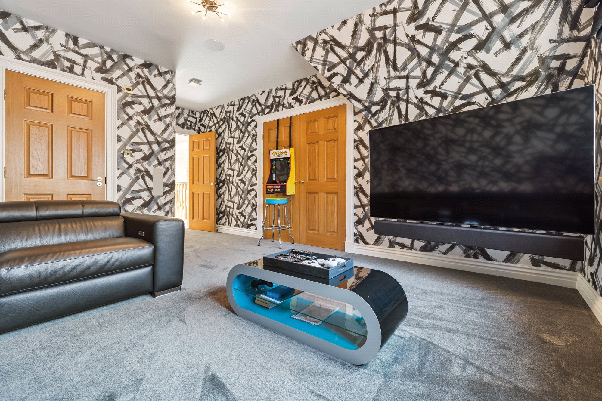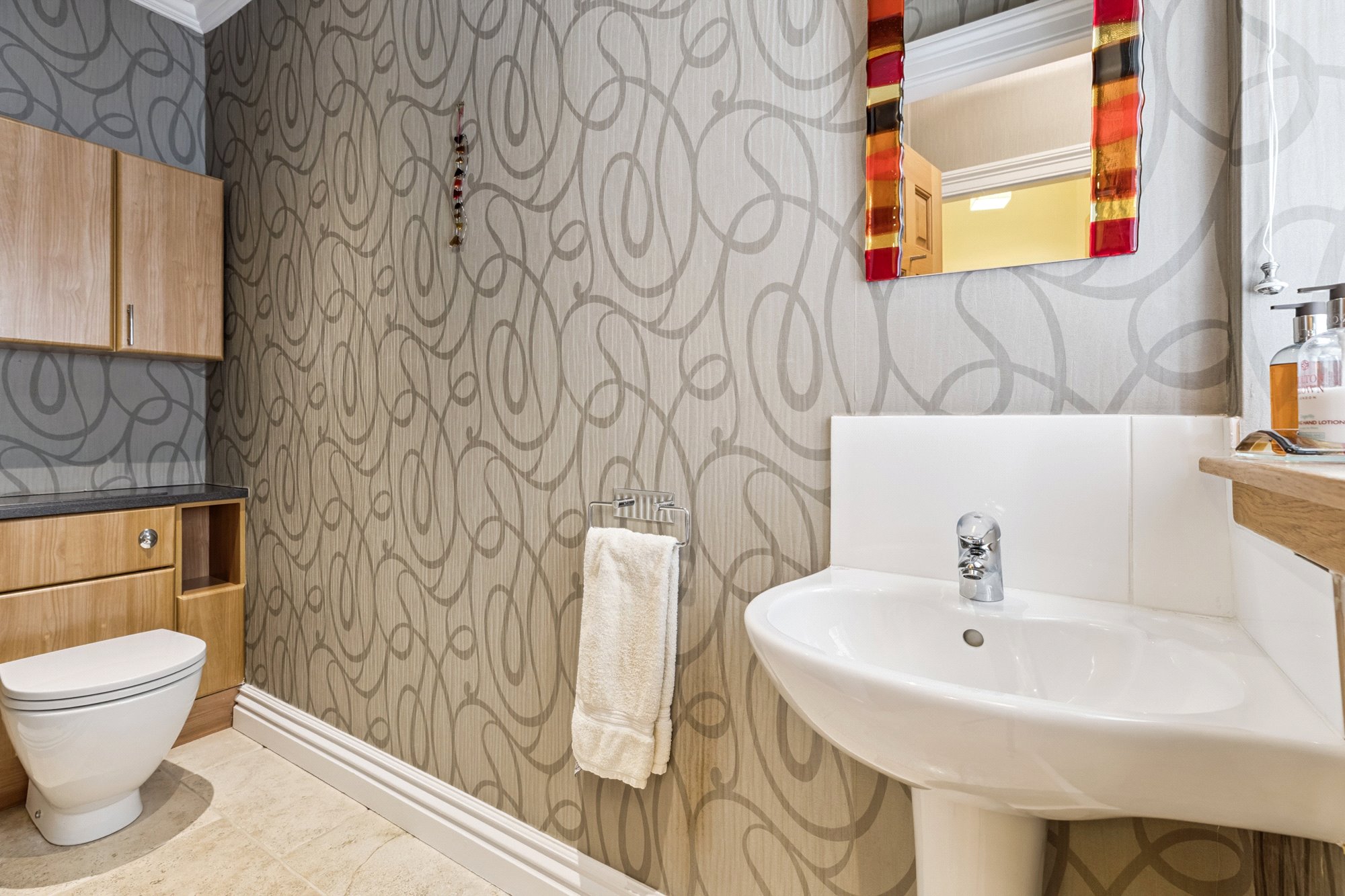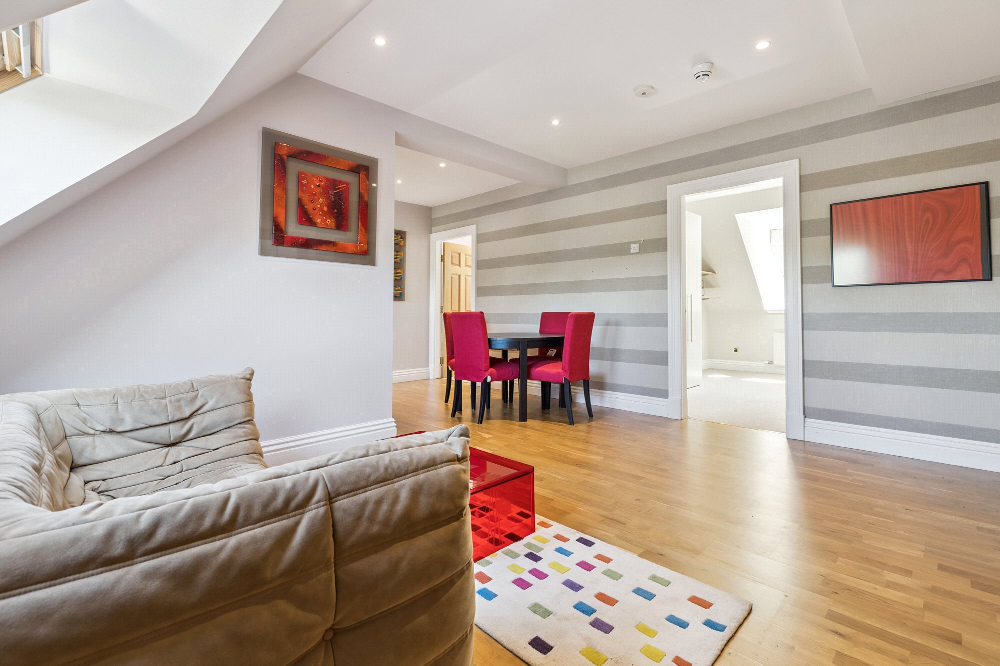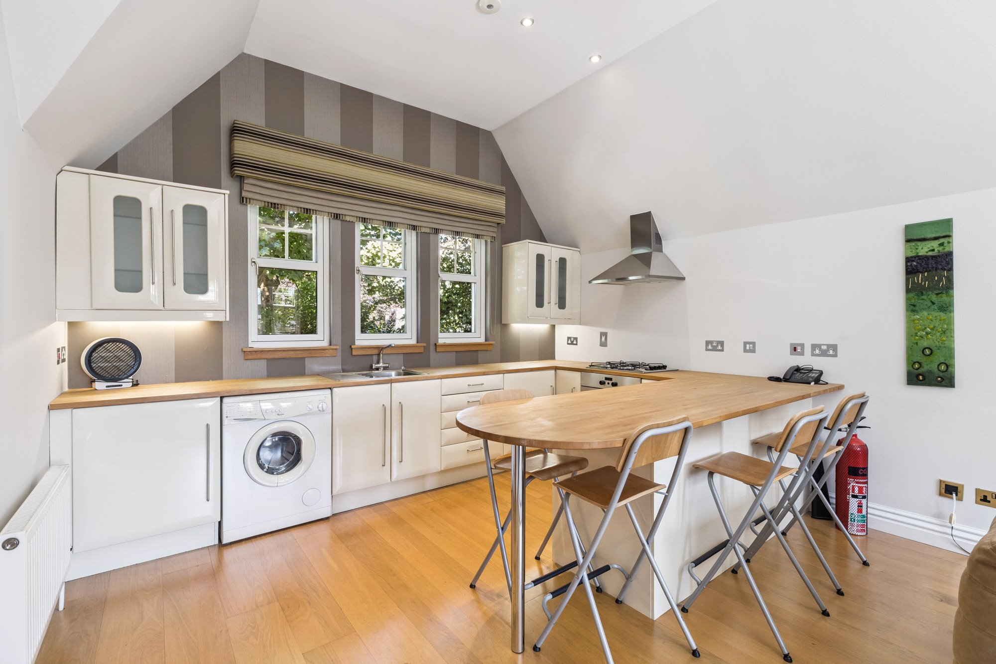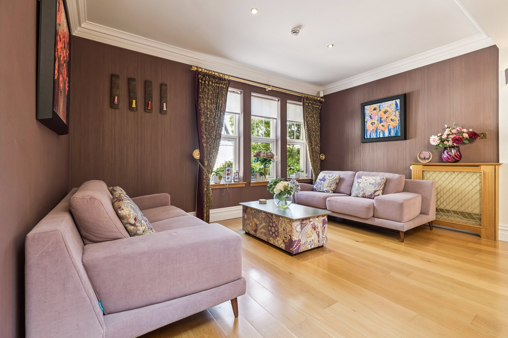 Drymen Wynd is a discreet and little-known private lane off Drymen Road, half mile south of Bearsden Cross. Its use is shared by only six others with only one property being an immediate neighbour. Whilst tucked away and out of sight it is only minutes’ walk to Bearsden railway station (1/3 mile). School catchment is Bearsden Primary (at The Cross) and the consistently high-performing Bearsden Academy. On Ledcameroch Road, and only ¾ mile away, is the junior school for The High School of Glasgow.