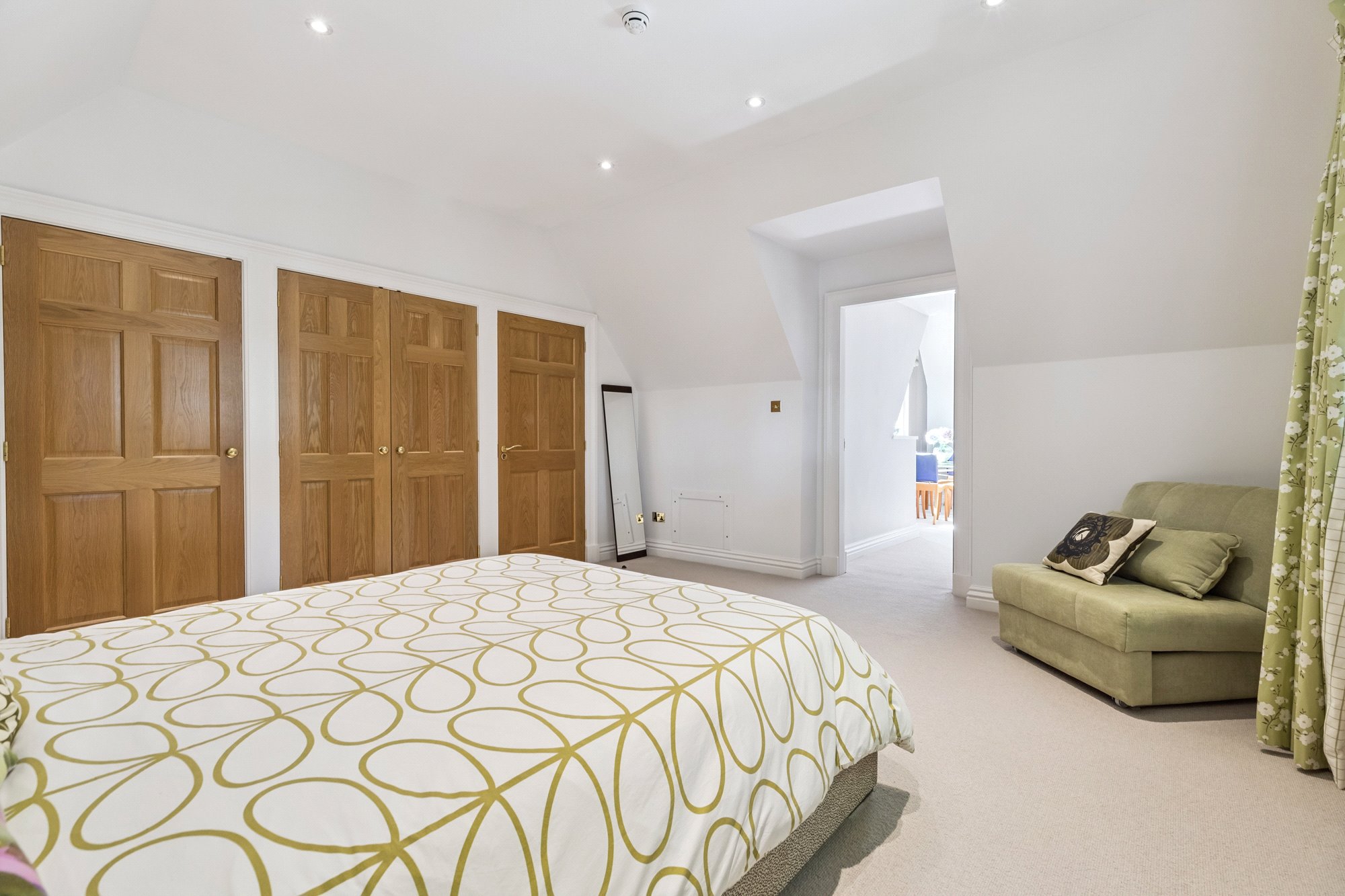 Hall with fine roof cupola, primary suite with bedroom, sitting room with balcony, dressing room, and large bathroom, four further bedrooms all with ensuite facilities.