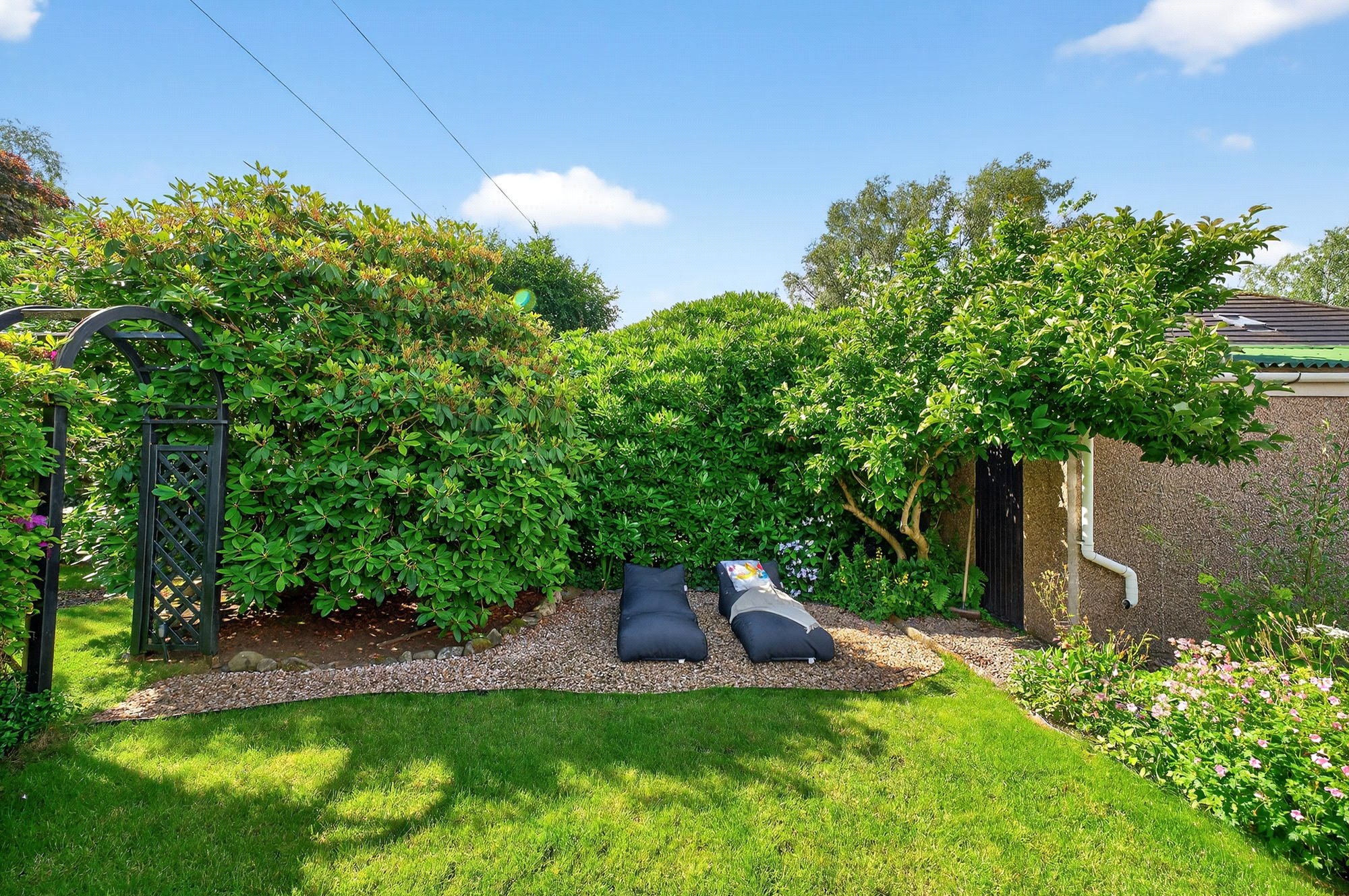 The garden is a huge asset. A level plot, it is extremely well planted and designed with the rear garden being a particular delight offering different sections to enjoy the sun at various parts of the day. The rear garden is very private and thoughtfully planned creating, almost, a rural country garden with lots of corners in which to sit and enjoy. It backs onto a substantial woodland corridor that runs through the centre of Bardowie. Really gives the house a great sense of detachment.