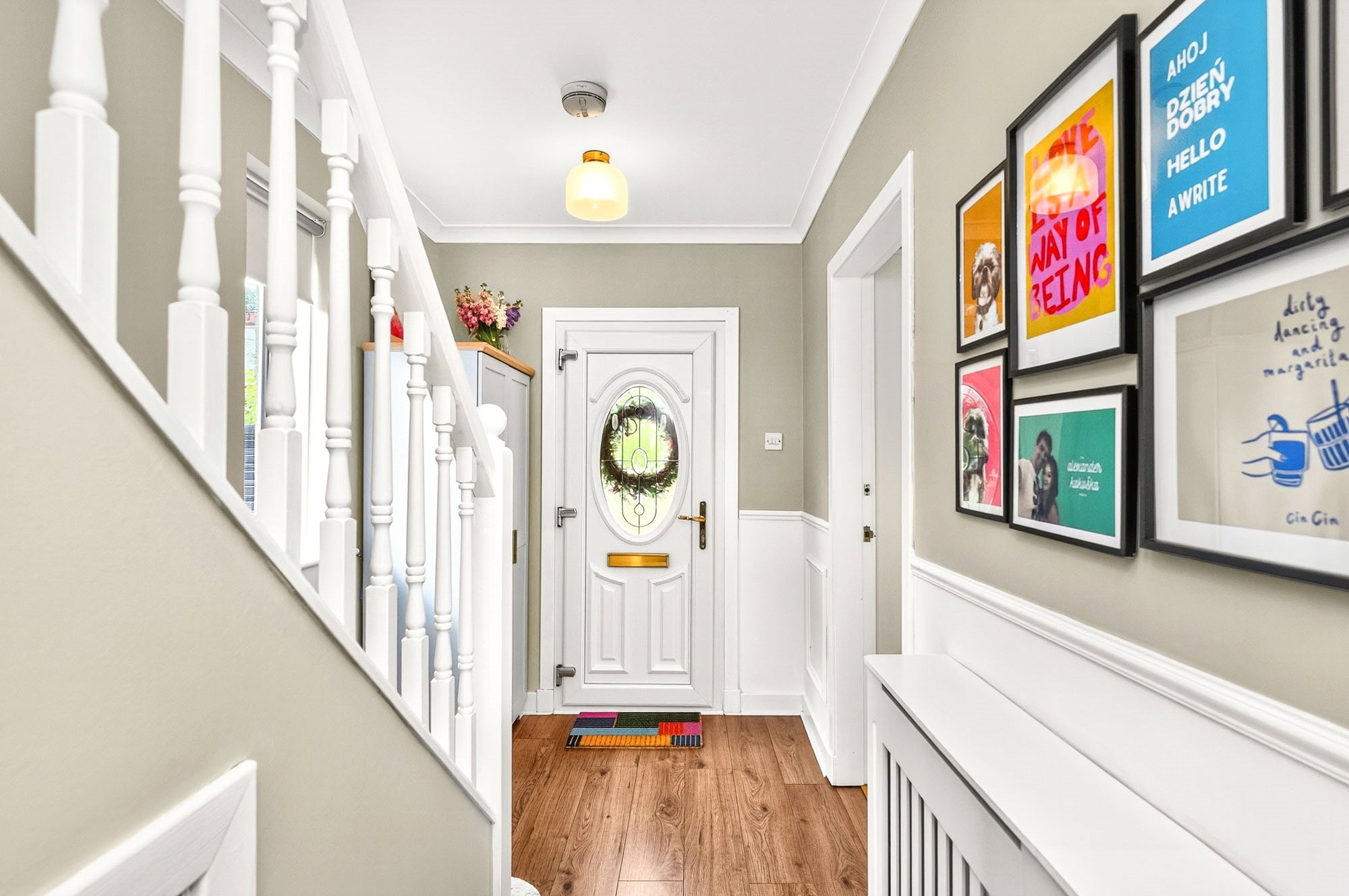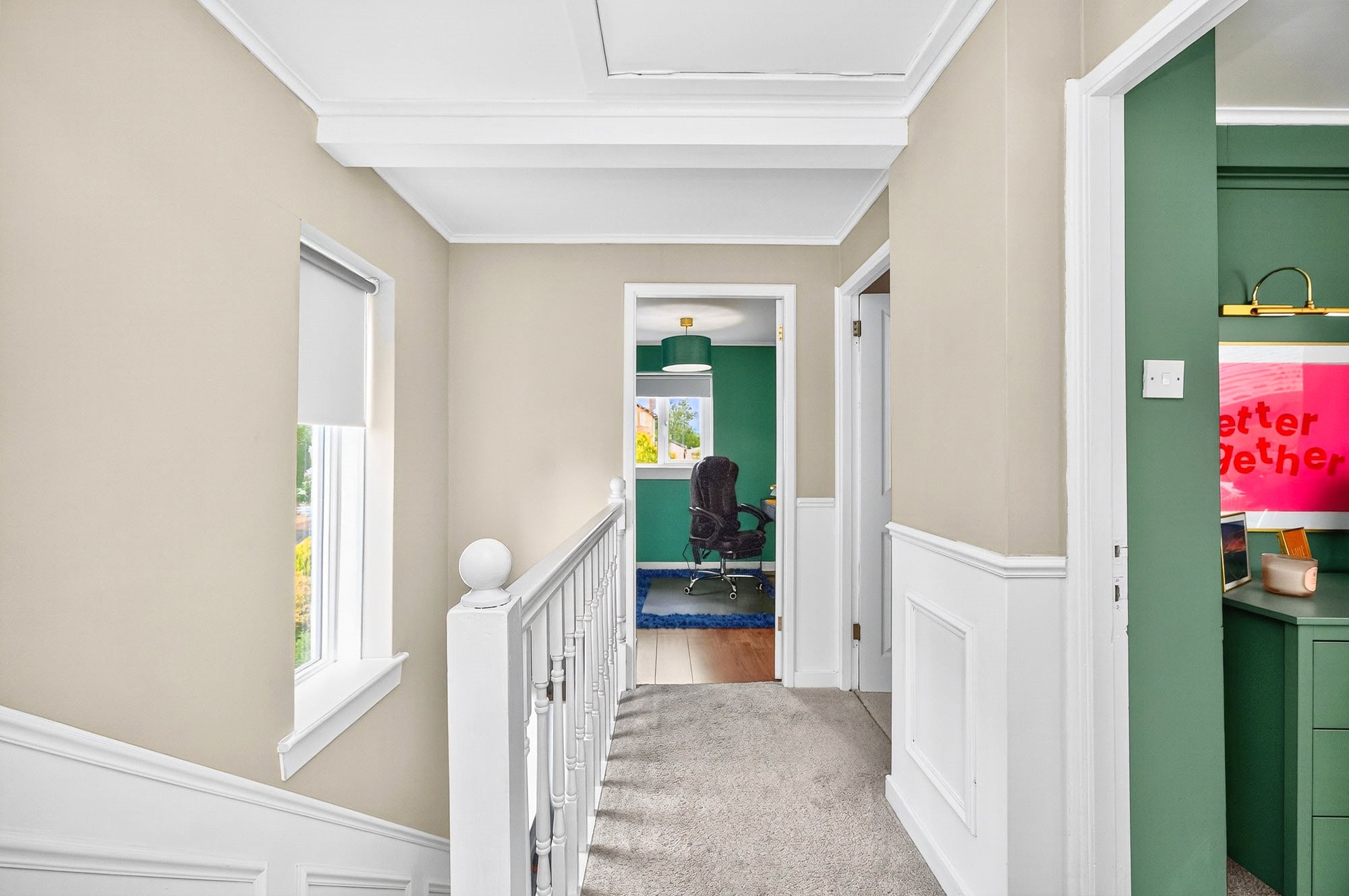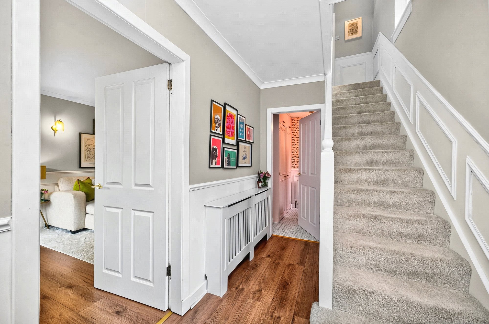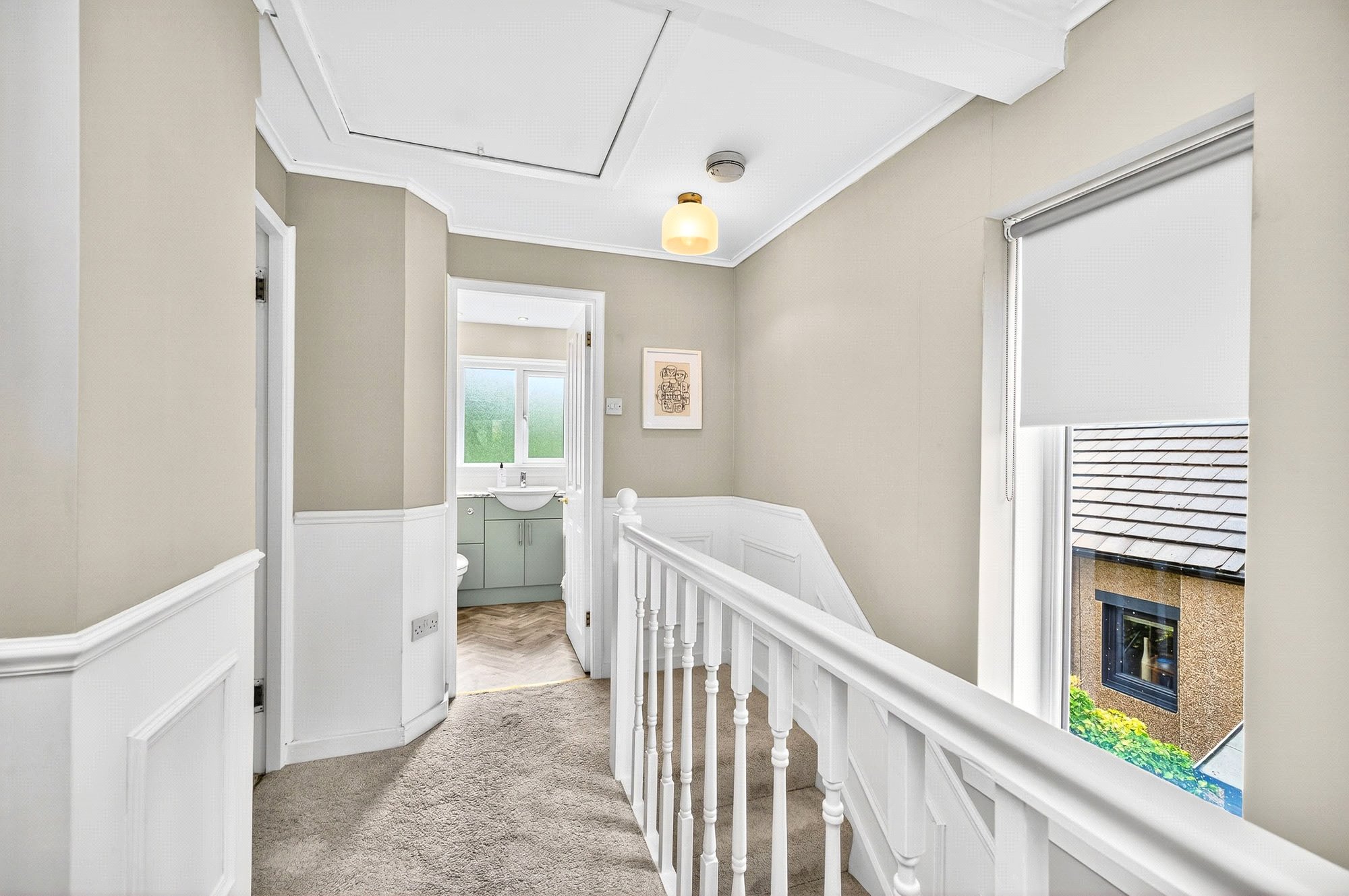 Despite its semi-rural idyll the house is extremely handy being only 2.5 miles to Milngavie Railway station, and the village centre, and only 3 miles to Bearsden Cross. Glasgow City centre can be reached, by car, during off peak times in about 20 minutes.