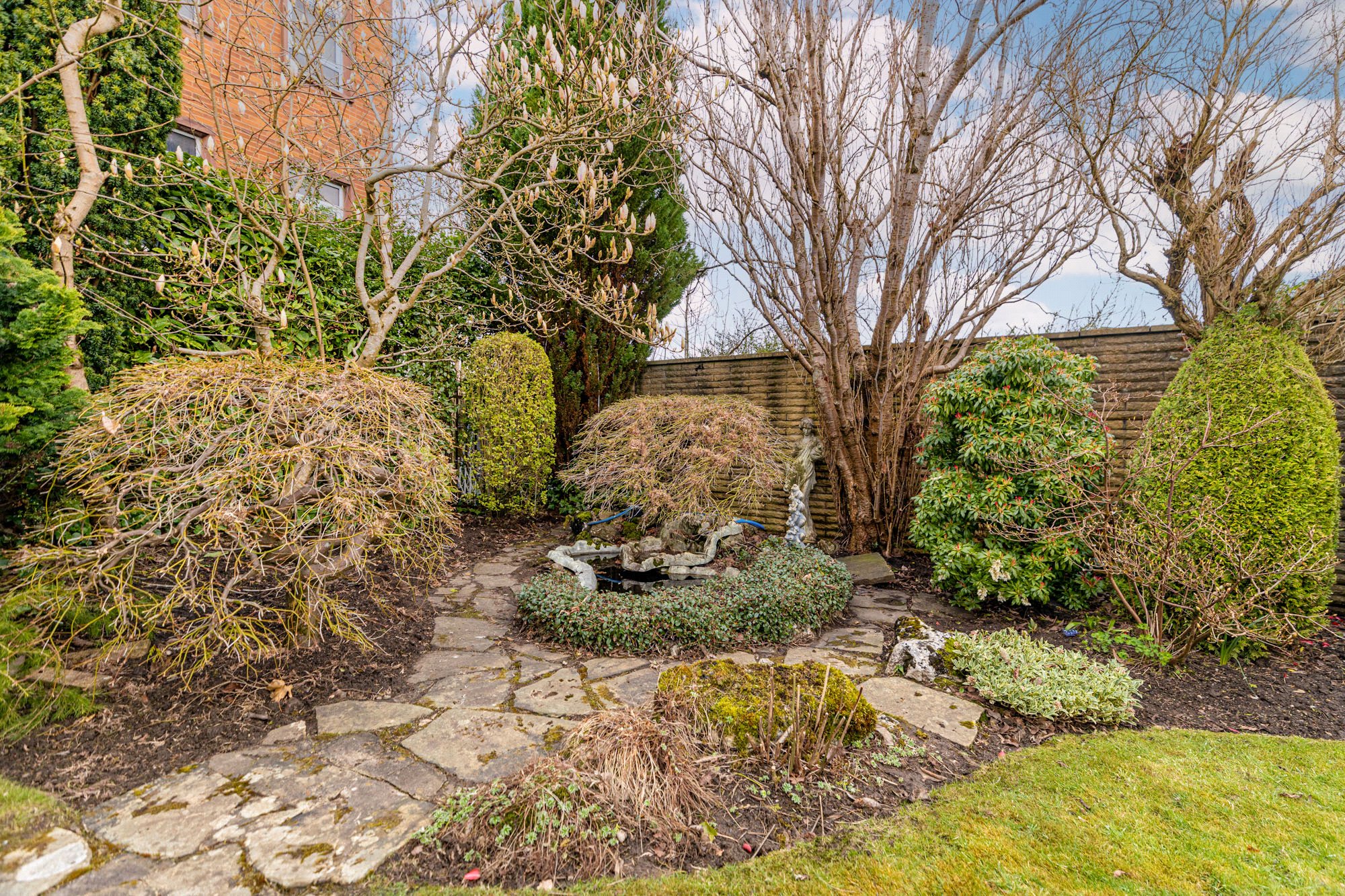 Externally, the property features fabulous garden space – particularly to the rear where a smartly arranged combination of lawn, hard landscaping and bedding areas provide room for child’s play, al fresco entertaining and those with green fingers in equal measure. From front to rear, there is an attractive selection of expertly manicured trees, shrubs and bushes.
