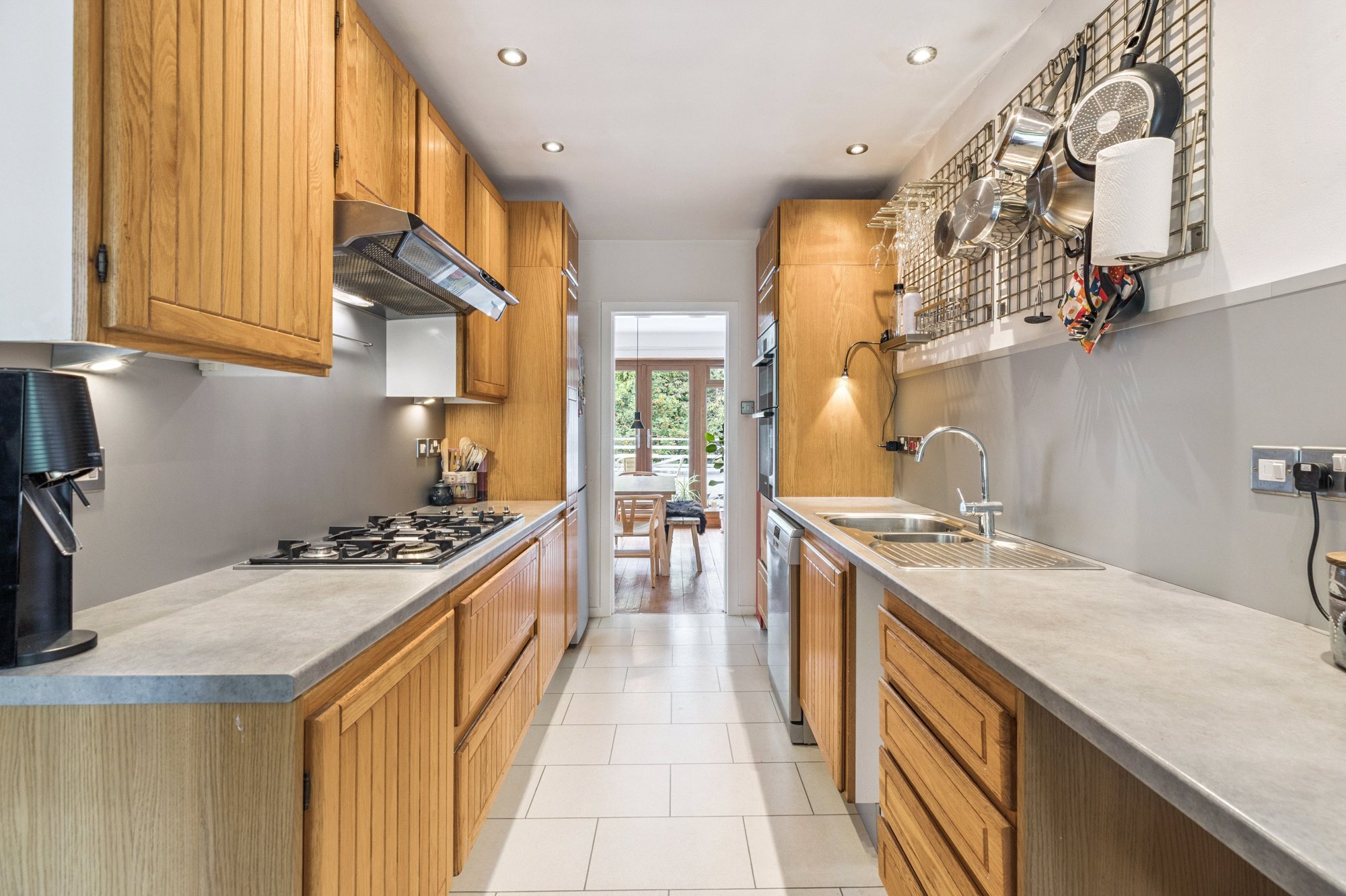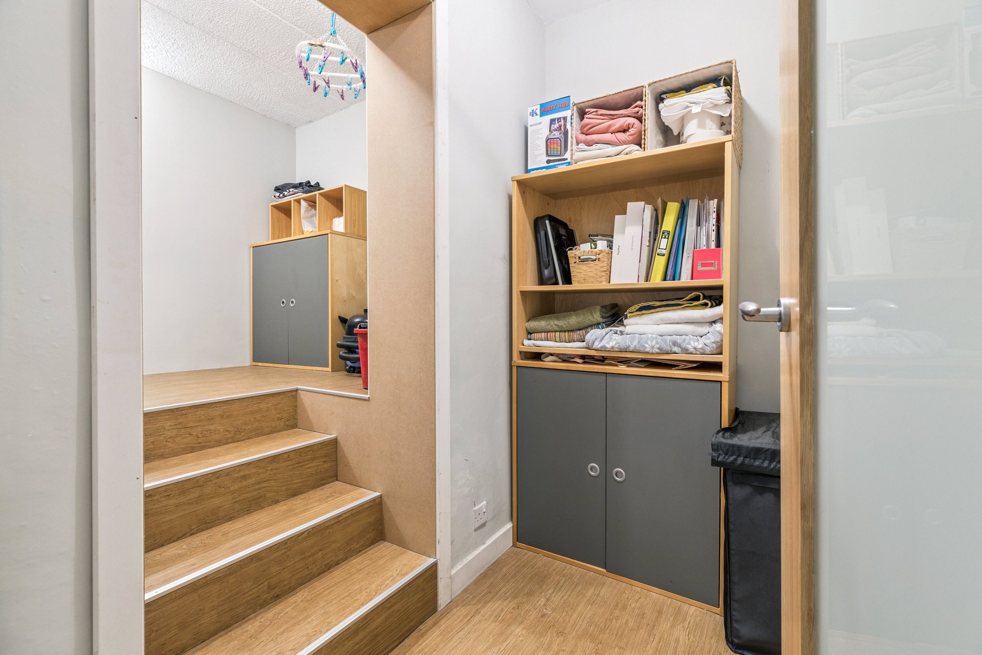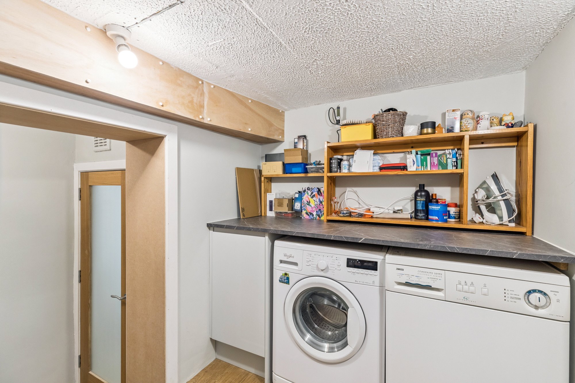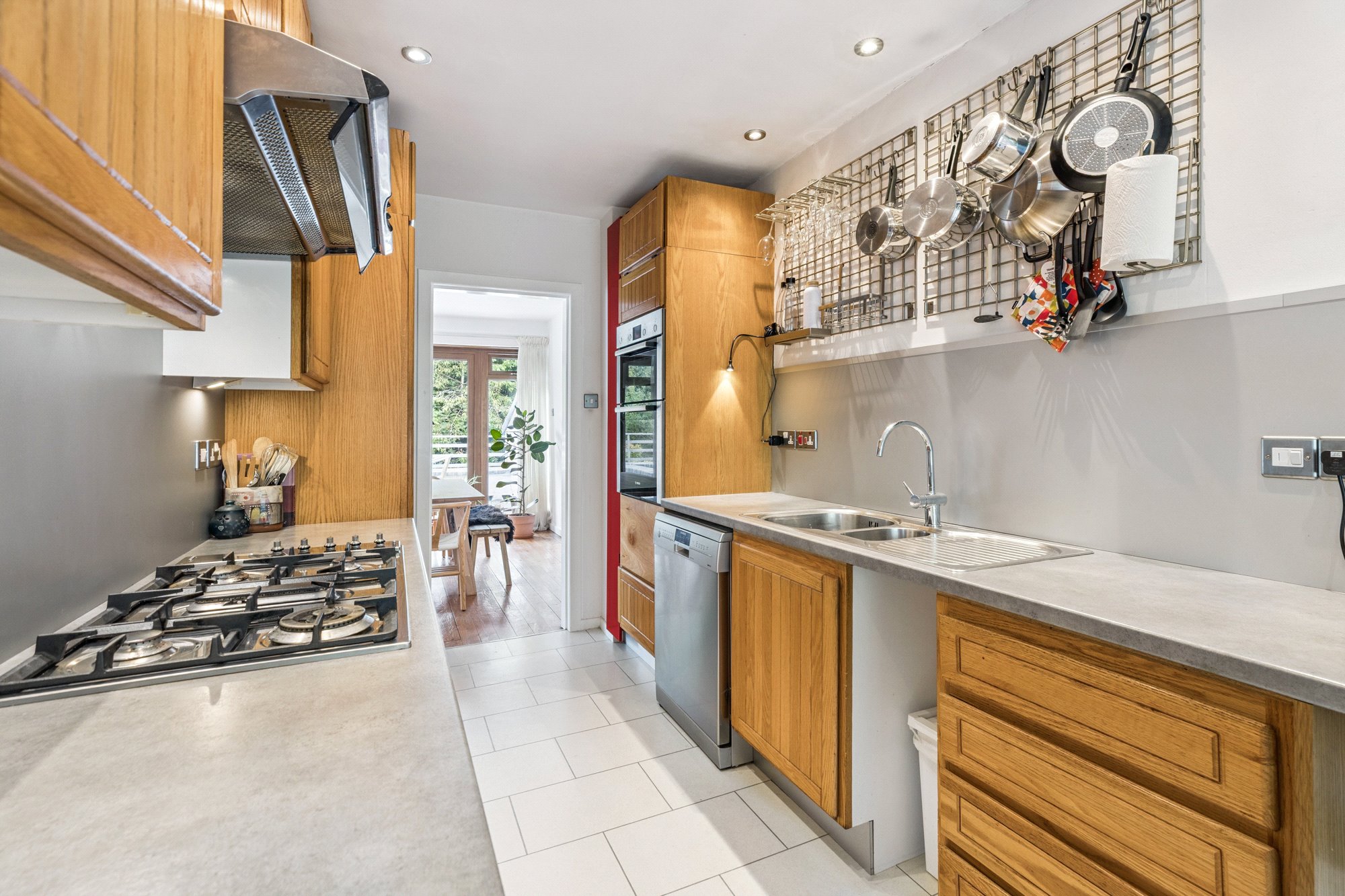 The rear garden is very private and has a lovely stone slabbed terrace across the rear of the house, accessed directly from each of the three bedrooms. Stone flagged steps lead down to a lower grassed garden bounded by fencing and screened by trees to make it very private. Shed. Not far away are the courts of Bearsden Tennis Club the sound of ball on racquet a peaceful backdrop and appropriate during the recent Wimbledon championship.