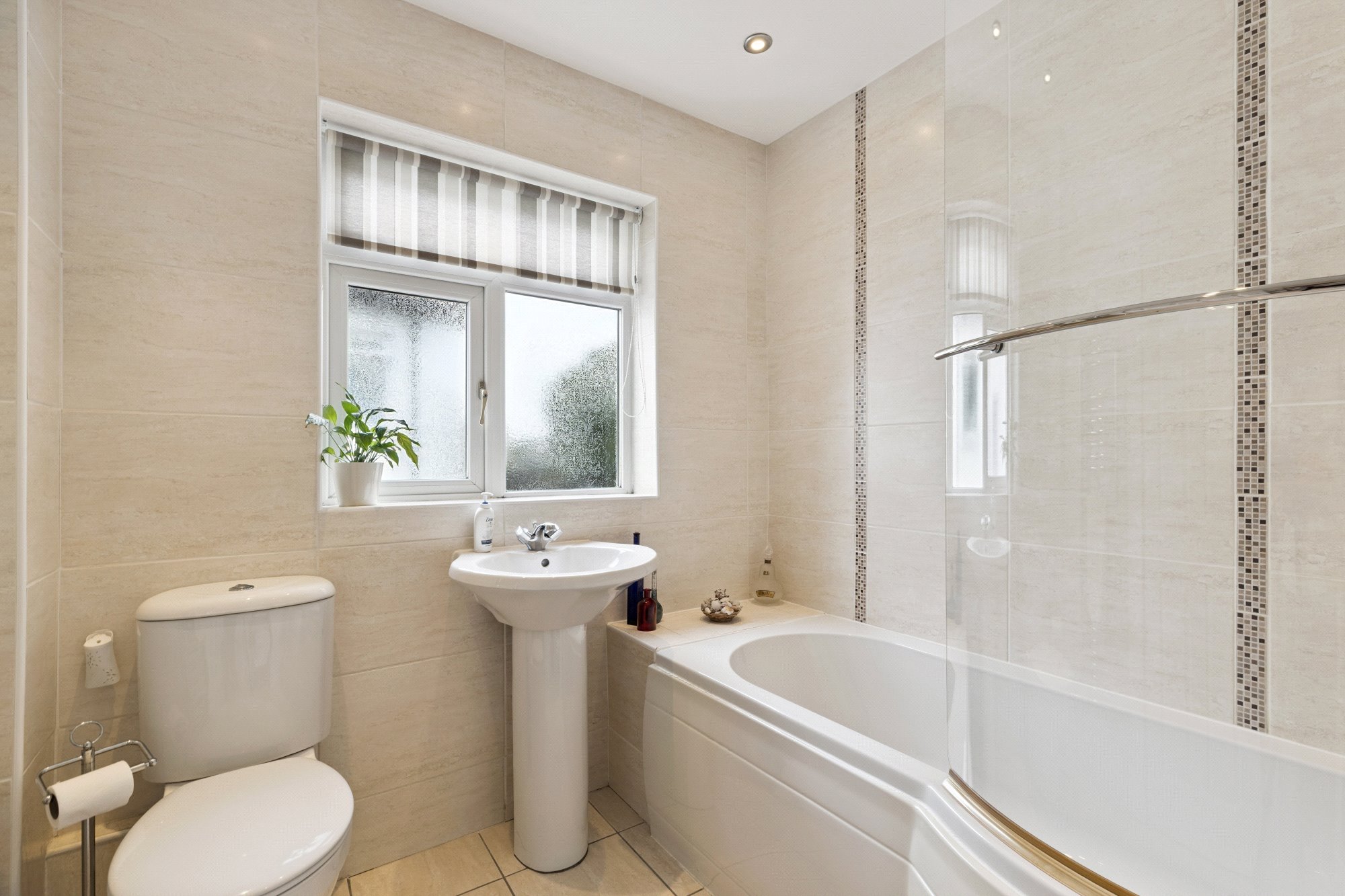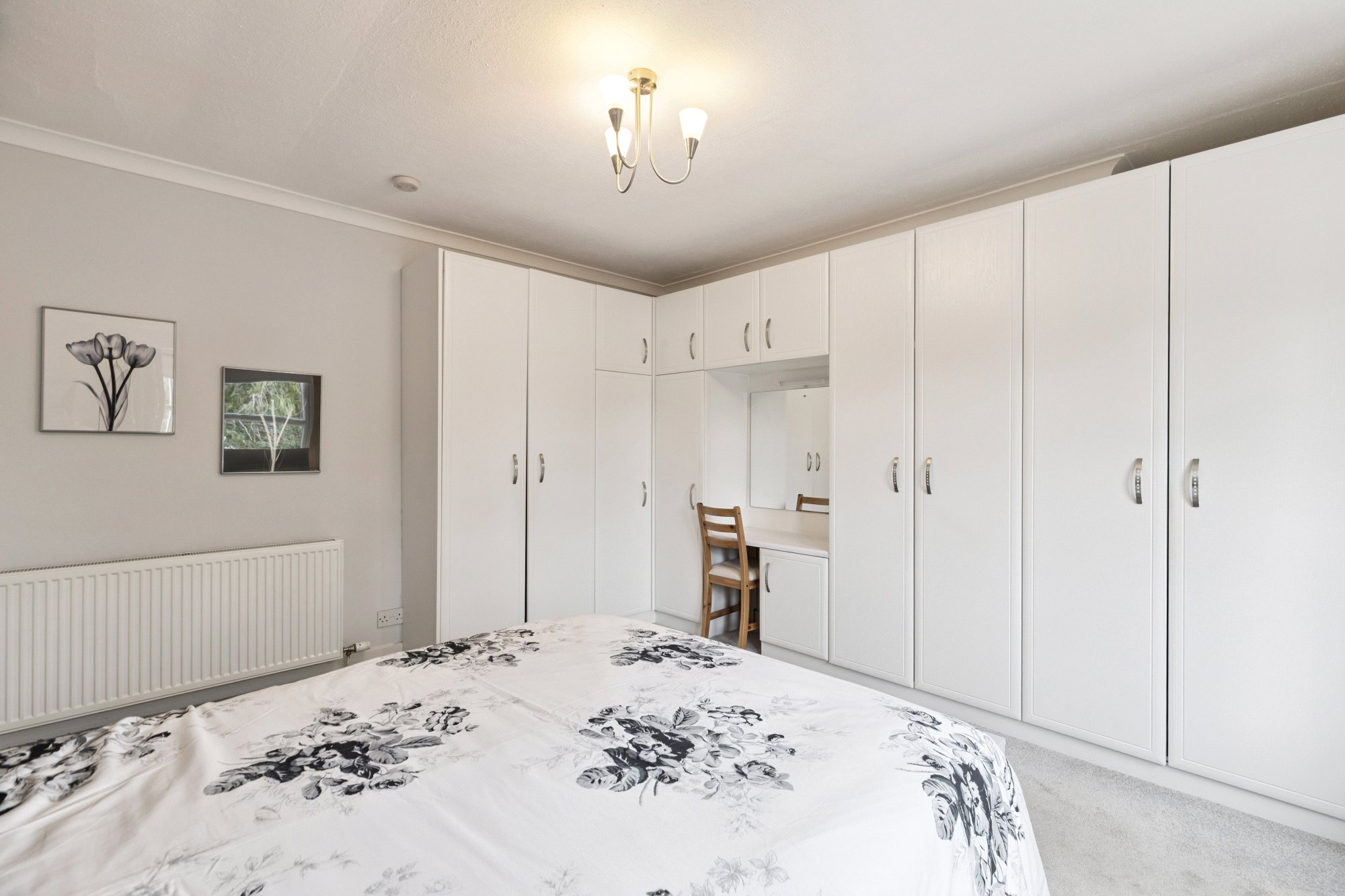 Staircase to landing with gable window, two cupboards, and the ceiling hatch with ladder to the attic. Two double bedrooms, the bay windowed primary bedroom having fitted wardrobes and dressing table. 3rd, single, bedroom. Bathroom.