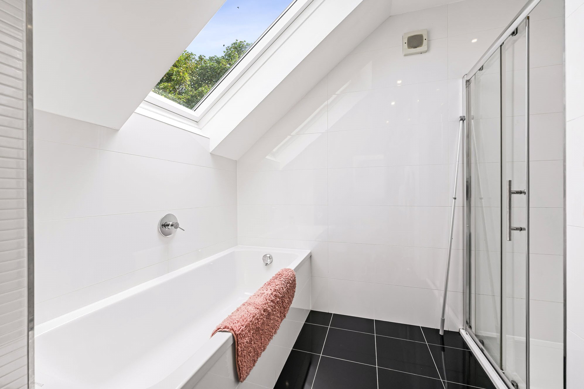 Upstairs, there are five generously proportioned bedrooms, including a lovely primary suite with ensuite shower room. The additional bedrooms are served by two bathrooms, both featuring large shower enclosures. Bedrooms 3 & 4, and the bathroom it serves, are set on the second floor and has been brilliantly created from the former attic space – the architect, and builders, must be applauded for this superb second floor level which makes for a perfect kids/teenagers/guest retreat. All sanitary ware is high-end with Duravit suites and large shower enclosures by Meryl and Vessini and powerful thermostatic showers.