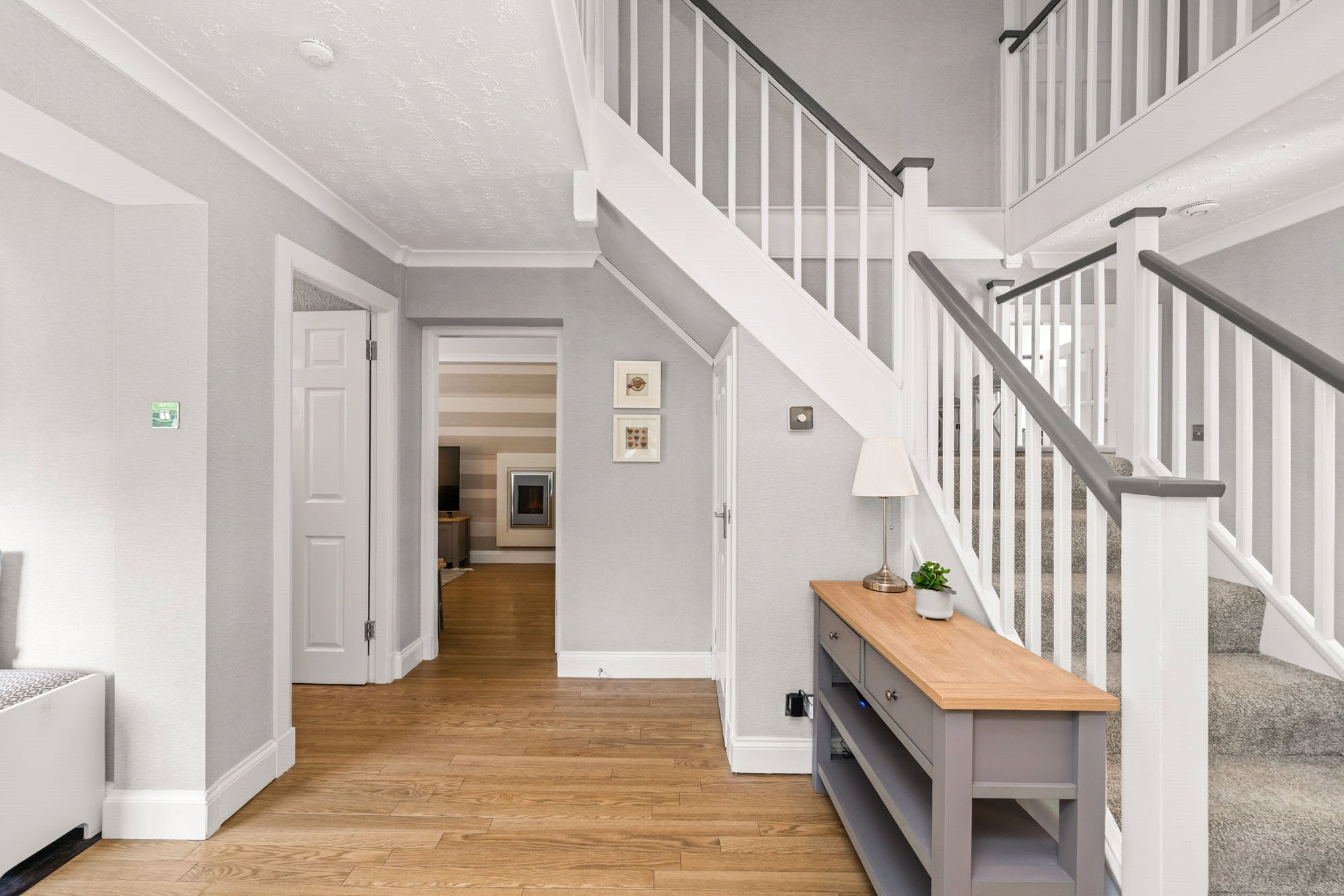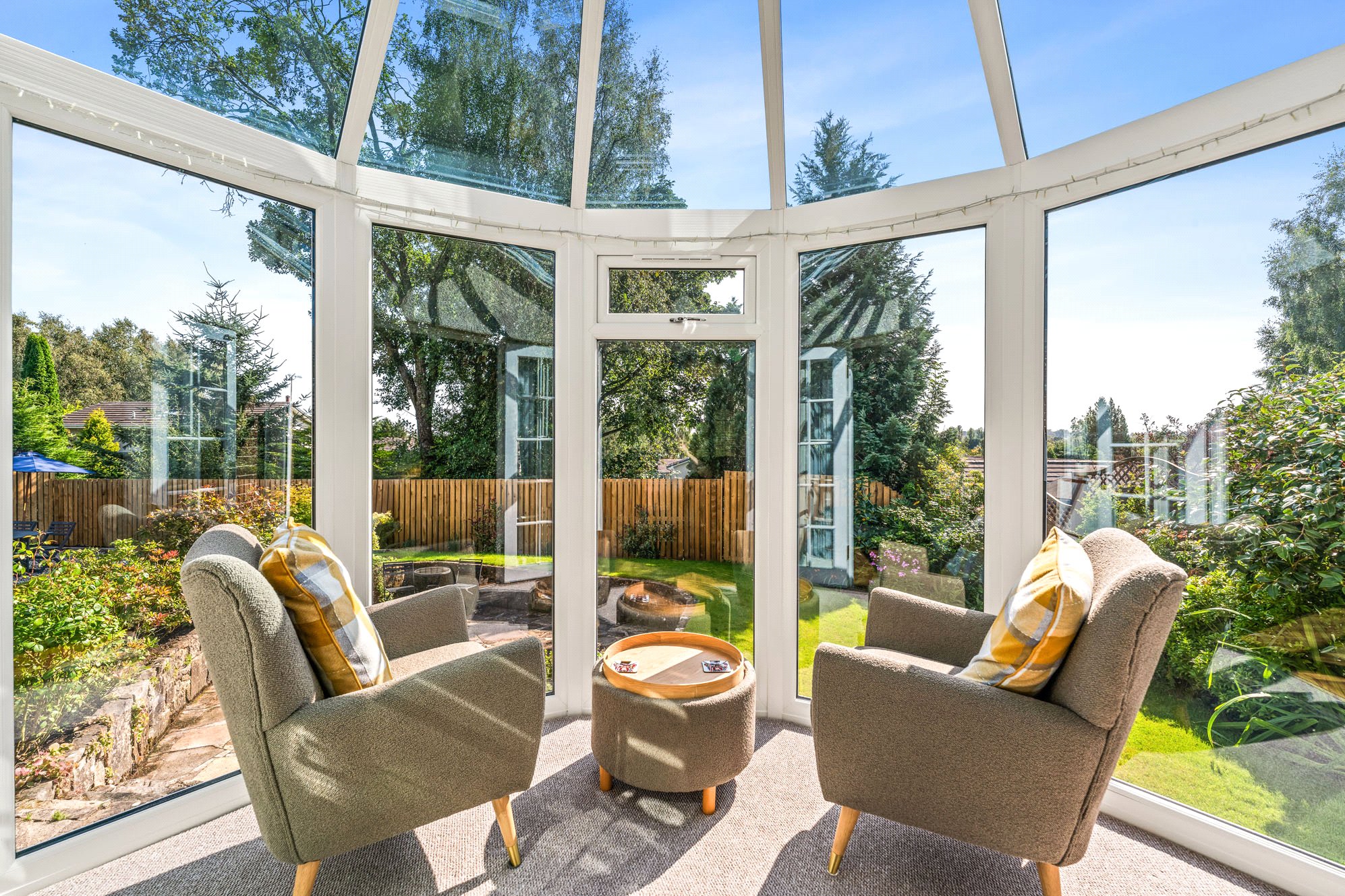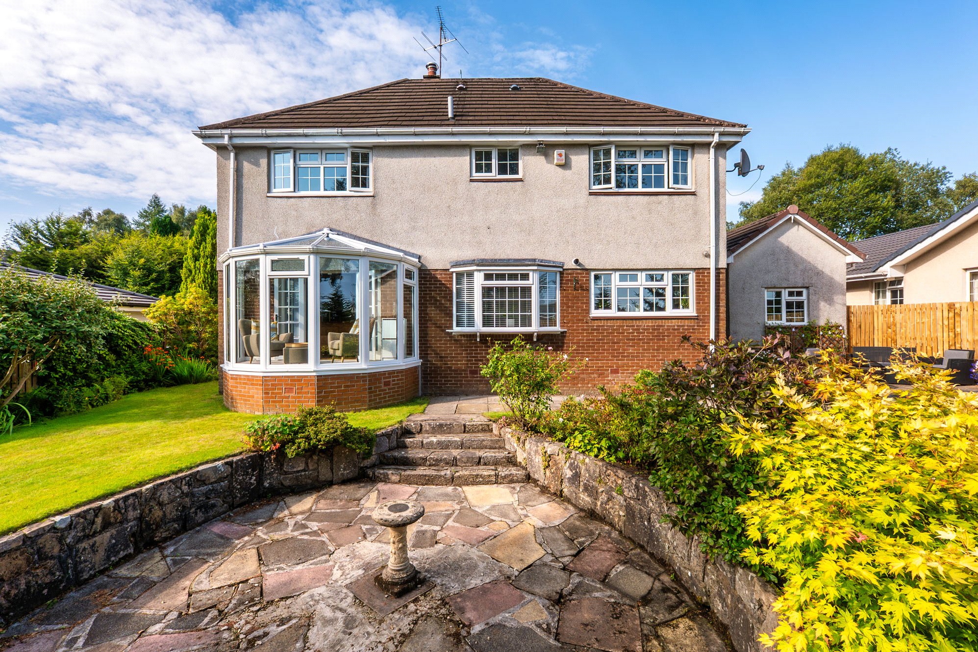 Originally constructed by Salvesen Homes in the 1980’s, this spacious detached villa has, over time, been thoughtfully/successfully extended to its front and rear elevations to create what now stands as a particularly roomy and well designed family home that will appeal to those looking to set their roots in a much loved, quiet and leafy pocket to the easterly fringes of Milngavie. From the point of acquisition, our clients have employed a number of improvements/upgrades to the property inc. general decorations, a combination boiler, new radiators (living room, hallway, bedrooms) installation of a pod point car charger, and the reglazing/decoration of the conservatory/sun room – now a lovely vantage point to appreciate the beautiful rear garden.