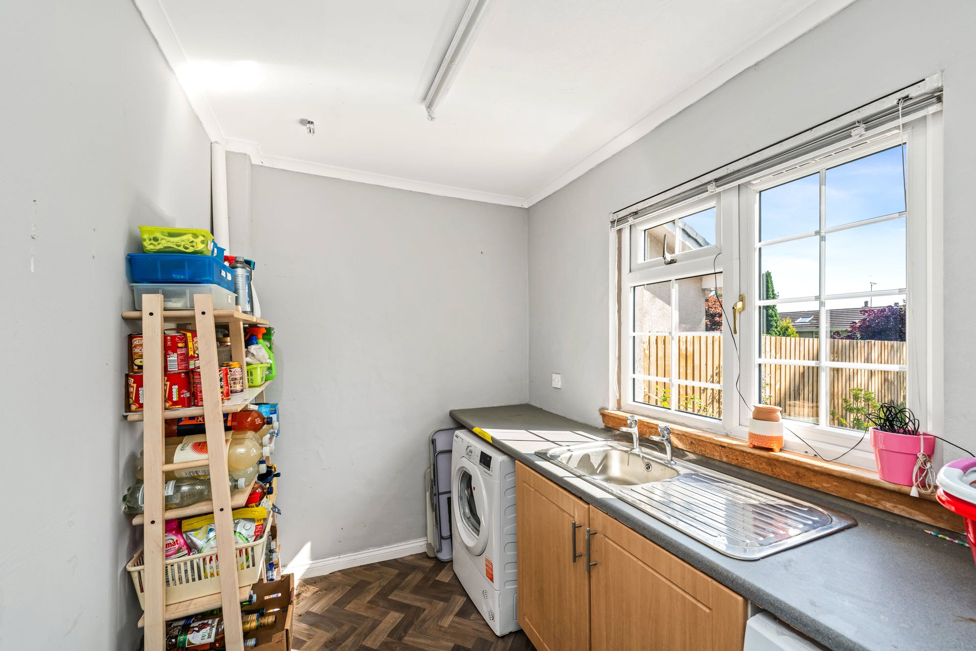 Externally, the property features a stunning south facing rear garden with feature recessed patio – plenty space for child’s play and al fresco entertaining in equal measure. There is a detached garage with separate utility space to rear, with off street parking via driveway.