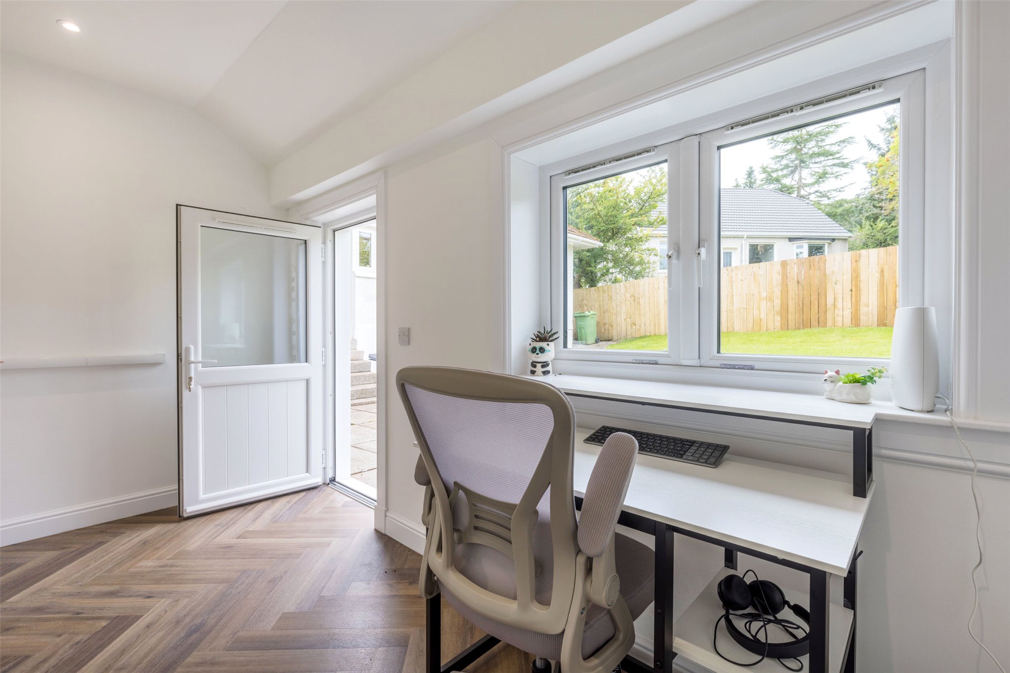 A very smartly presented example of the 1950’s John Lawrence bungalow found in Bearsden’s highly popular Switchback district. No. 8 Kelvin Crescent is a really appealing property that has been cleverly altered over time, with key features including a fantastic open plan dining/kitchen area and a large principal bedroom with ensuite facility. Attractively presented to market in mainly neutral decorative tones and with contemporary fixtures and fittings (bathrooms replaced in 2024), this is a home very much ‘ready to go’ for the prospective bidding party.