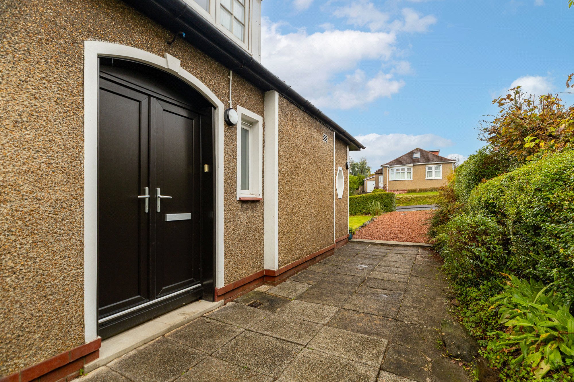 The Southern Building Company only built in seven addresses in Kessington and for Borland Road only in its westernmost section. Being in Kessington it is therefore extremely handy for the shops on Milngavie Road and is but a half-mile walk to Hillfoot railway station. Bearsden Cross, the heart of the town, is some 0.9 mile away.