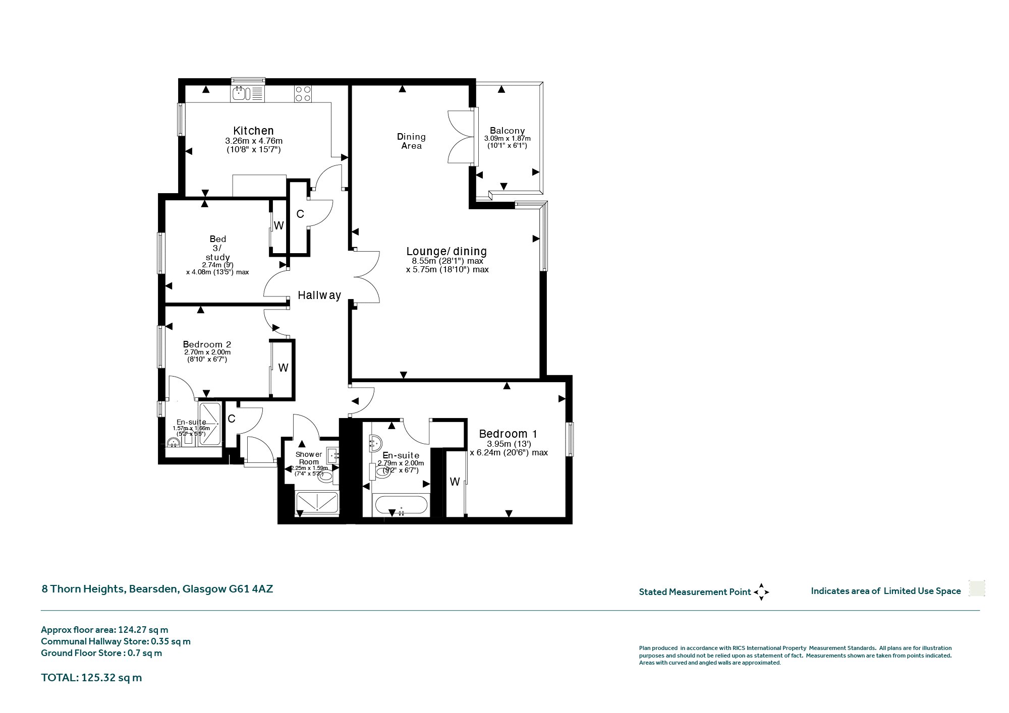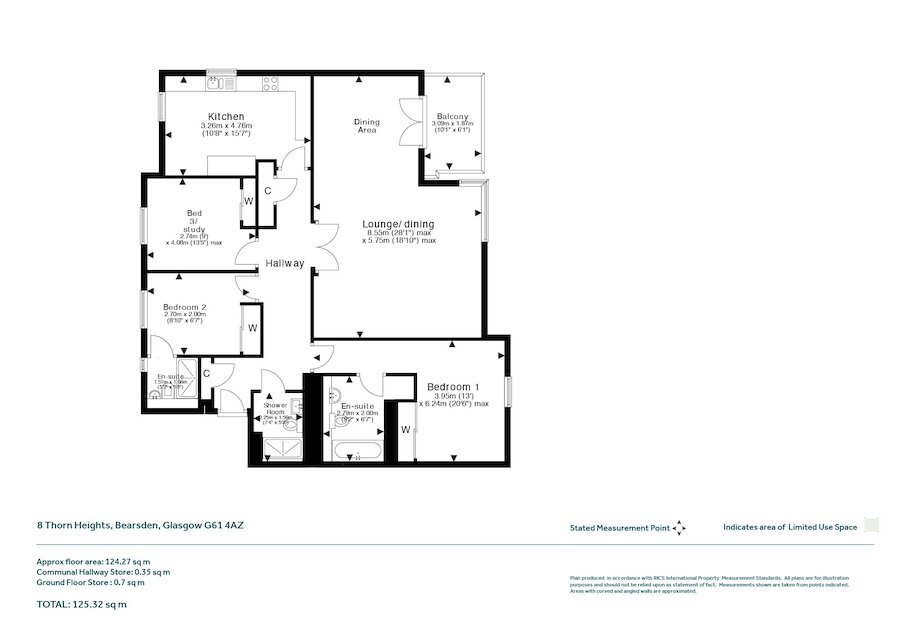 Reception hallway, spacious lounge/dining room (balcony accessed off dining area), dining kitchen with range of quality appliances, three double bedrooms (bed 3 currently set up as home office), full bathroom ensuite off principal bedroom, shower room ensuite off bed 2 and shower room off the hallway. It is our client’s intention to include all blinds, curtains, wall unit and sideboard in the dining room in the sale.