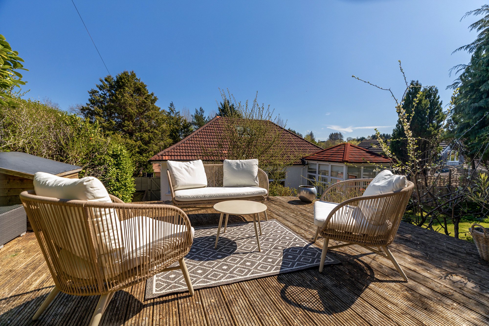Fabulous garden space surrounds the property, with section of lawn, timber decking and hard landscaping combining to great effect. Mature shrubs, bushes and trees provide various points of interest and splashes of colour.