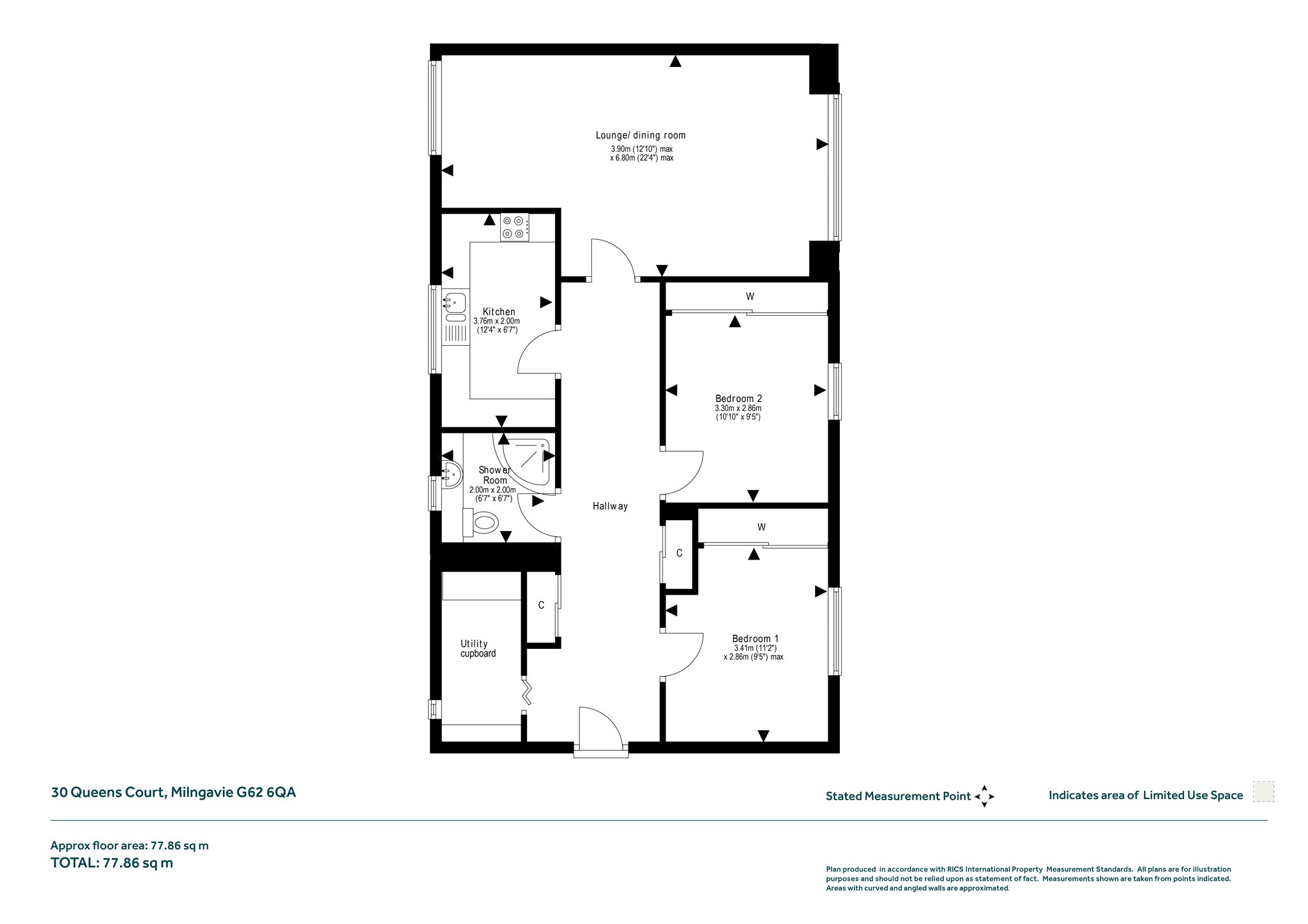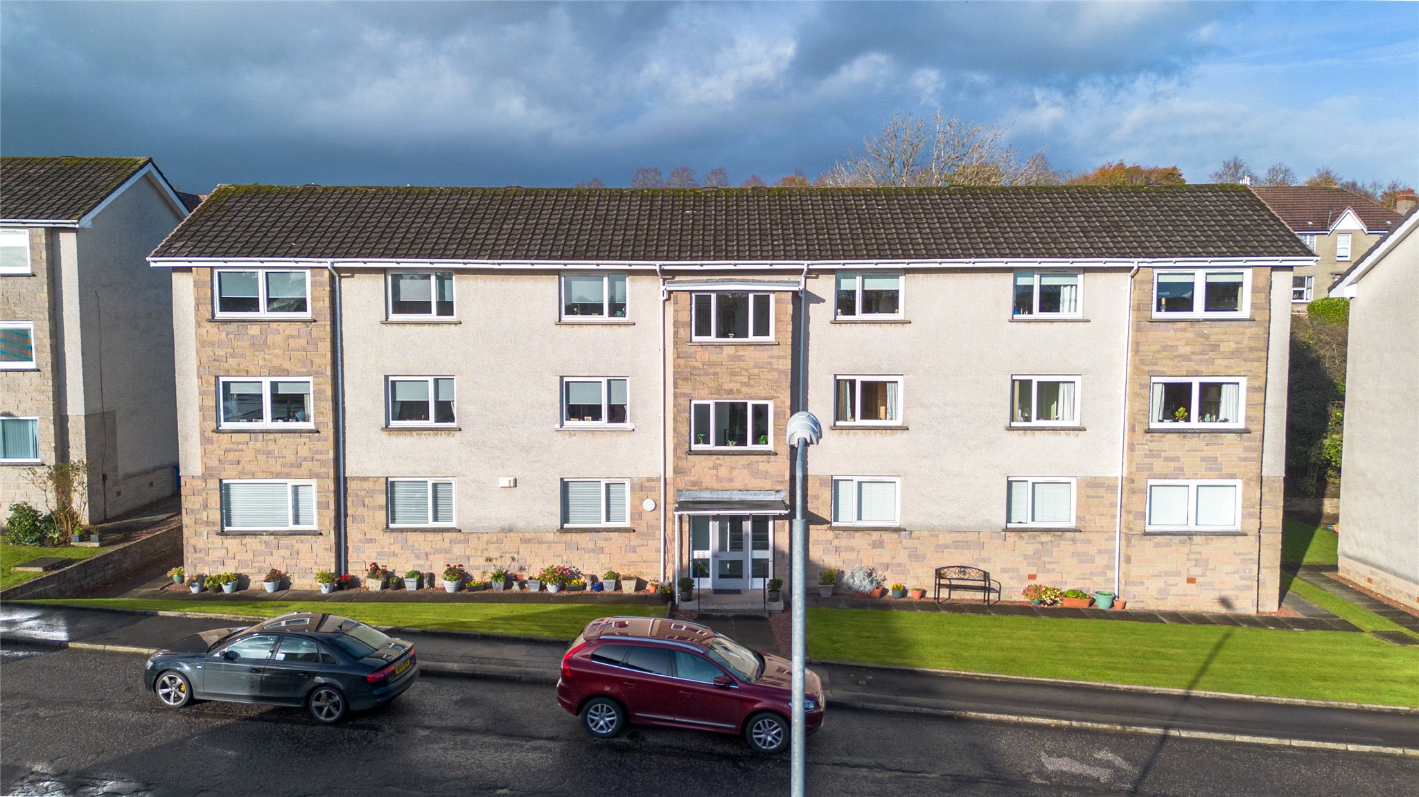 The property is set on the preferred first floor of a block of just six similarity style apartments and enjoys a particularly peaceful/quiet setting with views across the playing grounds of the West of Scotland RFC. The building is factored by McPhee (average bill c.£150 per quarter – subject to variance depending upon works required). Notably, the residents in the block have agreed/paid for the installation of a security-controlled entry system, with works still to be scheduled. Accessed for the communal hallway, the property features a large storage cupboard with key entry. Gas central heating via modern Worcester Bosch combi boiler, contemporary double glazed window units.
