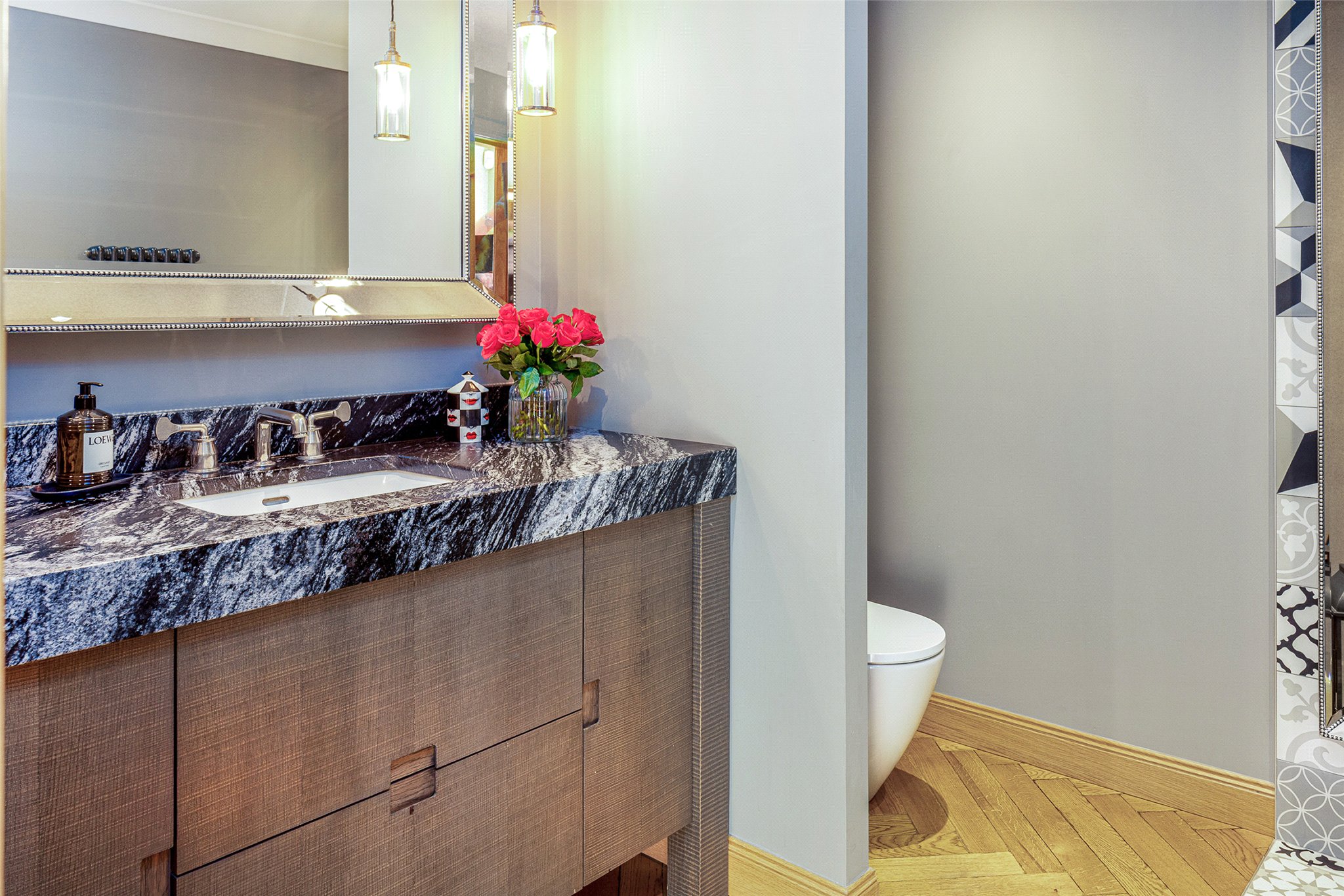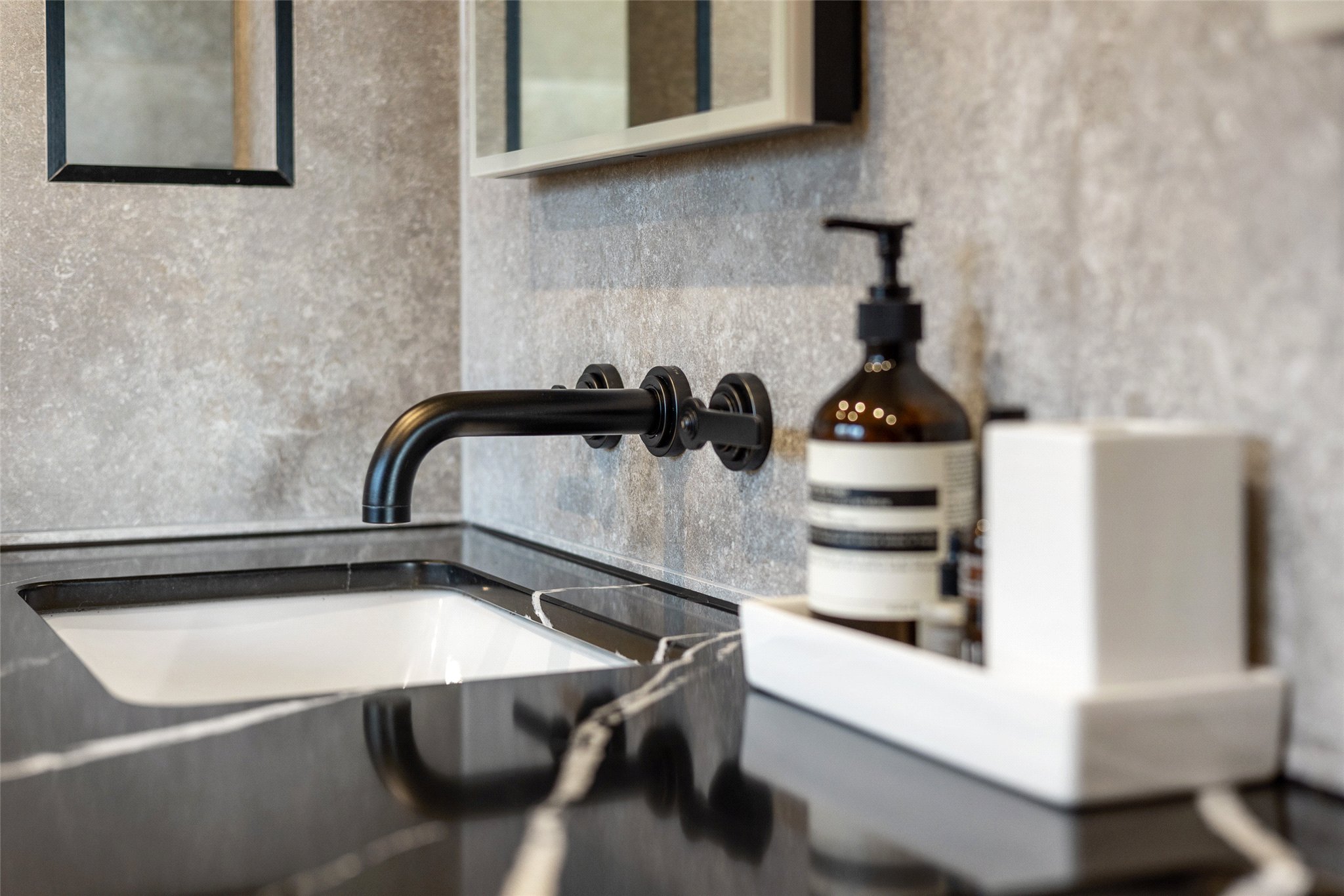 - Cloakroom w.c – hardware by Drummonds, Leather finished Granite worktops, Ca Pietra tiling