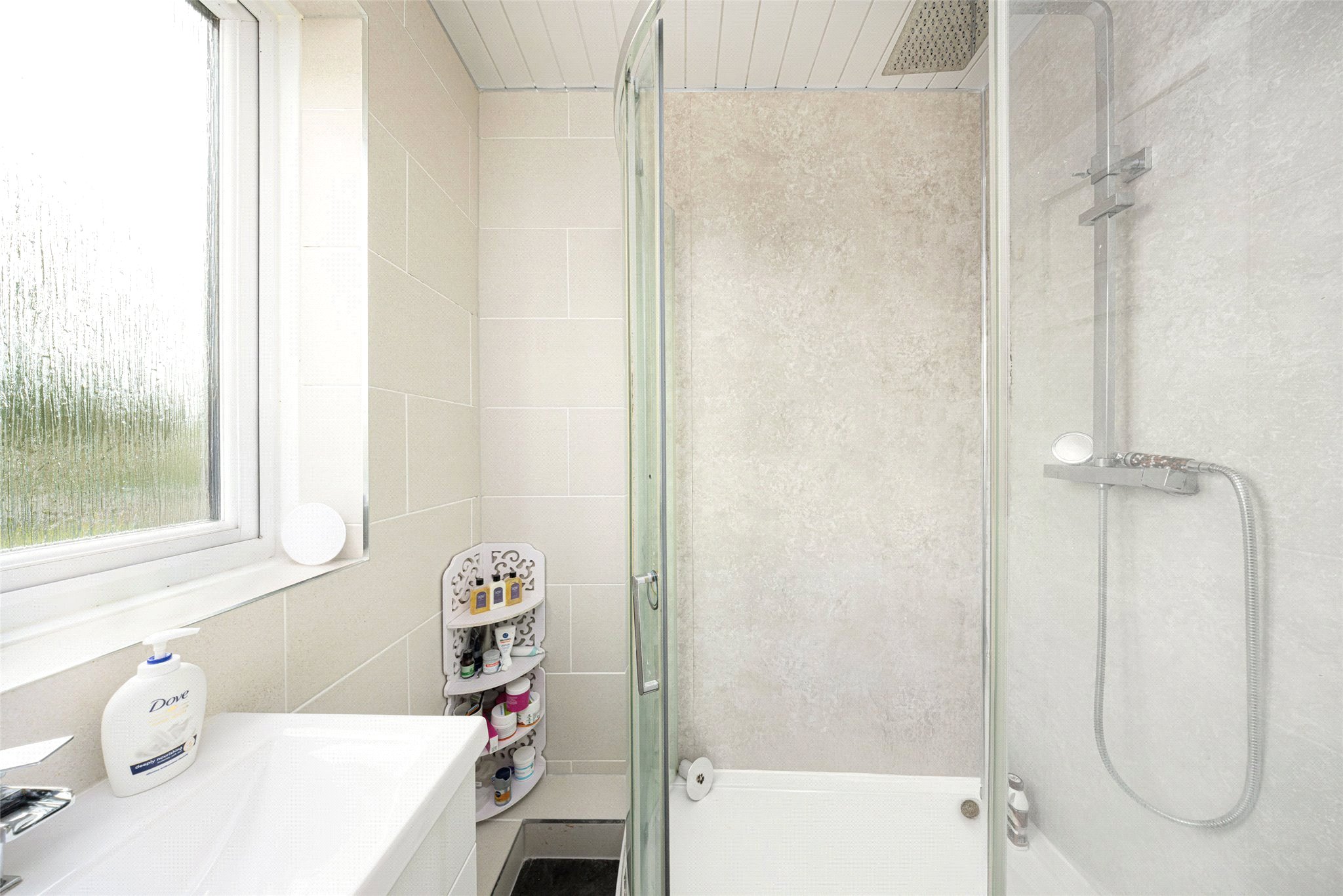 Upper Landing with side window, hatch to attic; two Double Bedrooms; Shower room with both deluge and hand shower heads.