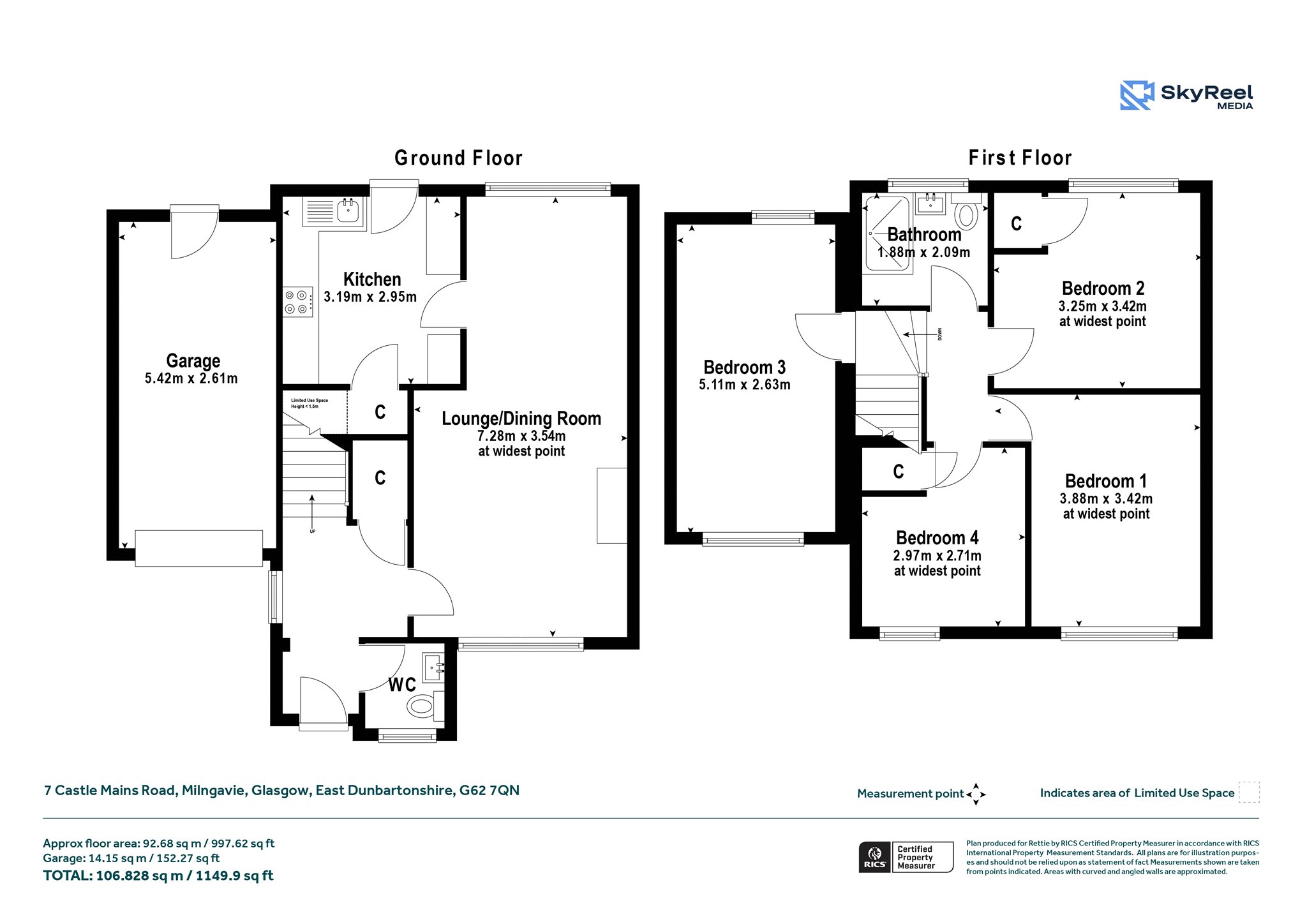 - Four bedrooms – three doubles and additional single room