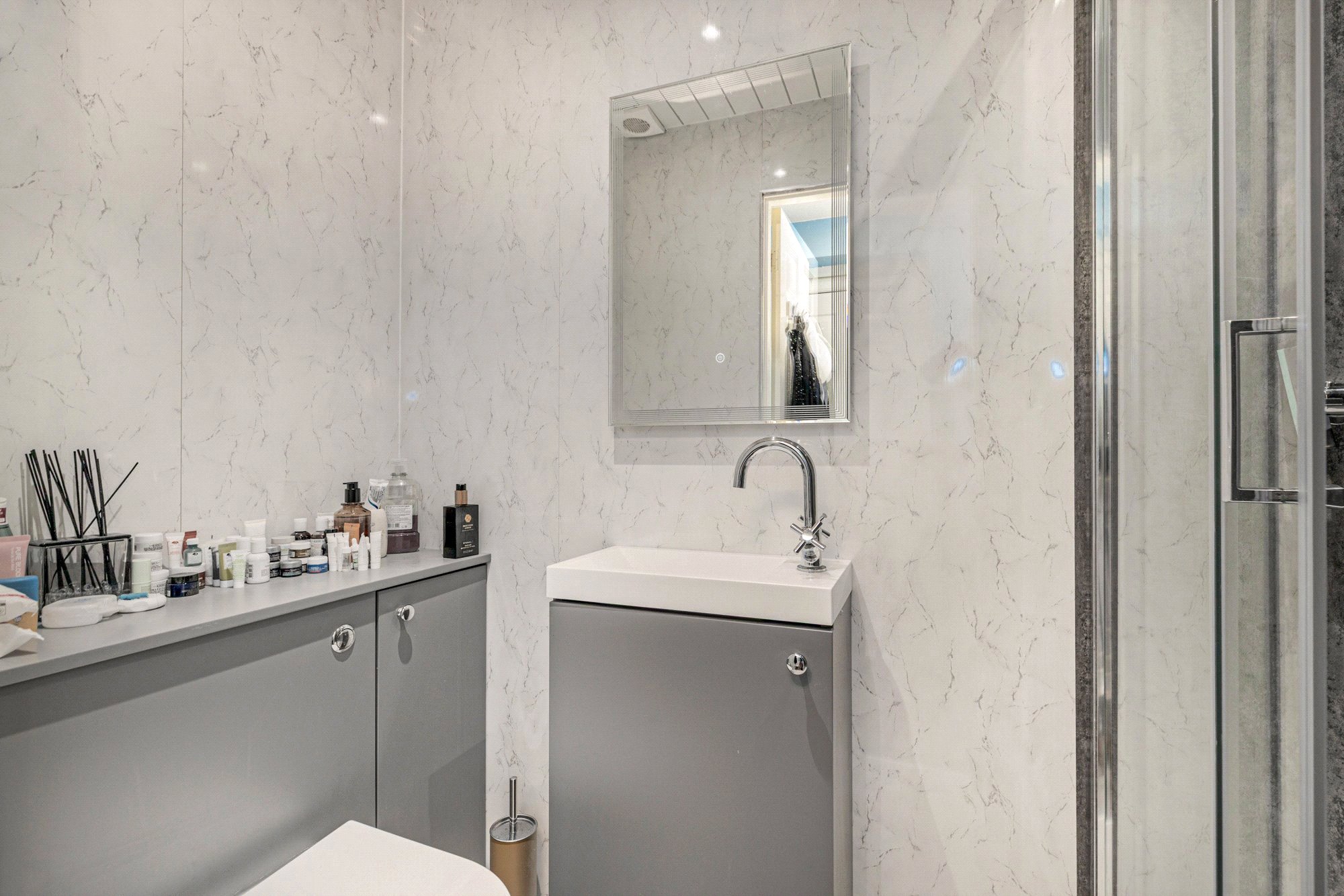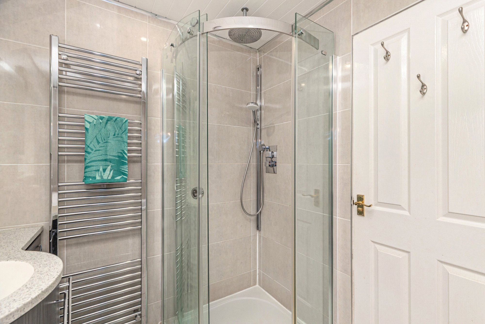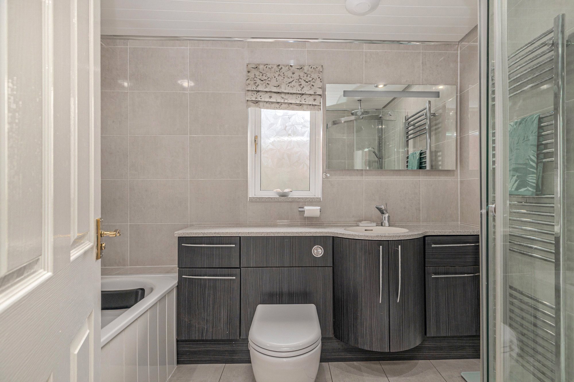 - Fully tiled bathroom – three piece suite, chrome heated towel rail, integrated cabinetry, walk in shower enclosure (deluge fitting running from mains system)The external spaces associated with the property are equally impressive with a drive leading from front to rear laid to Tegula blocks and a sizeable/landscaped rear garden with plenty of room for child’s play/al fresco dining worthy of specific note.