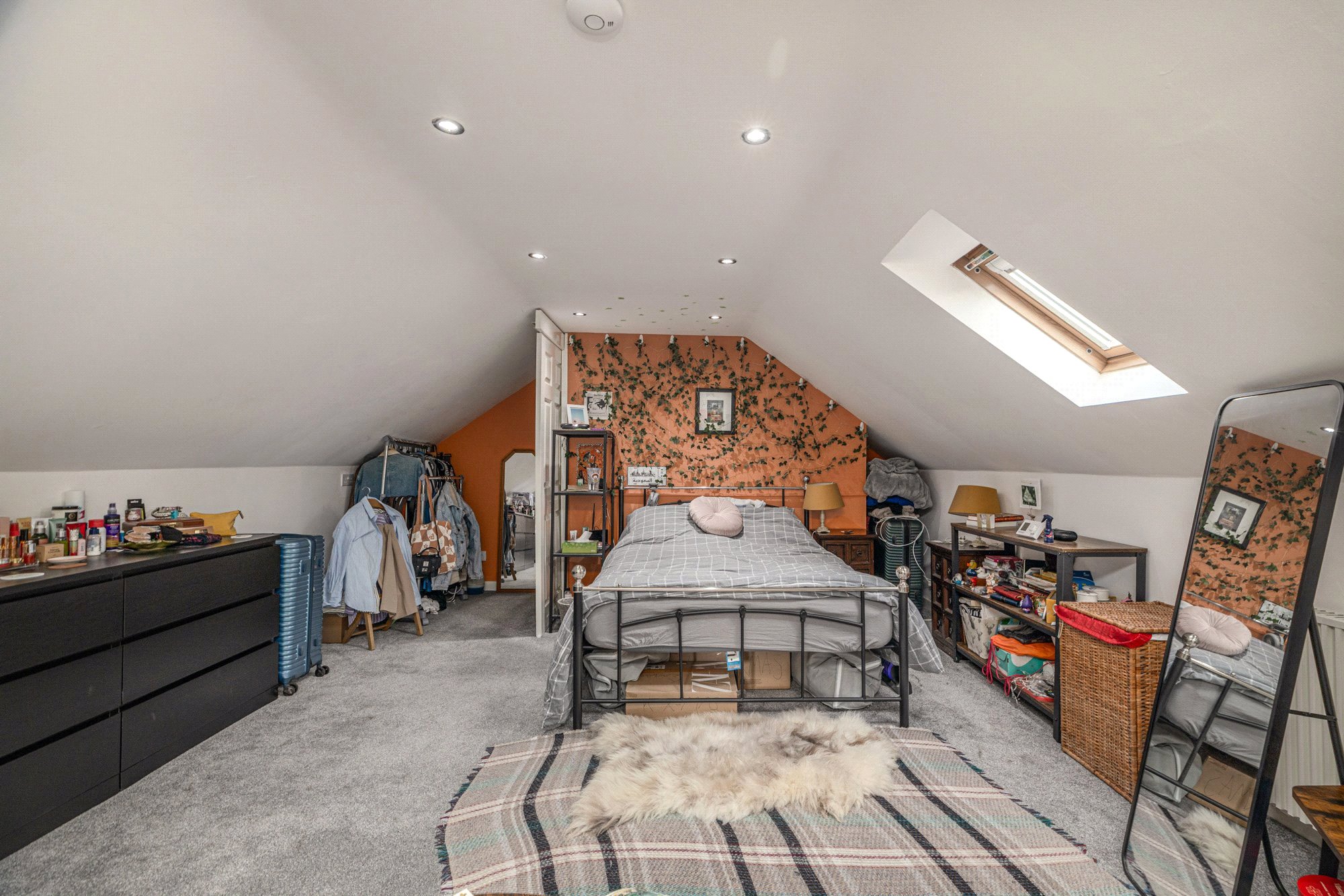 - Large lounge – highlighted by dual Velux windows, sliding door access to rear garden