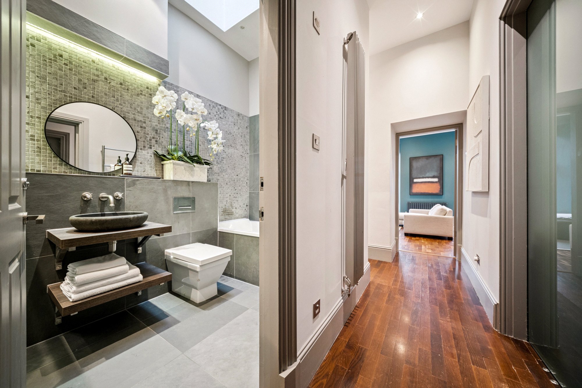 The flat is ideally suited to professionals, downsizers or discerning buyers seeking a refined city residence with outdoor space and private parking in Murrayfield, minutes from the City Centre.