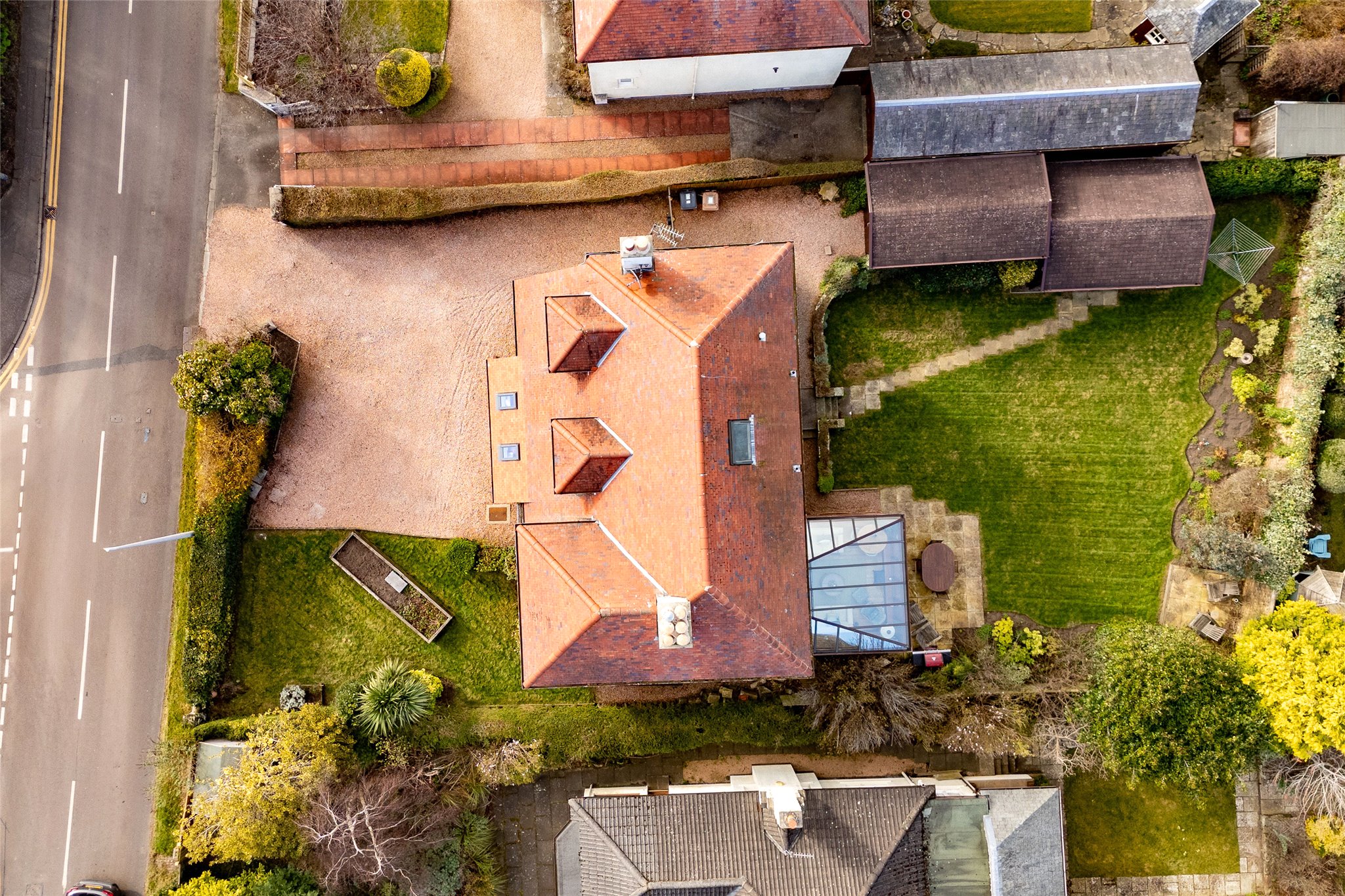 Well-kept front and rear gardens plus a versatile garden studio