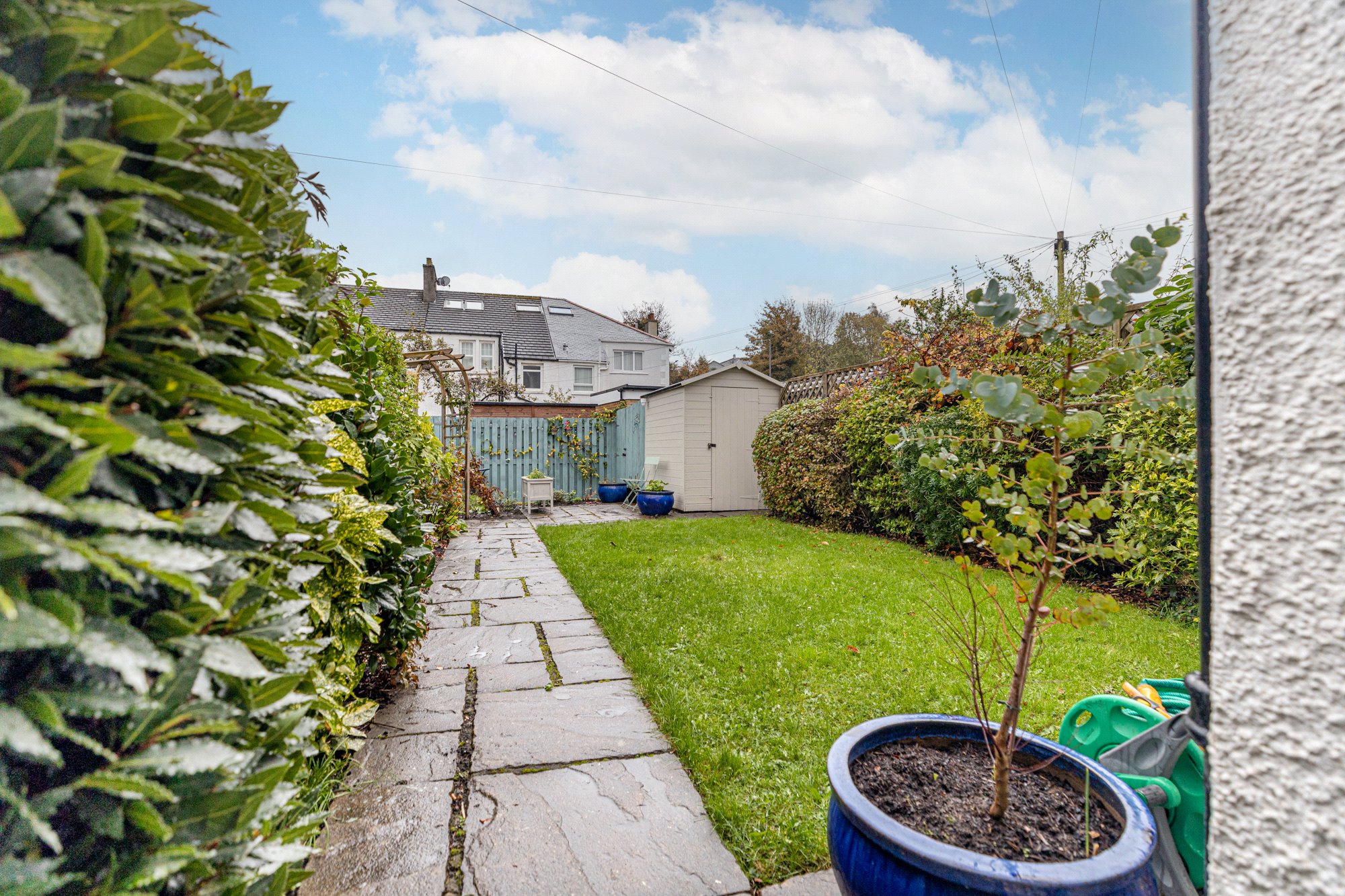 - Private front garden and a stunning private rear garden with lawn, paved patio, mature planning and a useful garden shed.