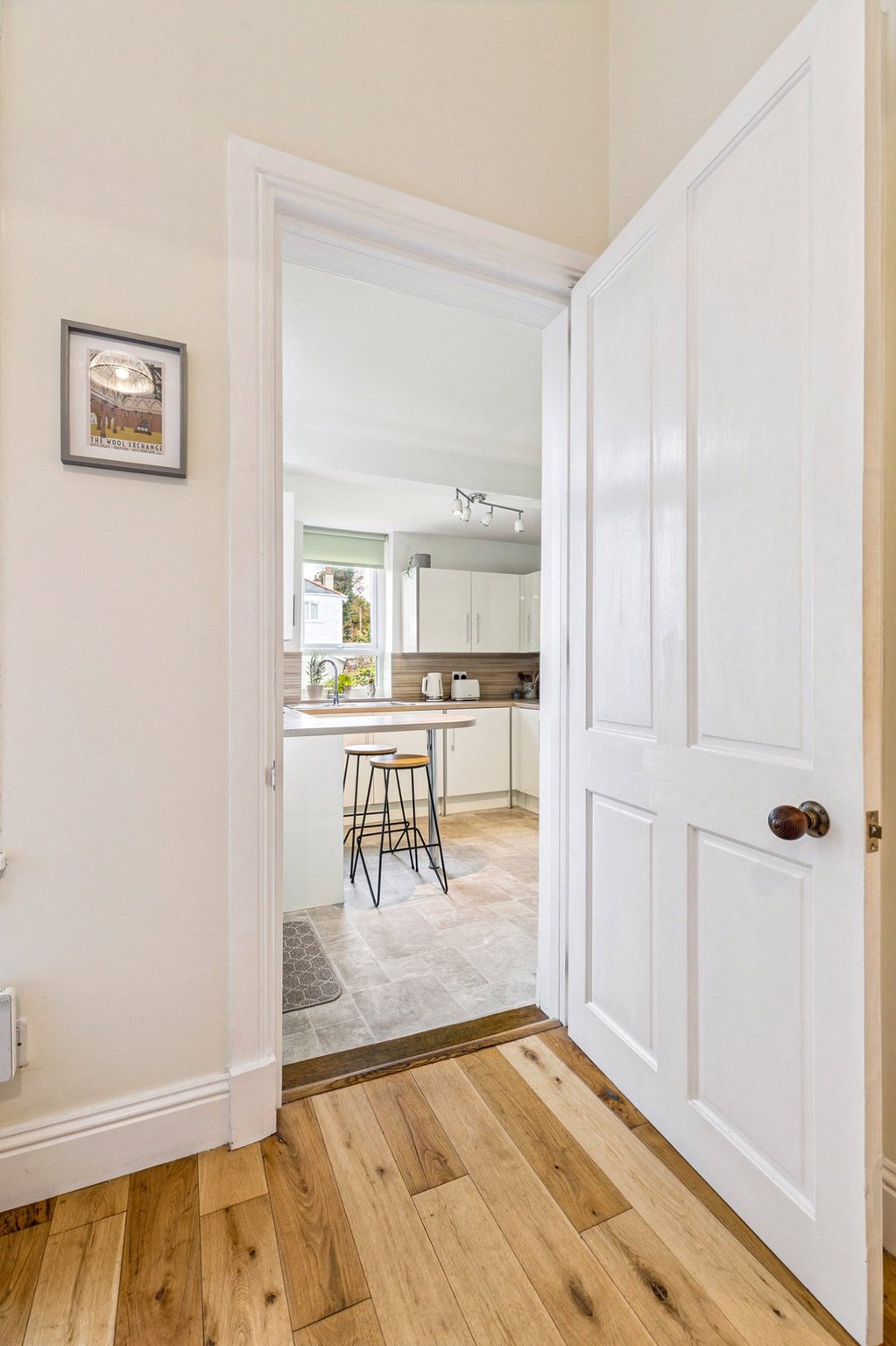- Welcoming reception hall with wooden flooring and stairway off.