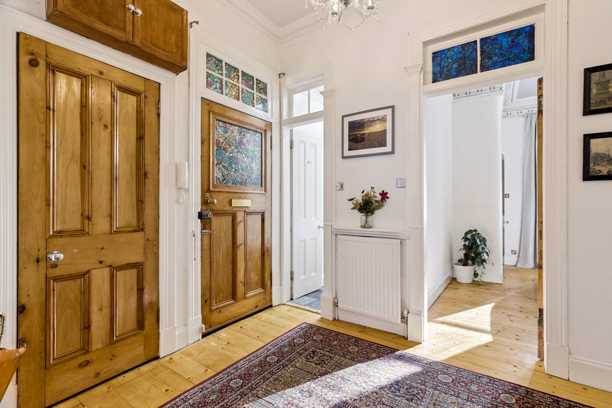 - Welcoming reception hall with useful storage cupboard off and wooden flooring