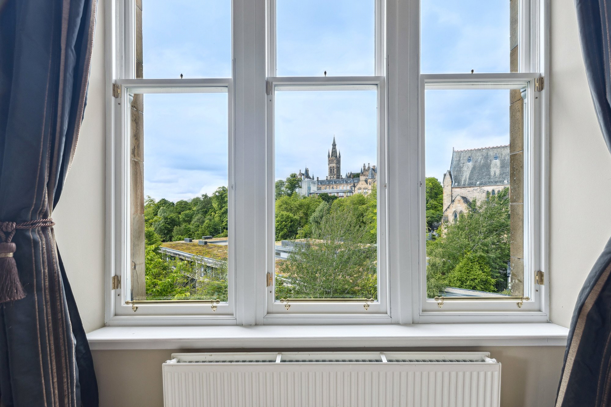 An outstanding five apartment flat occupying a prominent third floor position within a handsome blonde sandstone tenement building. This impressive property boasts incredible views over The River Kelvin and over towards Kelvingrove Park together with a fantastic outlook over towards The University of Glasgow. Located in a peaceful yet incredibly convenient location in the highly popular Hillhead district, 7 Westbank Quadrant is exceptionally well placed to take advantage of an enviable selection of local amenities on Gibson Street, Woodlands Road, Great Western Road and Byres Road together with excellent transport links and easy access to The University of Glasgow, Kelvingrove Park and The Botanic Gardens.