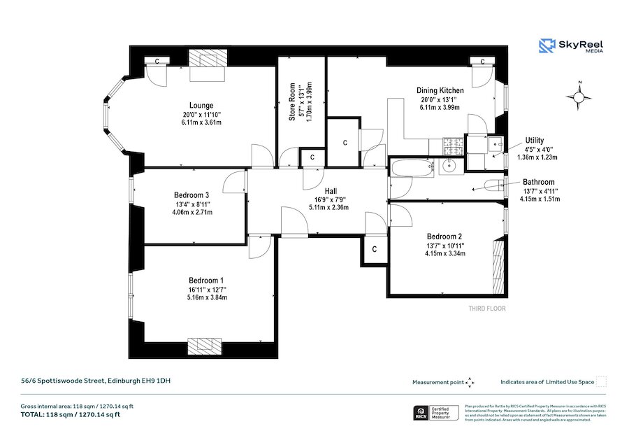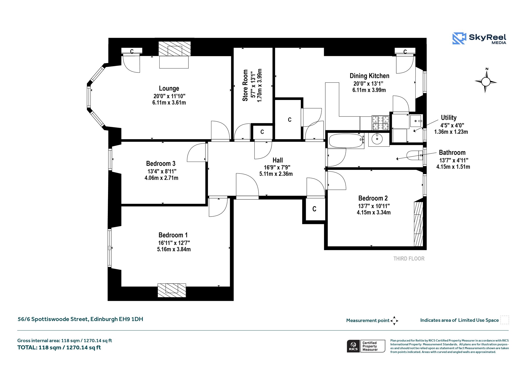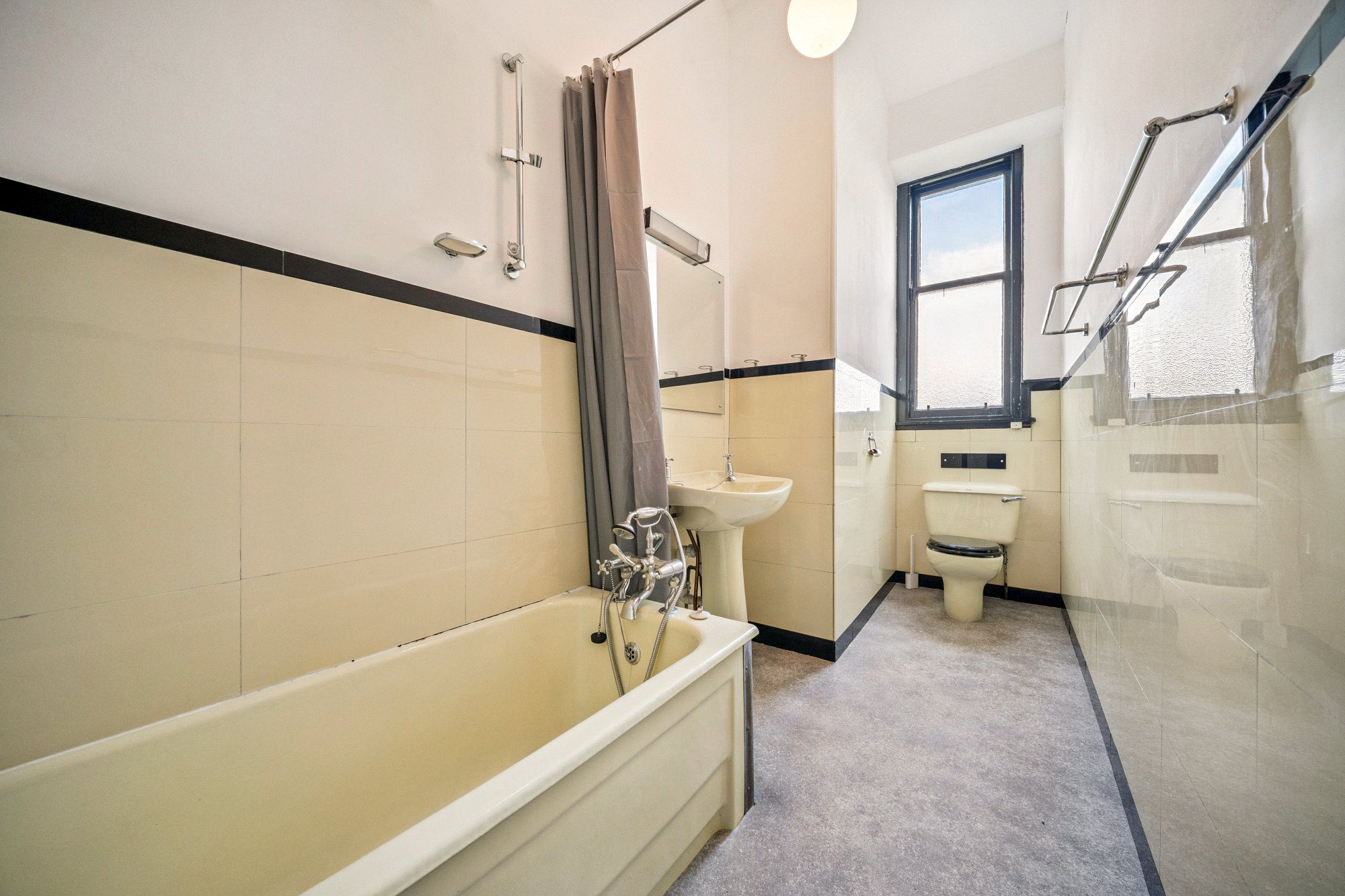 To the front of the property and benefitting from a classic bay window, the lounge makes for an inviting space ideal for future relaxing or entertaining. The flat includes three double bedrooms, with the principal and third bedrooms positioned to the front and second bedroom featuring period fireplace located toward the rear, offering flexibility for family living, home working, or guest accommodation.