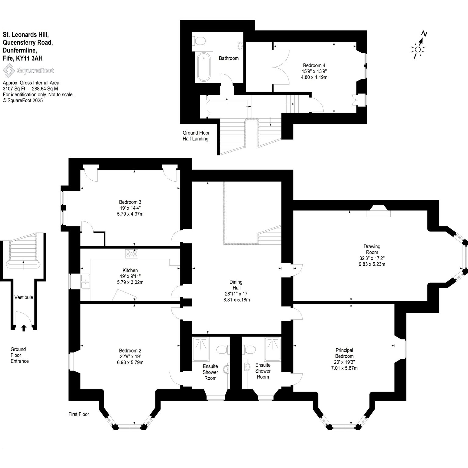 Principal Bedroom with en suite Shower Room, Double Bedroom 2 with en suite Shower Room, Double Bedroom 4/Study, and Bathroom.