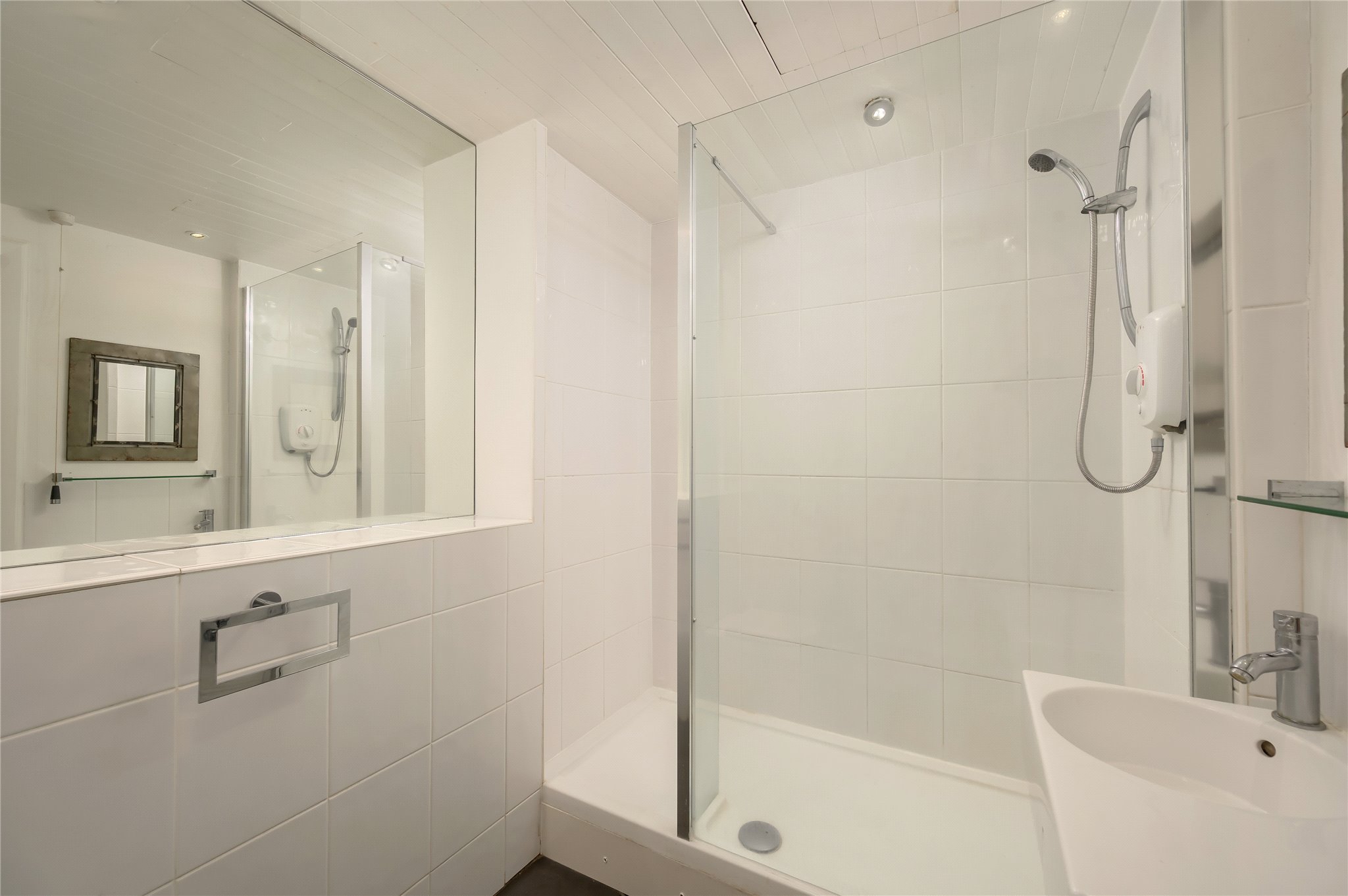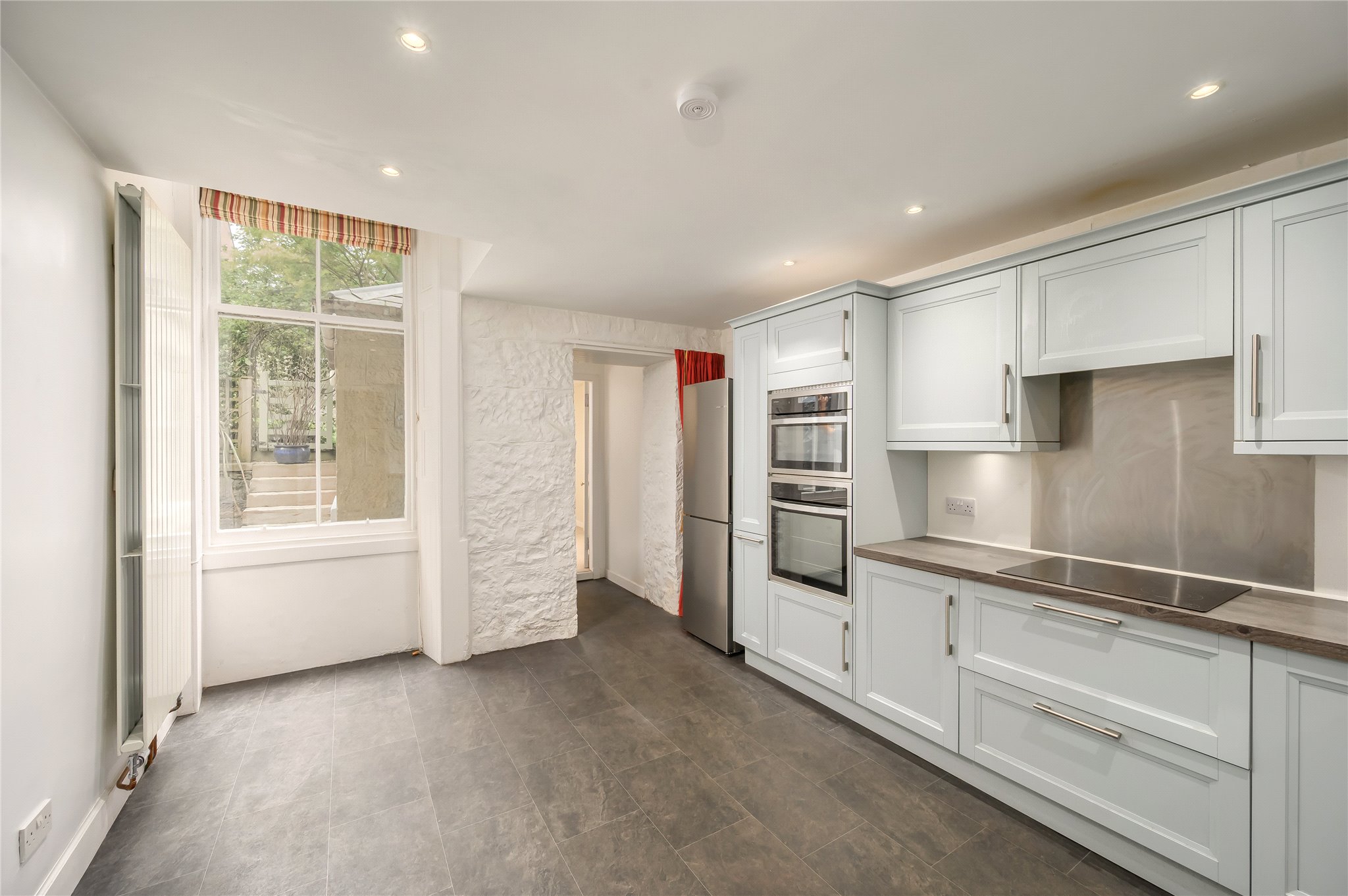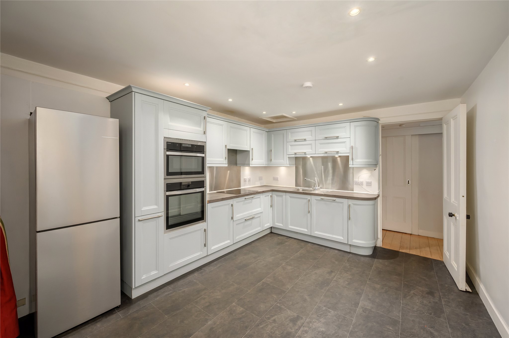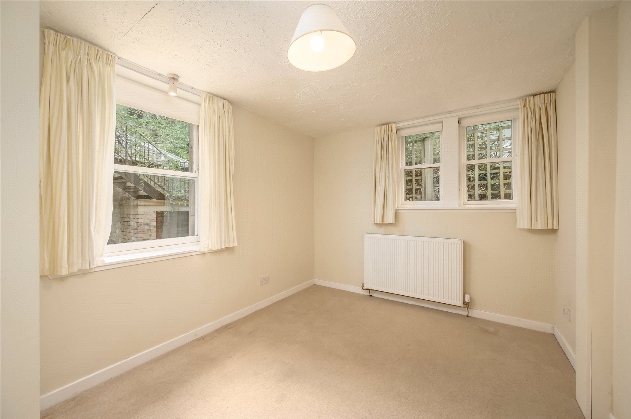 The principal bedroom, stylish shower room, and a useful utility cupboard are all accessed from the hallway, while the well-appointed John Lewis kitchen—fitted by the current owner—leads through to a second spacious double bedroom and opens out to the peaceful rear courtyard garden.