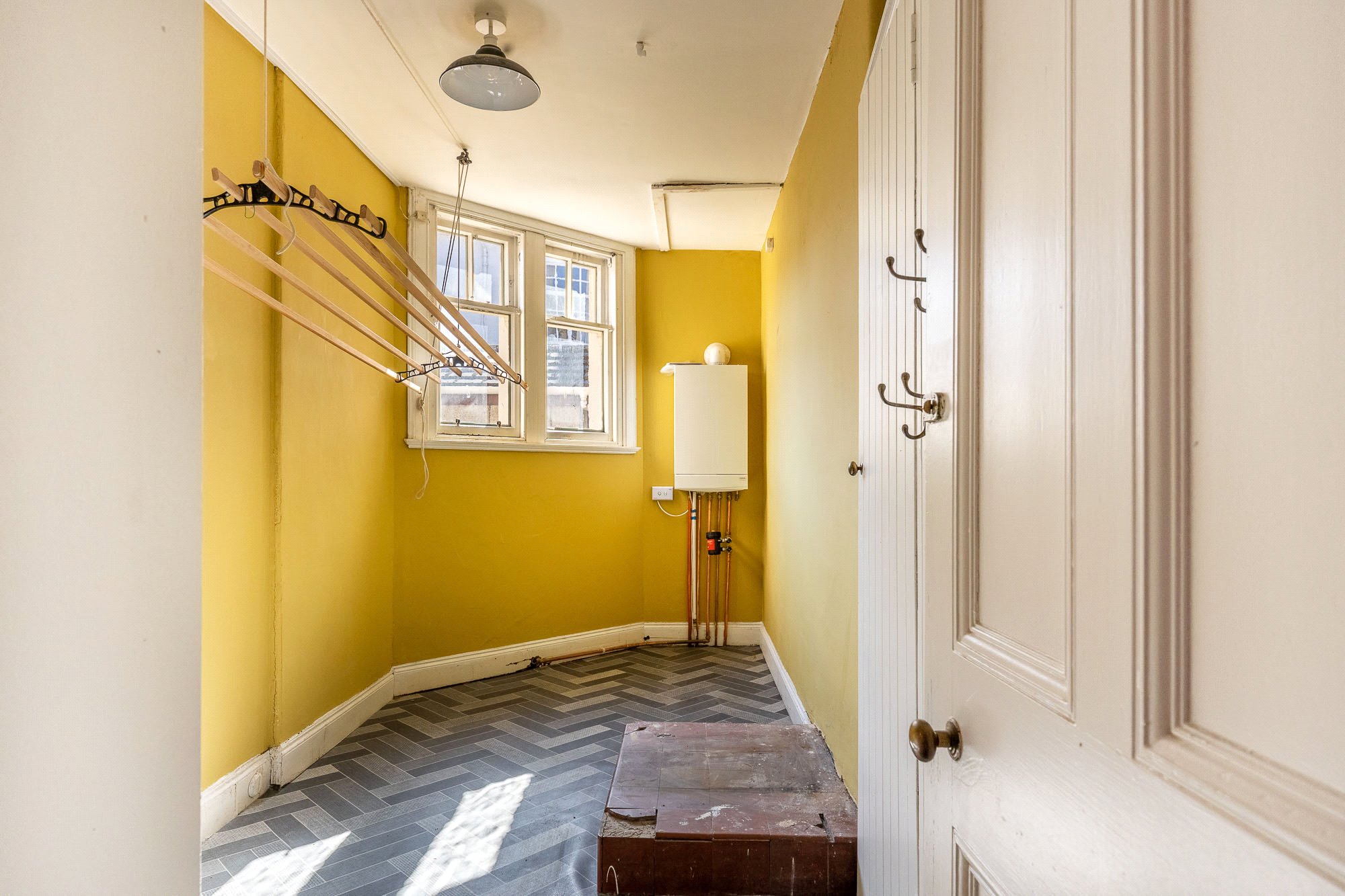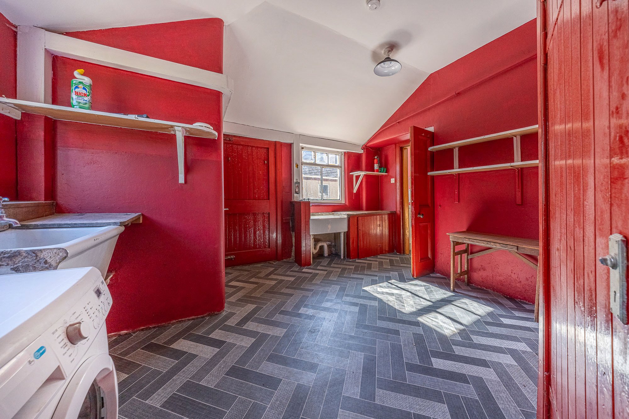 • Spacious utility room with two windows to the side.