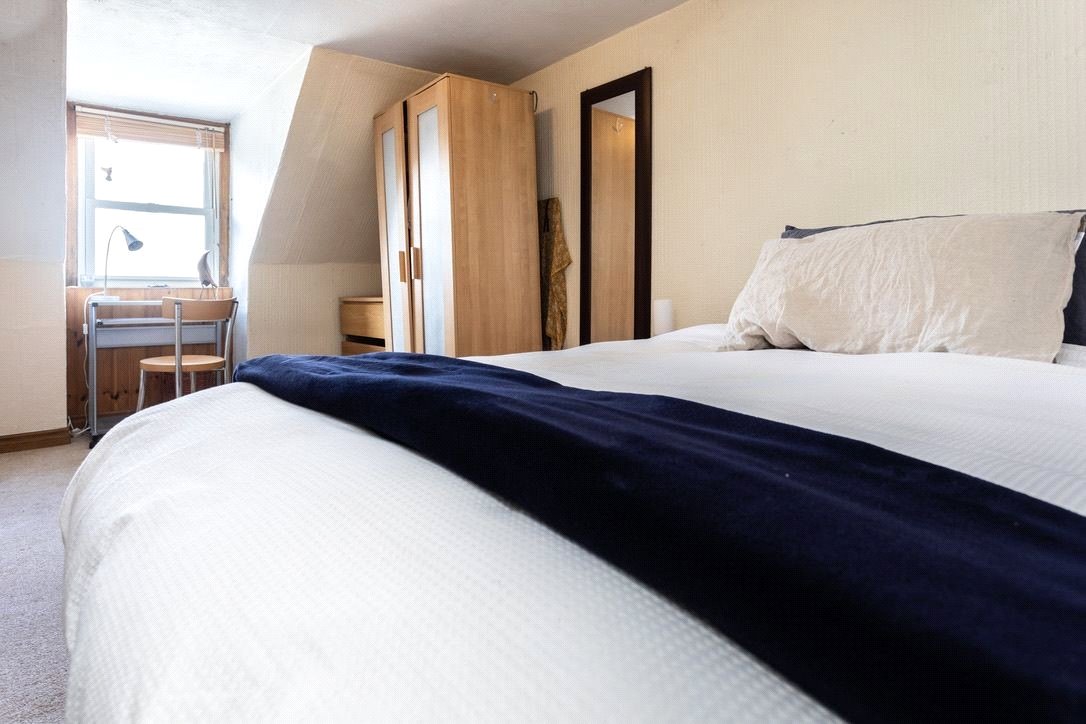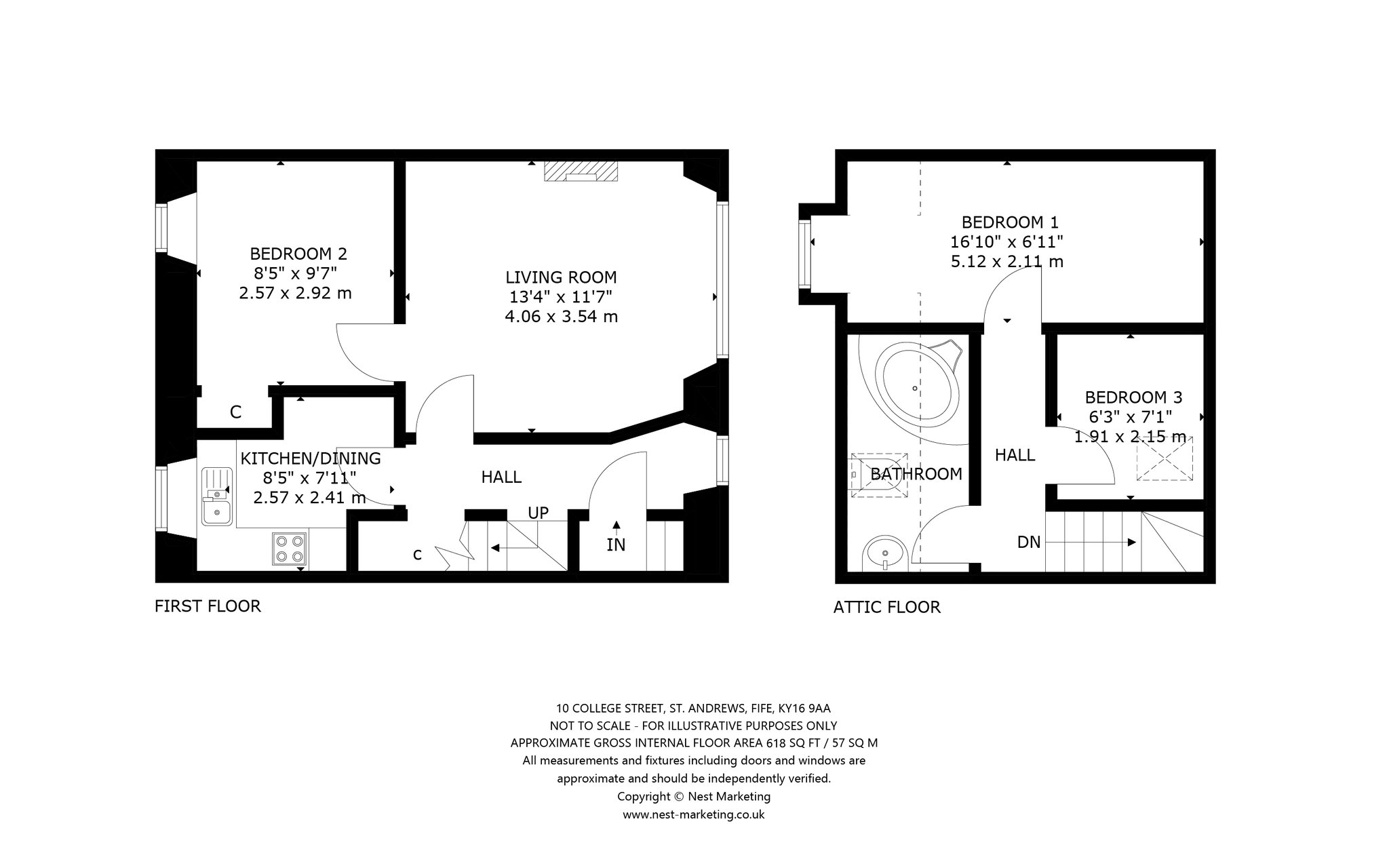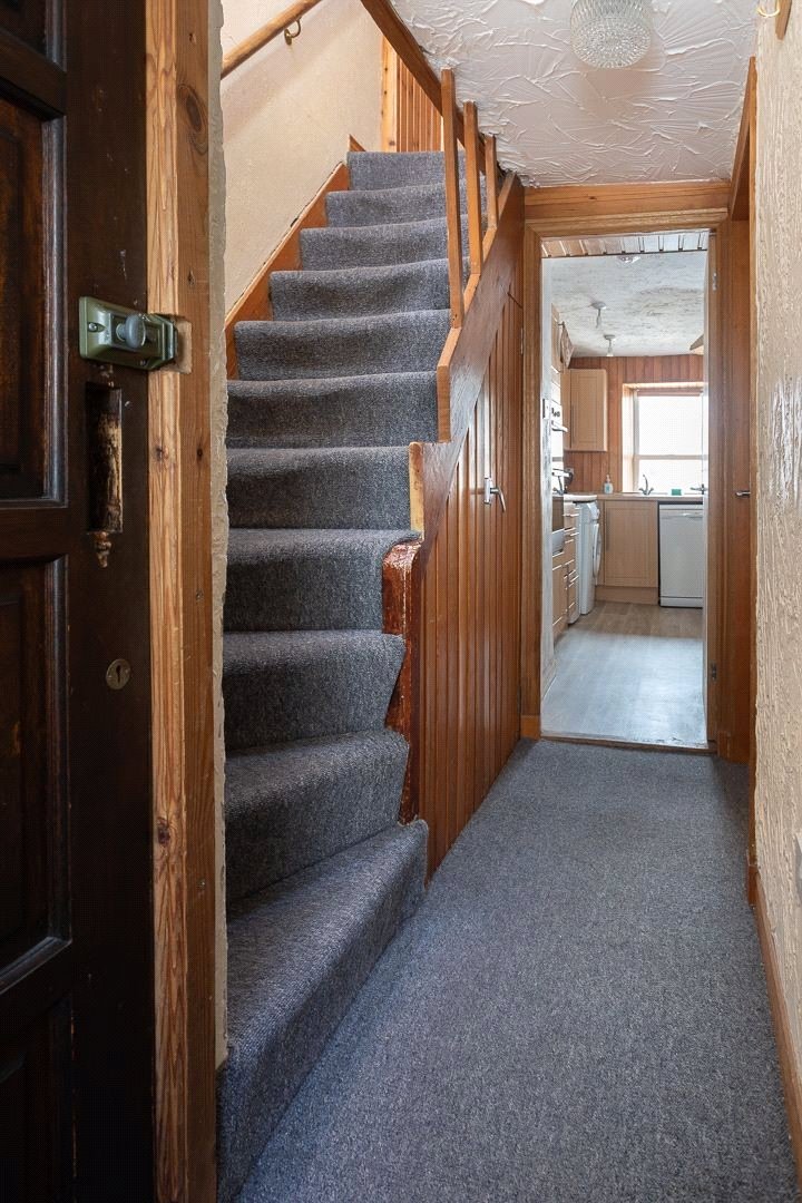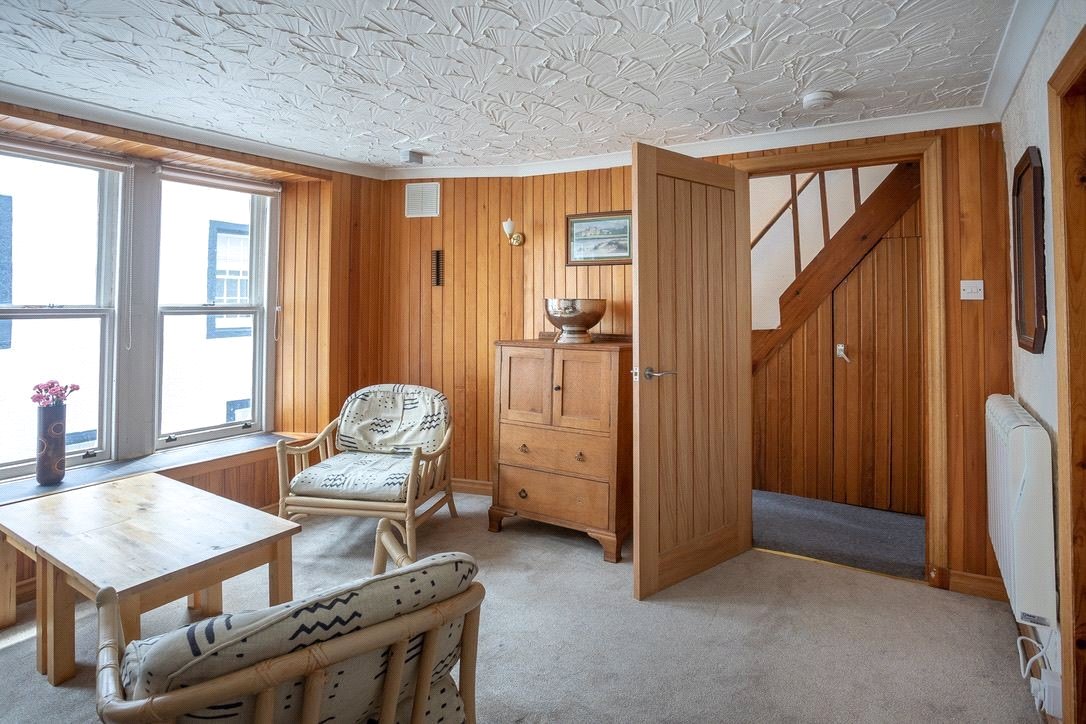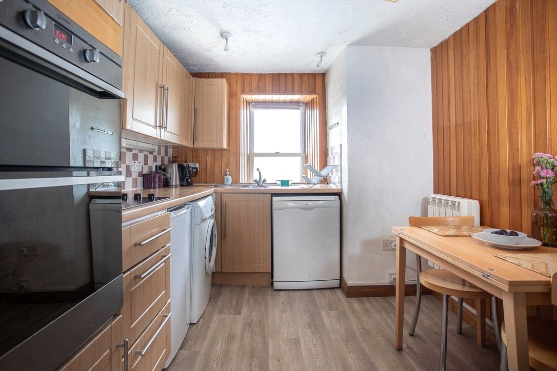 With the University of St Andrews mere steps away, this three-bedroom mid-terrace home lying peacefully on the picturesque and pedestrianised lane, College Street presents an exceptional opportunity for discerning buyers. The property has huge potential. Stone steps lead from the street to the front door where the first-floor hallway ushers you into a light-filled and generously proportioned living room. Enjoying a delightful east-facing aspect over College Street and with carpeting and wood panelling it exudes warmth and comfort. Across the hall is a thoughtfully designed dining kitchen boasting pine wall and floor units alongside complementary worktops and a neutral splashback. Integrated appliances include a hob, eye-level grill, and oven. Completing the spacious first-floor layout is a bright double bedroom. On the attic floor, a light and airy principal double bedroom spans the width of the home and is decorated with carpeting and a serene colour palette. A third bedroom/boxroom offers flexibility as a guest room or home office depending on individual needs and there is a bathroom featuring a corner bath with a wall-mounted shower, WC, and washbasin.