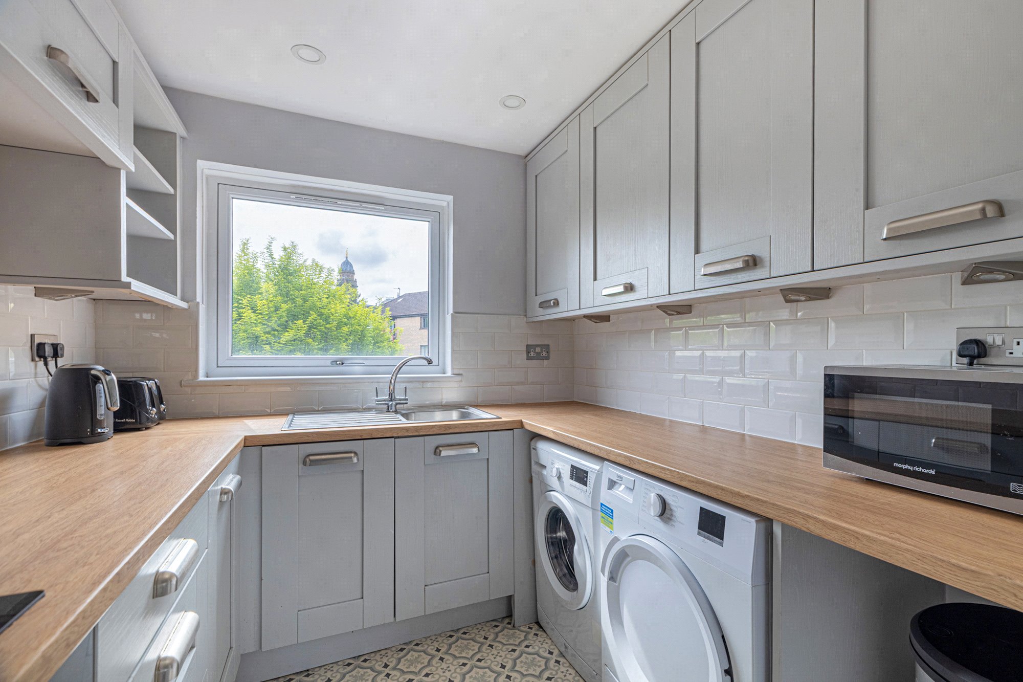 Entered via security door to communal hallway, there is lift and stair access to each floor. The property itself is renovated and smartly presented with fresh decoration and replaced flooring. Notable features include feature panelled walls, a spacious and open plan living/dining room with slim balcony offering aspects over the development grounds and north west towards the River Clyde, off set there is a refitted modern shaker style kitchen with a range of base and wall mounted units with integrated appliances and newly fitted flooring. There are two double bedrooms, both with fitted wardrobes, the main bedroom has a refitted en suite shower room, there is a refitted main bathroom, and bedroom two has a small room off set from it offering space to create a study or walk in wardrobe. There is good internal storage, and a generous external drying cupboard accessed from the communal hallway. The property has fresh décor, double glazing and electric heating system.