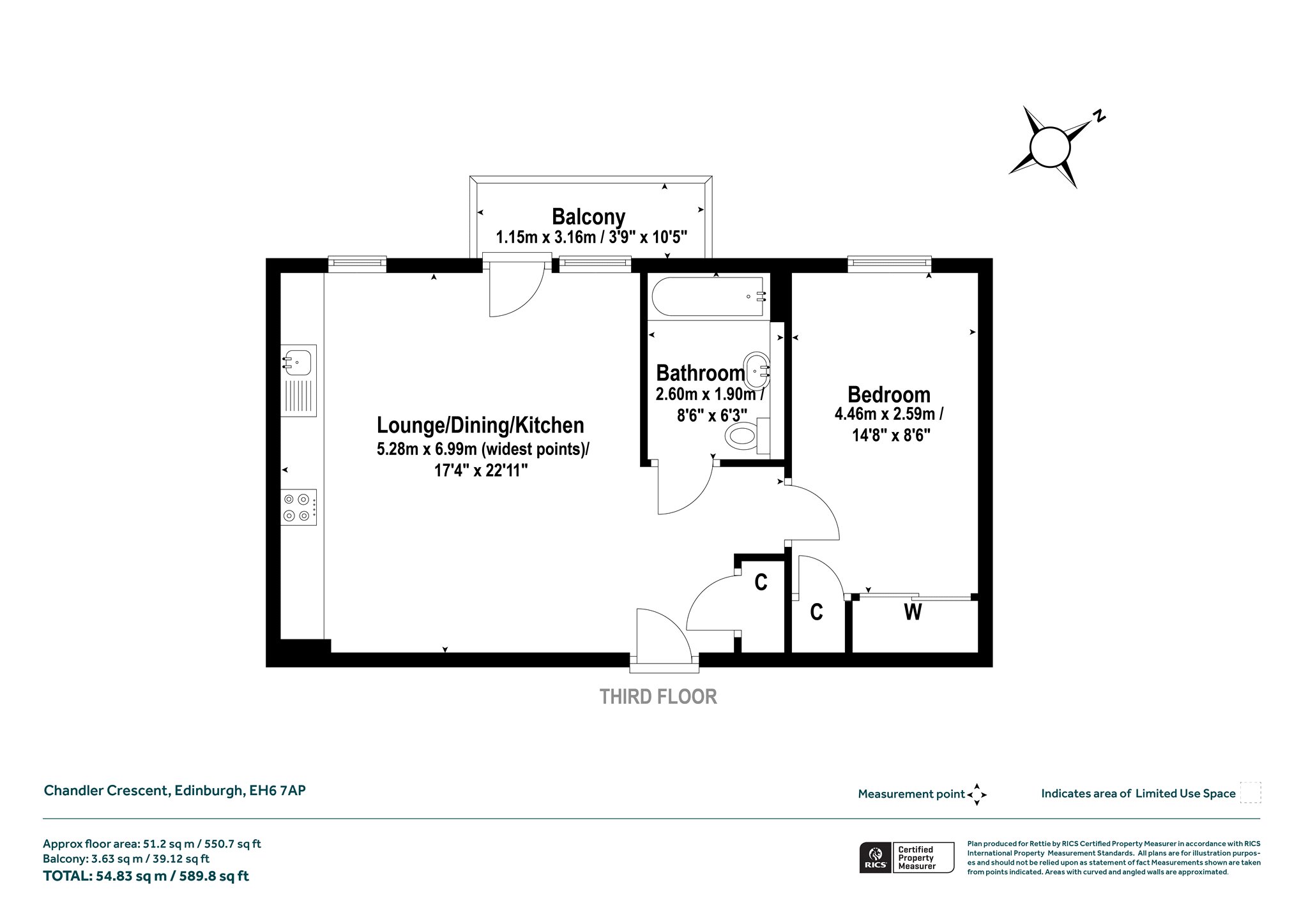 Kitchen/Living/Dining Room, Private balcony, Principal Bedroom with Fitted Wardrobe and storage cupboard, Bathroom, Hallway Storage Cupboard.