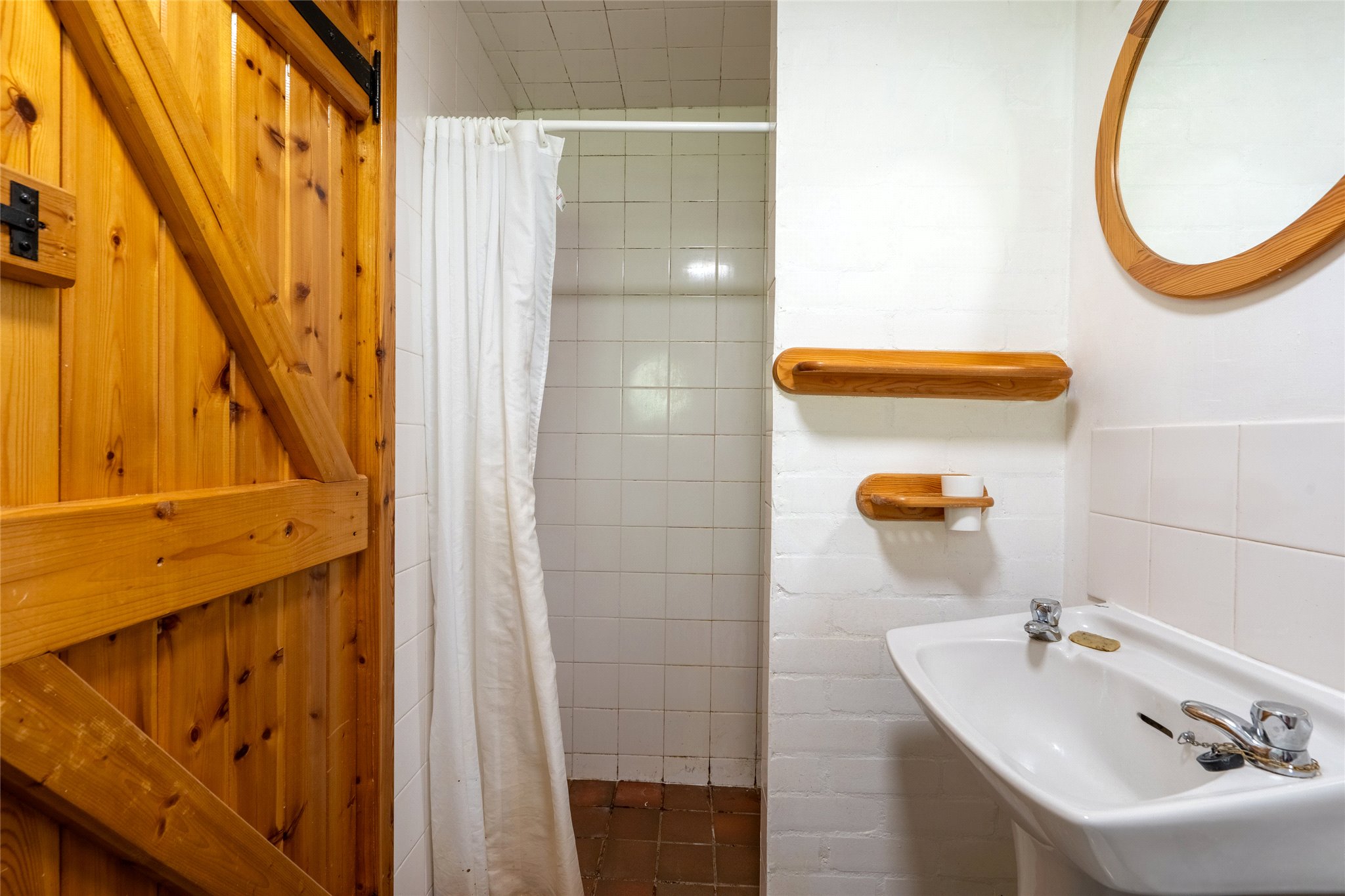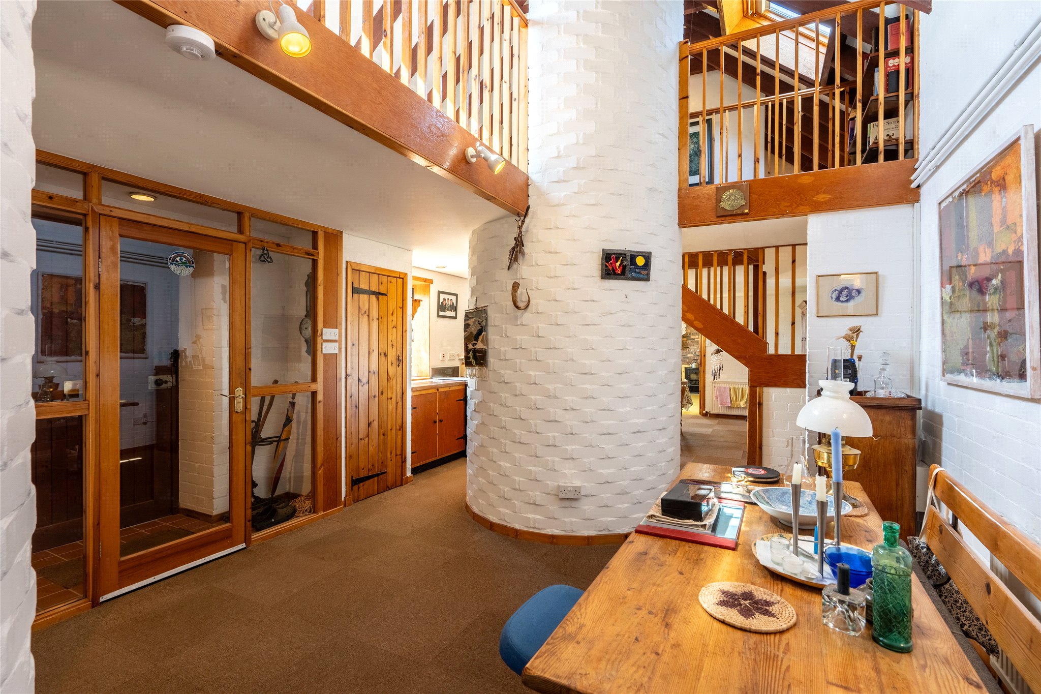 Entrance vestibule, kitchen with separate dining area and minstrel’s gallery, sitting room, principal bedroom with en-suite bathroom, pantry, cloakroom with bathroom.