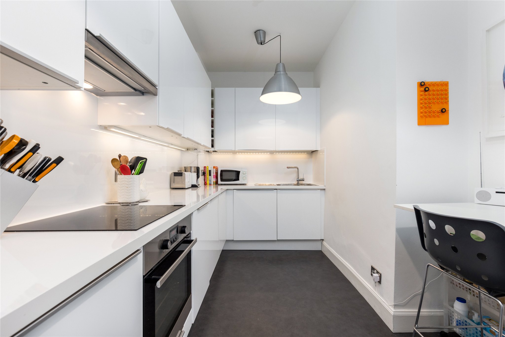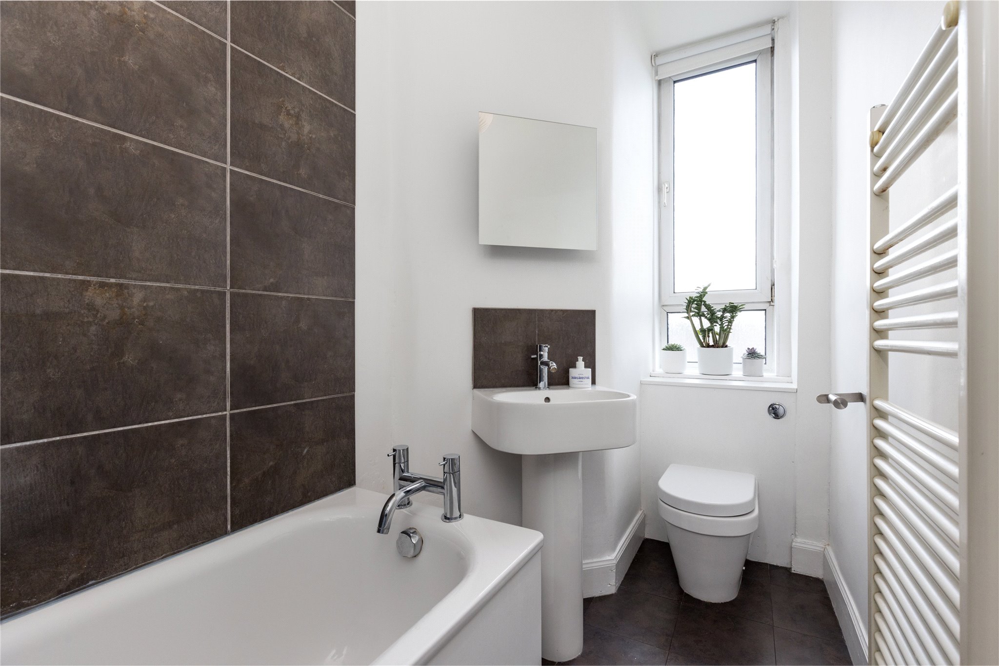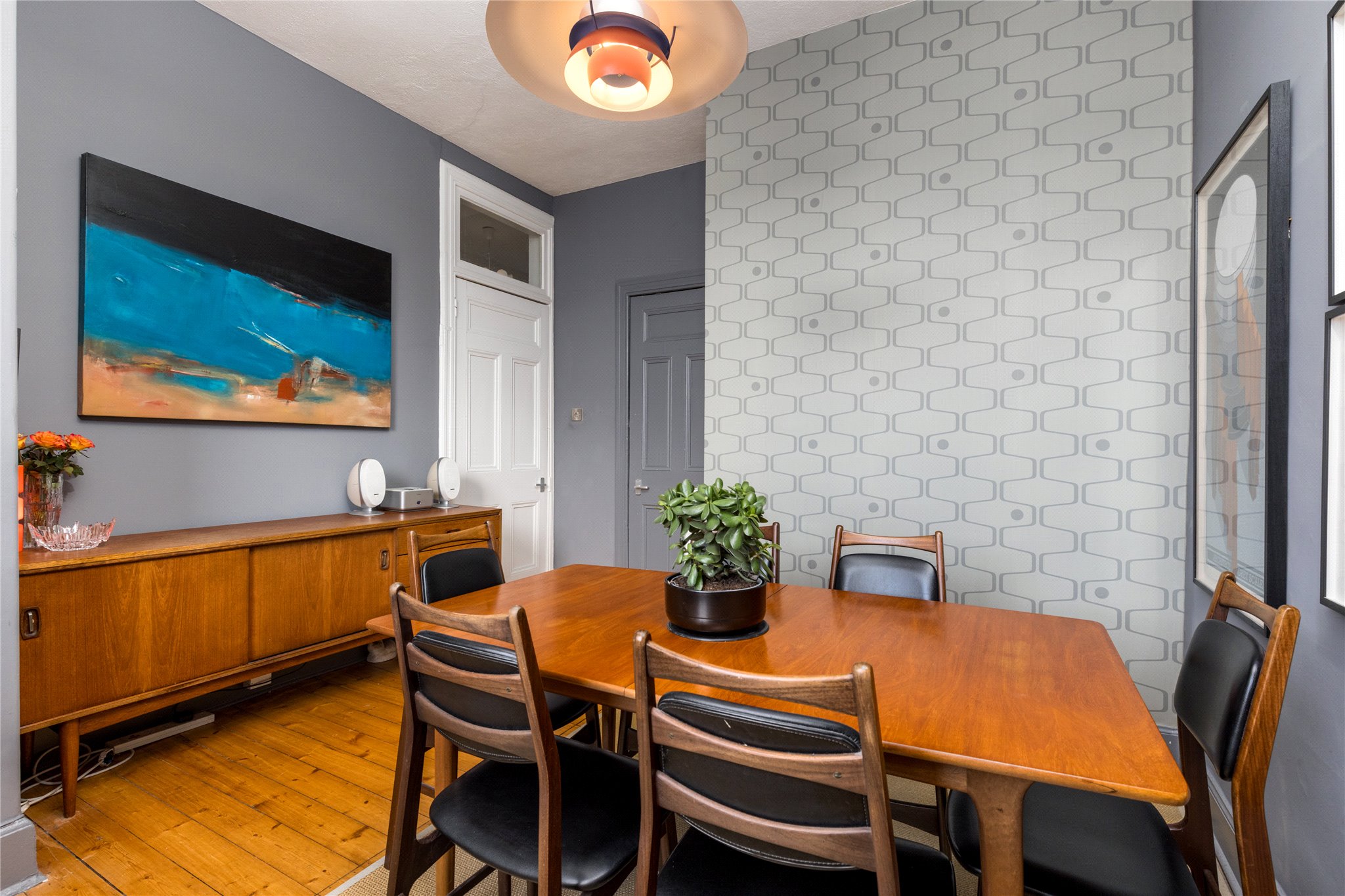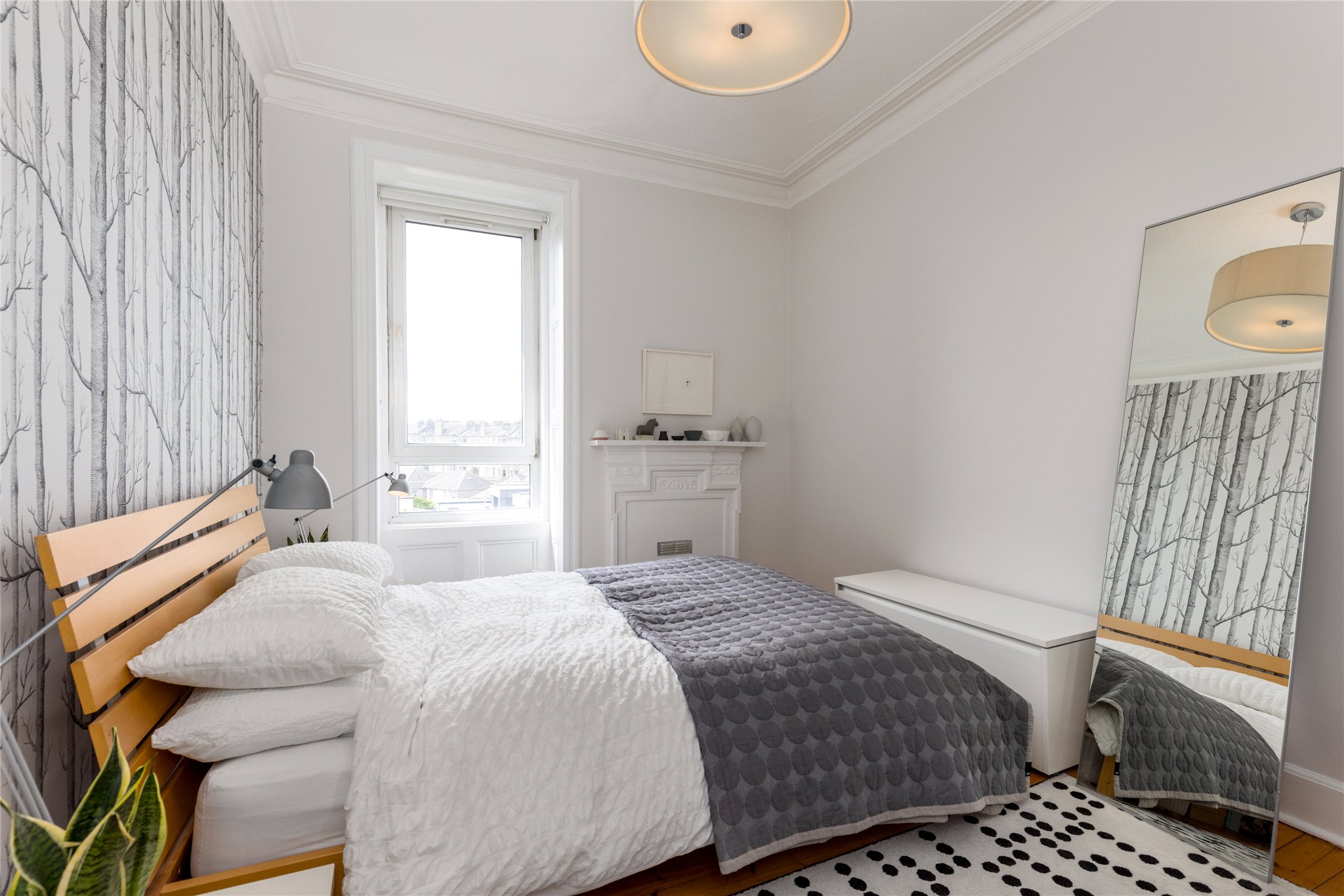 Offering well-proportioned accommodation, the property is beautifully presented and comprises a bright living/dining room with open aspect views across to Fife, contemporary kitchen with wall and floor mounted white gloss units, integrated appliances and pull-out breakfasting table, two double bedrooms, both with fabulous city views including Edinburgh Castle and Calton Hill, and a modern fully fitted bathroom completes the accommodation. There is a wonderful landscaped shared residents’ south facing rear garden for relaxing and outdoor entertainment. The property is presented in turn-key condition offering period features blending seamlessly with contemporary interiors and would be an excellent home for the first-time buyer, comfortable pied-a-terre, or buy to let investor.