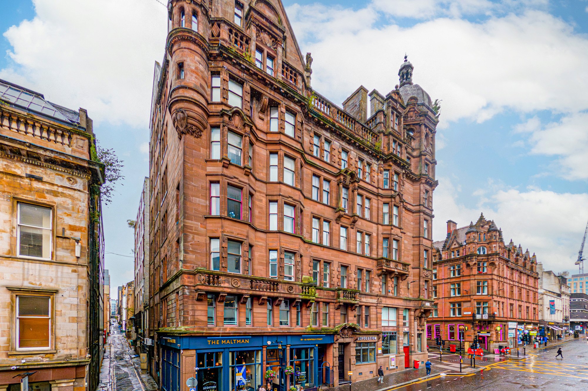 This prominent red sandstone building, set on the corner of Renfield Street and West Regent Street, was originally constructed in the early 1900s for G. & J. MacLachlan Brewers and later converted into spacious residential apartments almost a century later.