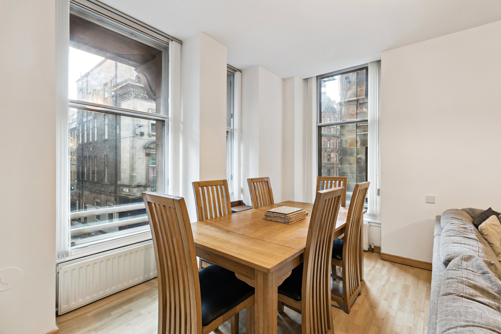 The apartment is situated in the heart of the City Centre where there is an excellent selection of shops nearby on Buchannan Street and Argyle Street together with a wonderful choice of restaurants and bars. Transport links are on the doorstep via bus and by rail from both Glasgow Central and Glasgow Queen Street Station and Glasgow’s International Financial Services District within a few minutes’ walk. The property is also well placed for road links including the M8 motorway network.